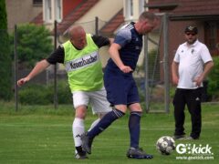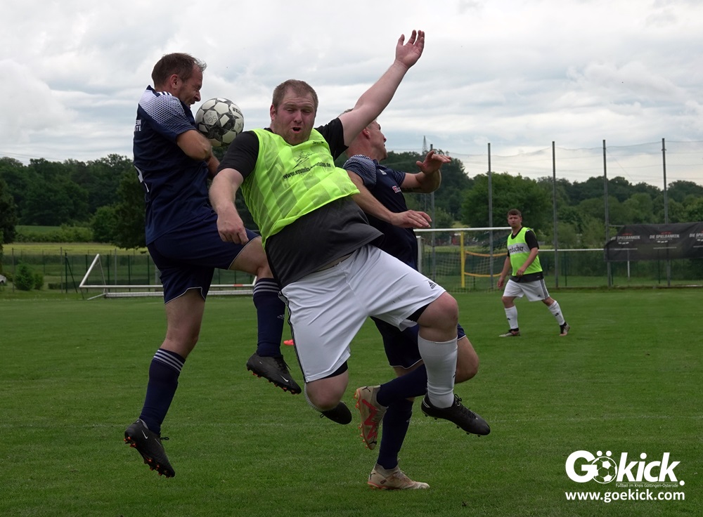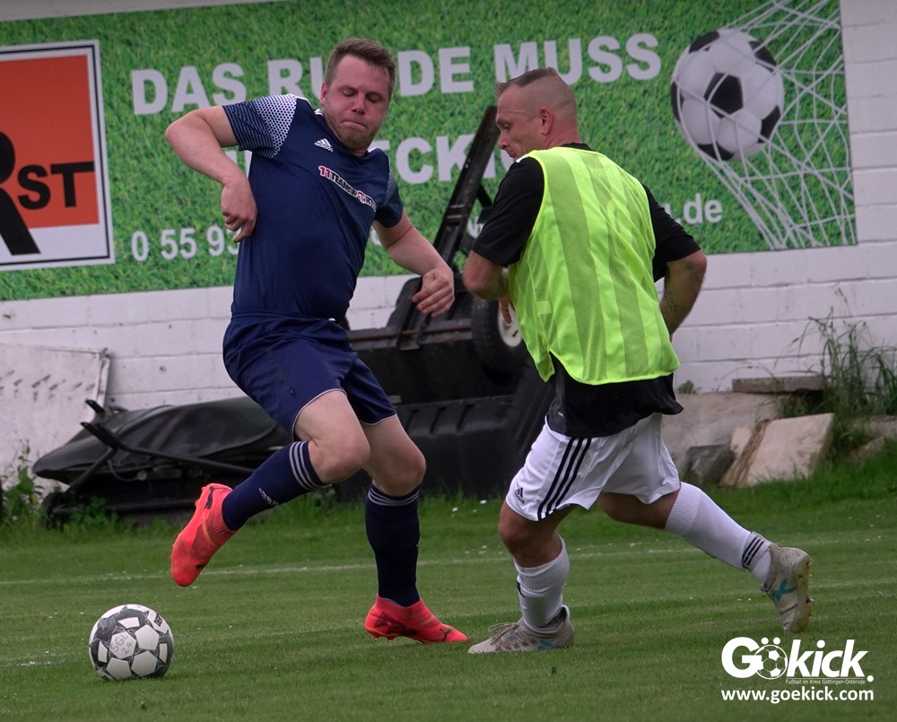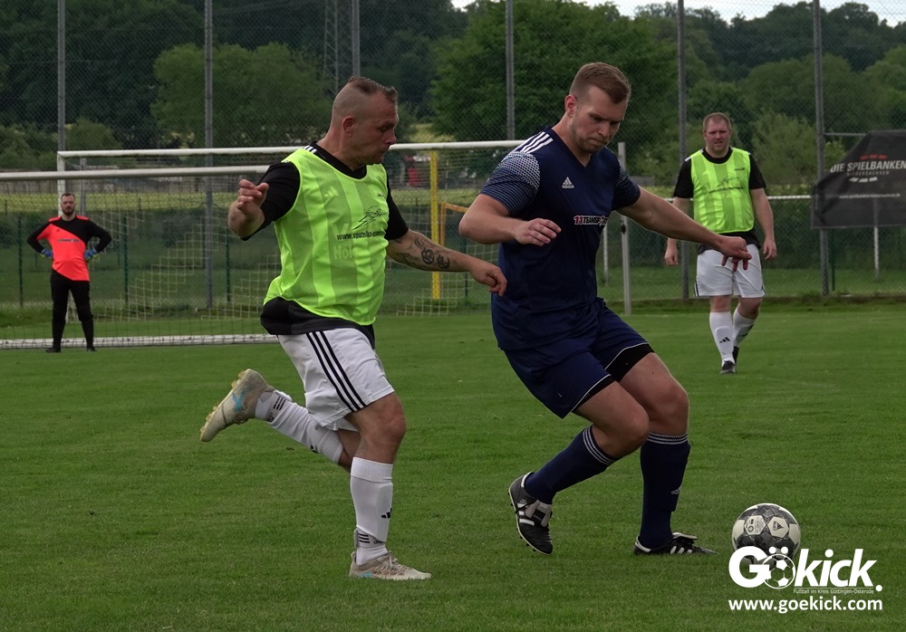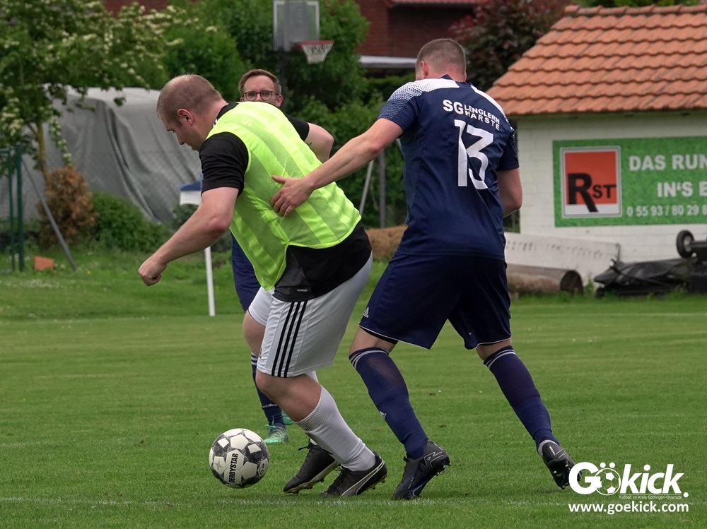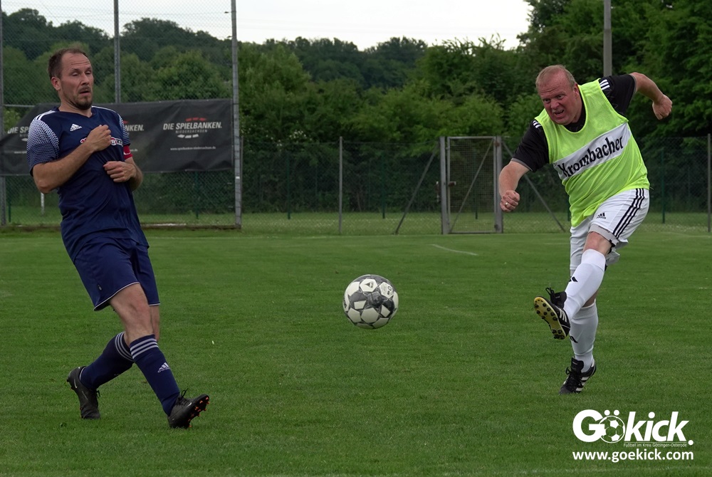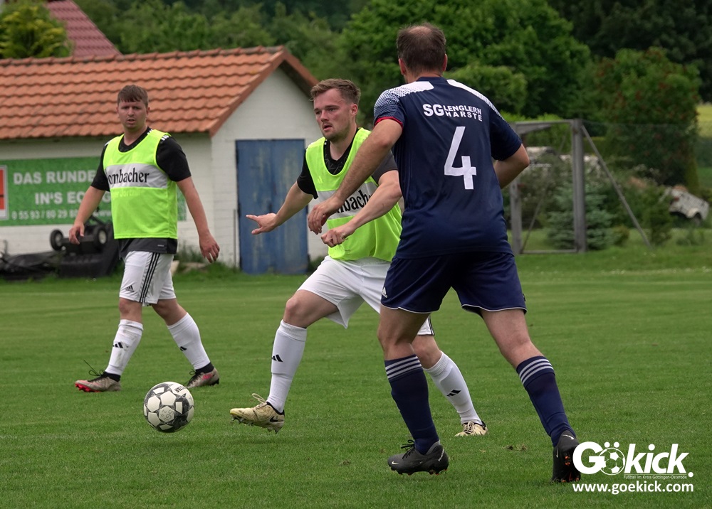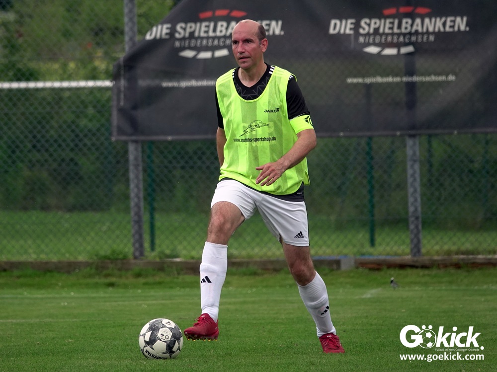 Die Gäste aus Dransfeld und Umland kamen mit vielen bekannten Gesichtern nach Lenglern. Der Grund: Am 14. Juni spielt die Altherren-Mannschaft der SG Hoher Hagen in Dransfeld gegen die Traditionsmannschaft des VfL Wolfsburg. Um nicht ganz unsportlich zu wirken, nutzten viele in die Jahre gekommene Spieler das Kleinfeldspiel, um ihre Fitness zu verbessern. Das gelang auch wirklich gut. Die Gäste waren das bessere Team und hatten ein deutliches Chancenplus. Sie gingen nach 15 Minuten durch Sebastian Fritz mit 1:0 in Führung. Zehn Minuten später glichen die Hausherren, die sehr kampfstark agierten, durch Christian Clasing aus. Beim Stand von 1:1 wurden die Seiten gewechselt.