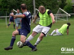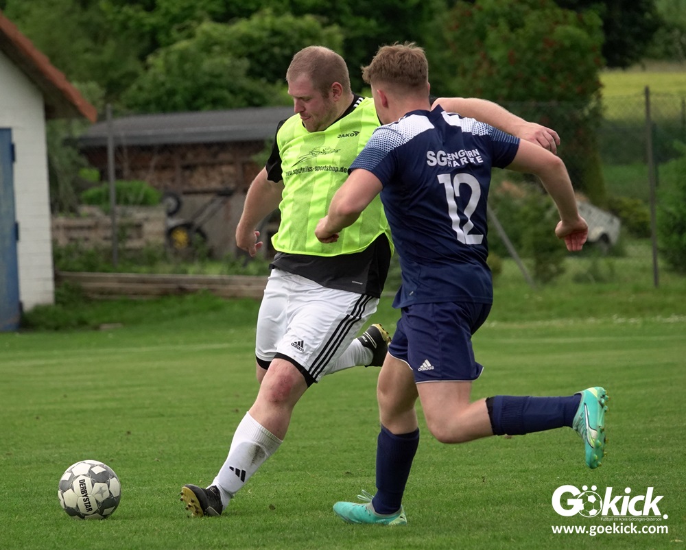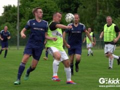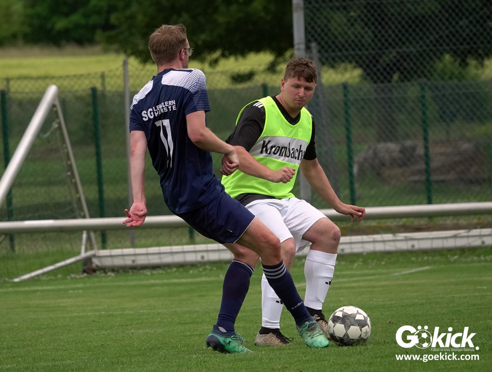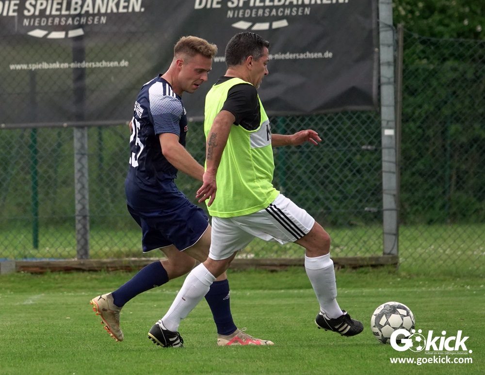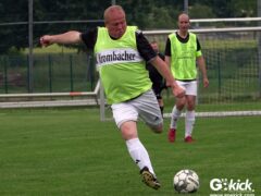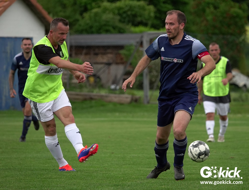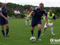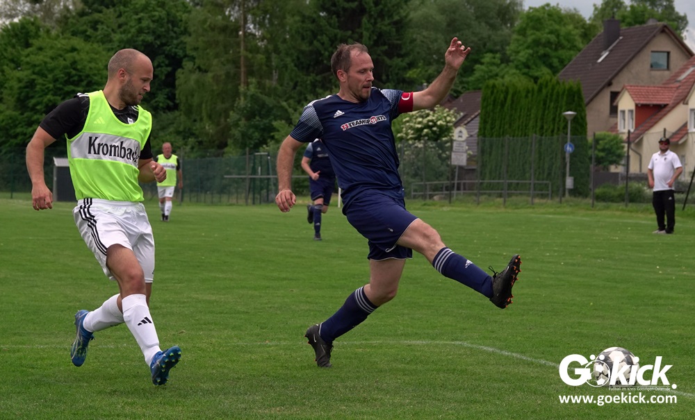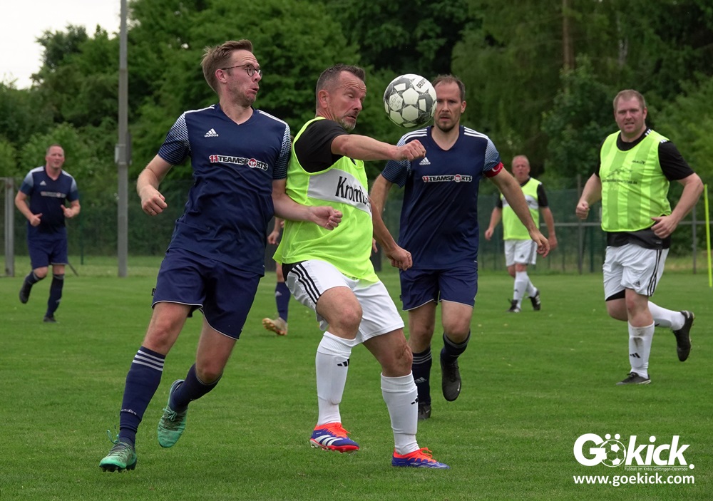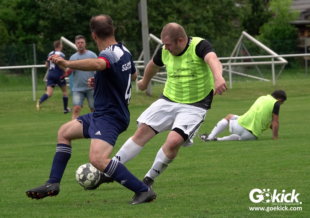Die Gäste aus Dransfeld und Umland kamen mit vielen bekannten Gesichtern nach Lenglern. Der Grund: Am 14. Juni spielt die Altherren-Mannschaft der SG Hoher Hagen in Dransfeld gegen die Traditionsmannschaft des VfL Wolfsburg. Um nicht ganz unsportlich zu wirken, nutzten viele in die Jahre gekommene Spieler das Kleinfeldspiel, um ihre Fitness zu verbessern. Das gelang auch wirklich gut. Die Gäste waren das bessere Team und hatten ein deutliches Chancenplus. Sie gingen nach 15 Minuten durch Sebastian Fritz mit 1:0 in Führung. Zehn Minuten später glichen die Hausherren, die sehr kampfstark agierten, durch Christian Clasing aus. Beim Stand von 1:1 wurden die Seiten gewechselt.