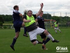 Nach 50 Minuten brachte Daniel Hartje, der als gelernter Torwart auch auf dem Feld zu beeindrucken verstand, die Gäste erneut in Führung. Doch die Hausherren hatten da noch Christian Clasing. Der Torschütze zum 1:1 sorgte nach 60 Minuten auch für das 2:2. Dabei blieb es bis zum Abpfiff der Partie. Ein glücklicher Punktgewinn für die Hausherren, denn der Gast besaß mehr Chancen, versagte aber zu oft vor dem Tor.