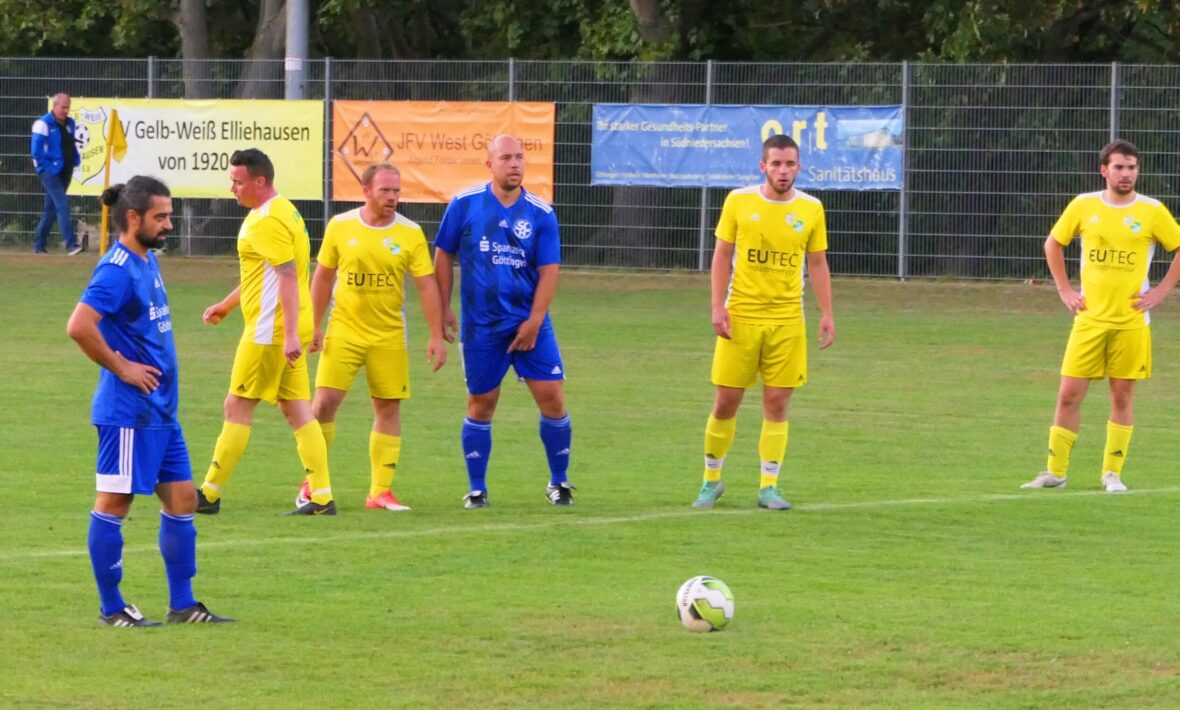 Die SG Elliehausen/Esebeck hat es verpasst, am Donnerstag-Abend mit einem deutlichen Sieg über den SC Hainberg III die Tabellenspitze in der 2. Kreisklasse Mitte vorübergehend zu übernehmen. Am Ende einer hochemotionalen Partie kam das Team von Trainer Stefan Blum nicht über ein 2:2 hinaus. Mit dem Punkt bleibt die Spielgemeinschaft aus dem Nordwesten Göttingens zumindest bis zum Sonntag Zweiter. Der SC Hainberg III von Trainer Jörg Lohse sah nach 13 Minuten und einer 2:0-Führung bereits wie der sichere Sieger aus, hatte aber am Ende noch Glück, das Spiel nicht zu verlieren. Hainberg II klettert auf Platz acht der Liga.