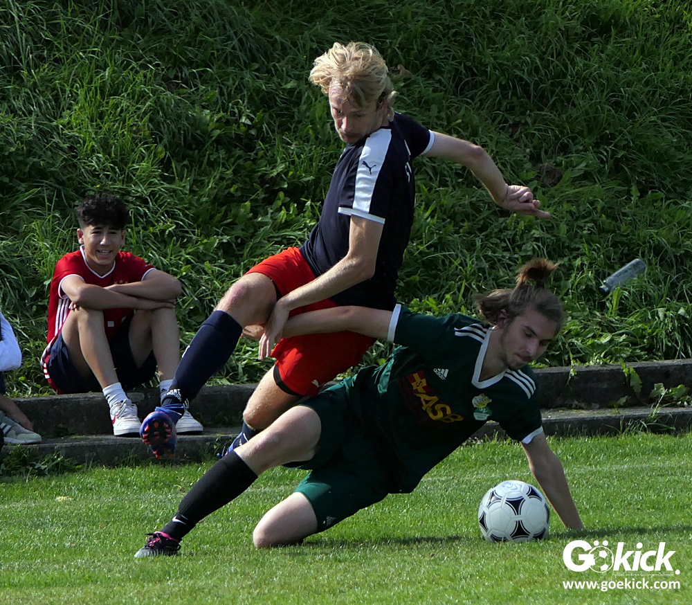 Nach 33 Minuten ging der Gastgeber durch Aris Emre Bayrak mit 1:0 in Führung. Nur drei Minuten später erhöhte Niklas Jan Dada auf 2:0. Kurz vor dem Seitenwechsel schaffte Michael Claus den Anschluss zum 1:2 aus Sicht der Gäste. Damit ging es in die Halbzeitpause.