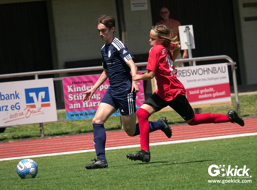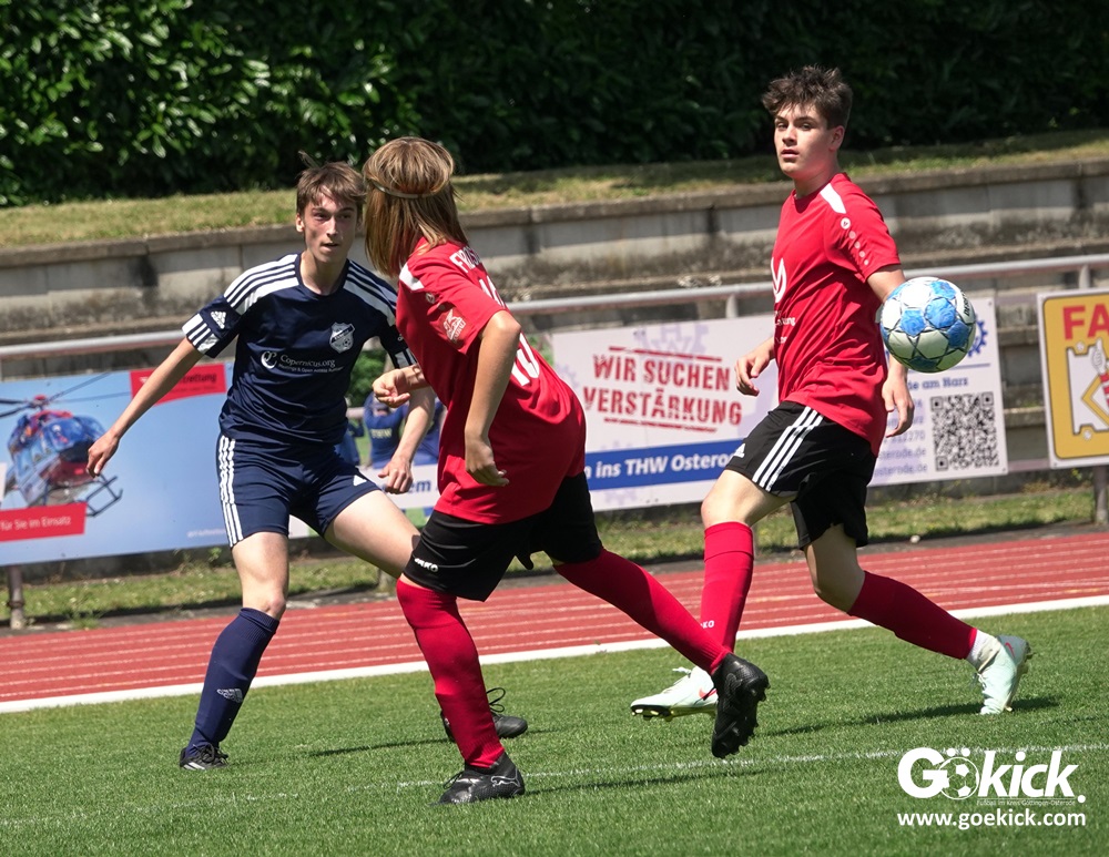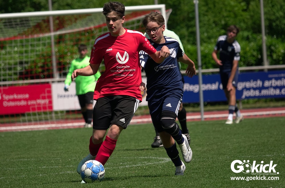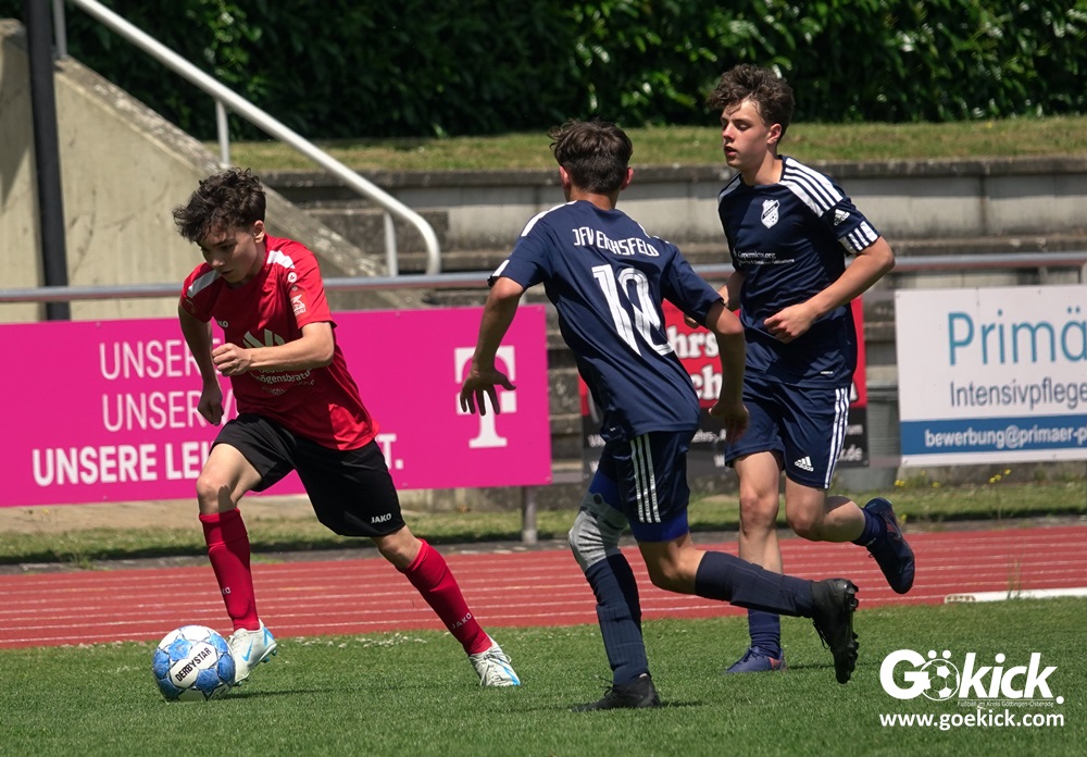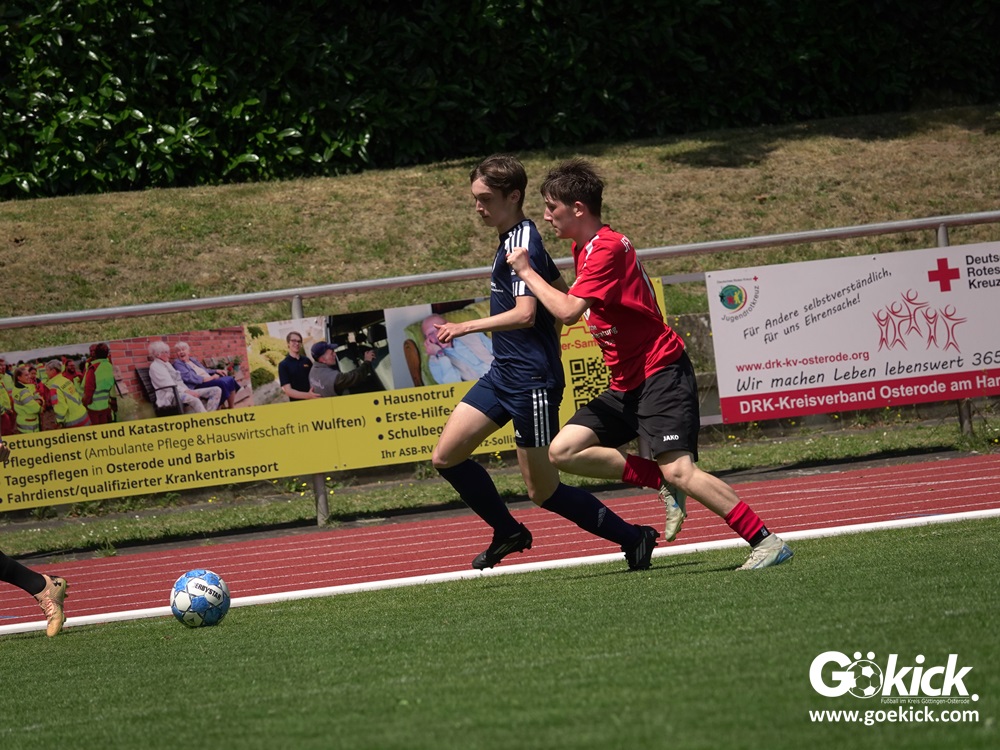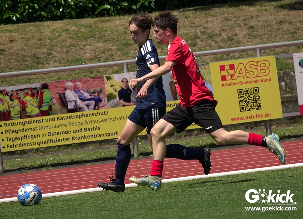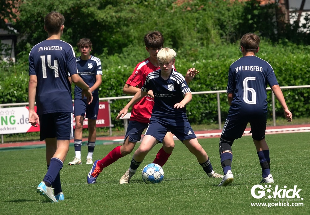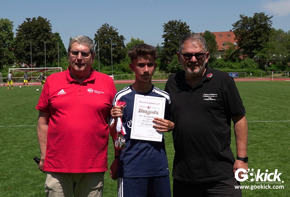 Auch in der C-Jugend schaffte es der Kreismeister nicht, die hervorragende Saison mit dem Double zu krönen. Die zweite Mannschaft des JFV Eichsfeld hatte Mitte Juni beim TSV Groß Schneen am abschließenden Spieltag der Kreisliga-Meisterrunde den Titel errungen. Eine Woche später, im Pokalfinale im Osteroder Jahnstadion unterlag die Mannschaft von Trainer Stephan Remin dann überraschend dem JFV Rosdorf mit 3:4 (3:1). Überraschend vor allem deshalb, weil der Meister in der Qualifikationsrunde dieser Saison zweimal deutliche gegen den neuen Pokalsieger gewann – in Gerblingerode mit 4:0, in Rosdorf gar mit 6:0. Damit schrieb der Pokal wieder einmal seine eigenen Gesetze.