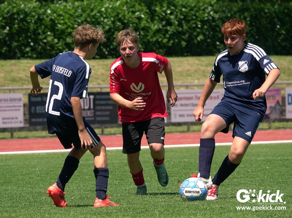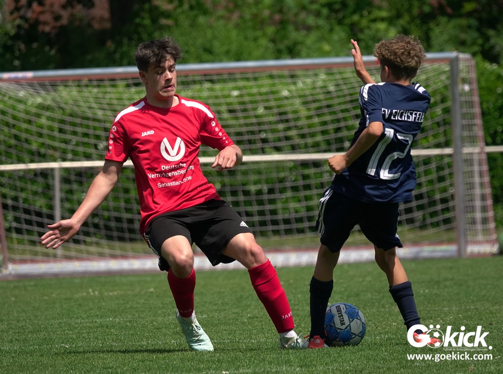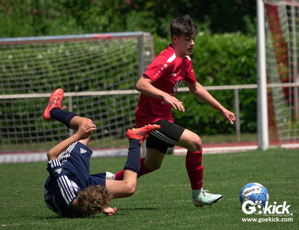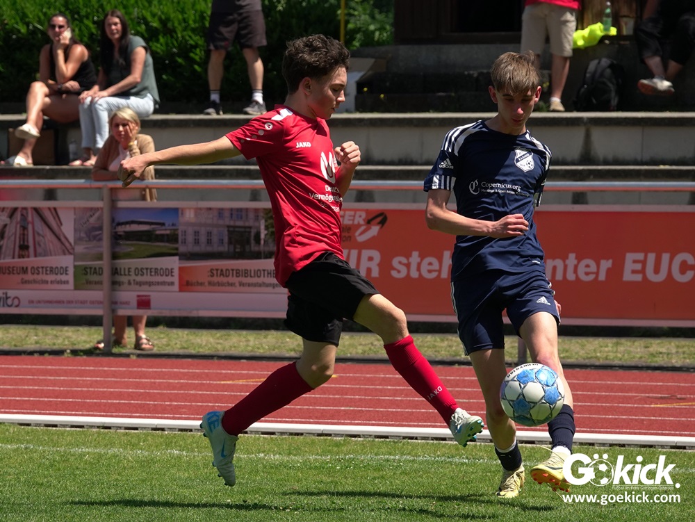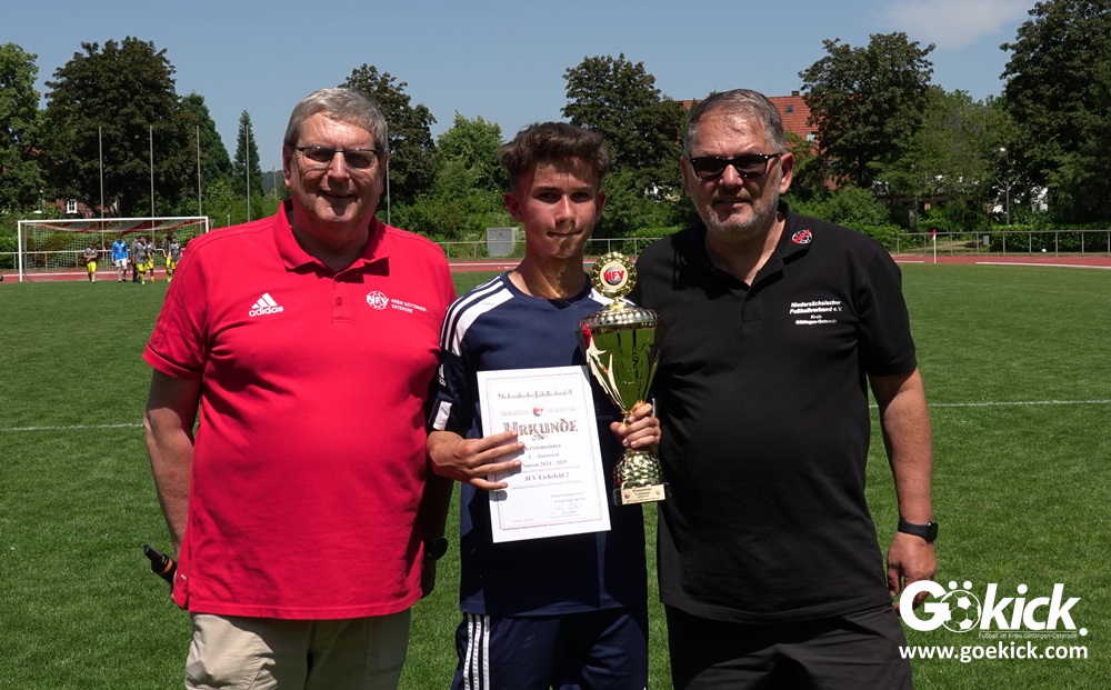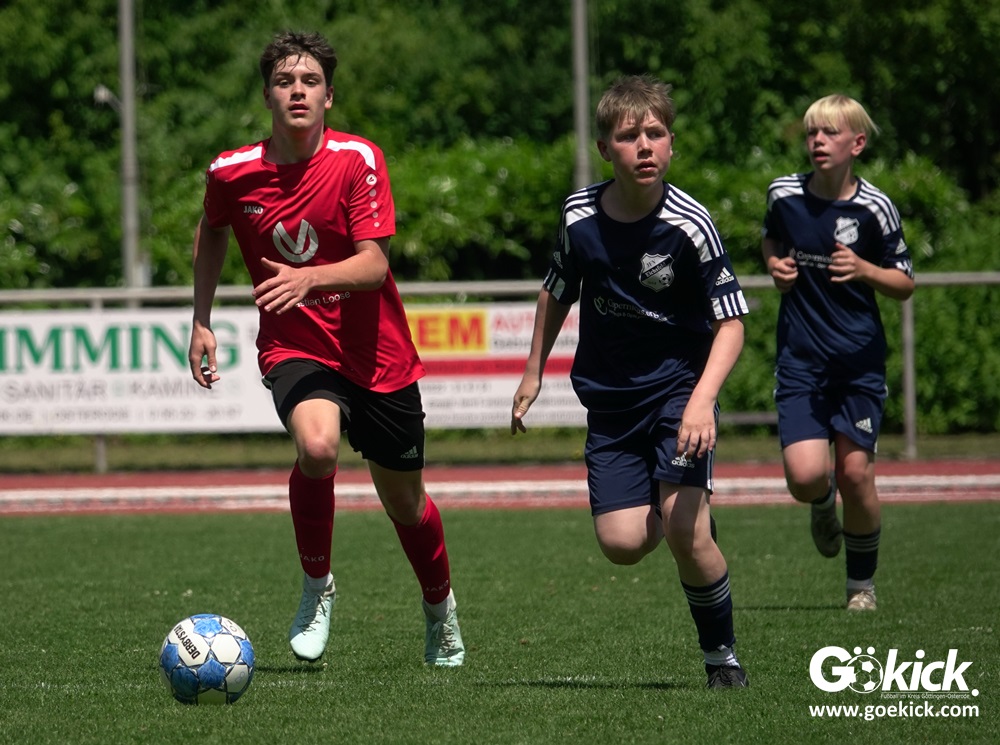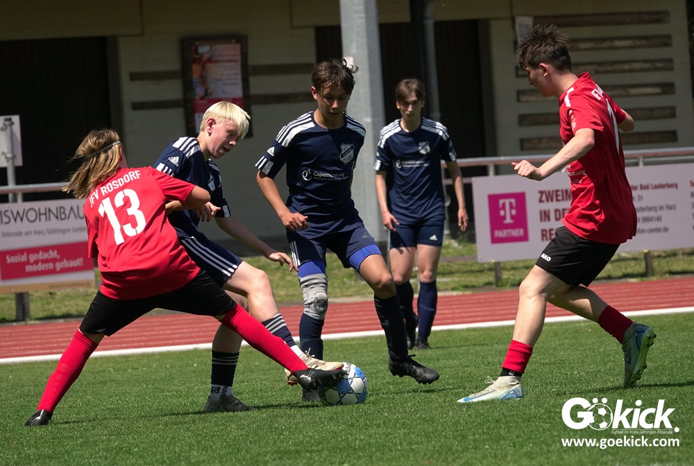 Auch in der C-Jugend schaffte es der Kreismeister nicht, die hervorragende Saison mit dem Double zu krönen. Die zweite Mannschaft des JFV Eichsfeld hatte Mitte Juni beim TSV Groß Schneen am abschließenden Spieltag der Kreisliga-Meisterrunde den Titel errungen. Eine Woche später, im Pokalfinale im Osteroder Jahnstadion unterlag die Mannschaft von Trainer Stephan Remin dann überraschend dem JFV Rosdorf mit 3:4 (3:1). Überraschend vor allem deshalb, weil der Meister in der Qualifikationsrunde dieser Saison zweimal deutliche gegen den neuen Pokalsieger gewann – in Gerblingerode mit 4:0, in Rosdorf gar mit 6:0. Damit schrieb der Pokal wieder einmal seine eigenen Gesetze.