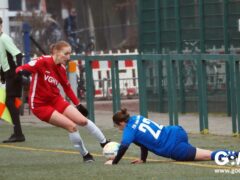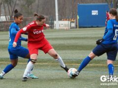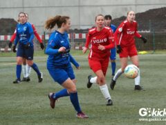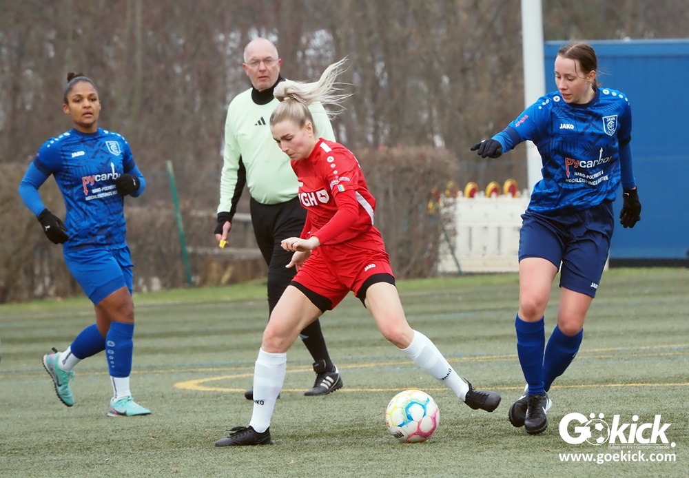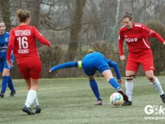 Im ersten Durchgang sahen die Zuschauer am Kunstrasenplatz zwar ein Spiel auf Augenhöhe mit leichten Vorteilen für den Regionalligsten. Dennoch hielt die Abwehr der Rot-Weißen lange Zeit dem Druck stand. Erst kurz vor der Pause konnte der Gast, der mit der ehemaligen SVG-Torfrau Johanna Luise Rathke auflief, durch ein Doppelpack von Jana Schiffhauer (38.) und Johanna Hildebrandt (42.) mit 2:0 in Führung gehen. Mit diesem Spielstand wurden die Seiten gewechselt.
