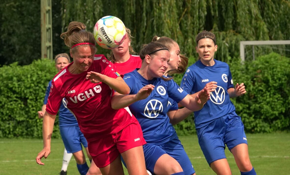 Die Zuschauer am Eisenbahner-Sportplatz sahen eine ausgeglichene Partie mit leichten Vorteilen für die Gastgeberinnen. Doch aus der Überlegenheit entstanden nur wenige echte Tormöglichkeiten – es wird immer noch eine echte Stürmerin bei Rot-Weiß vermisst. Zumindest für einen Kurzeinsatz reichte es für Torjägerin Janett Wochnik bereits. Nach 33 Spielminuten musste das Martin-Team dann sogar einen Gegentreffer schlucken: Mara Kaehler traf für den Landesliga-Hannover-Meister zum 1:0. Damit ging es nicht nur in die Halbzeitpause, das Ergebnis sollte auch bis zum Abpfiff durch Schiedsrichterin Alina Hausold Bestand halten. Im zweiten Heimspiel die zweiten Niederlage! Der ESV Rot-Weiß Göttingen entwickelt langsam einen Heimkomplex.