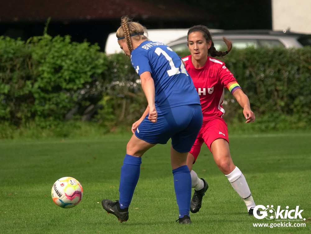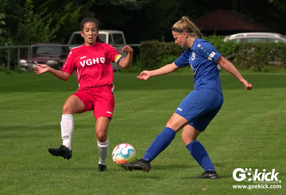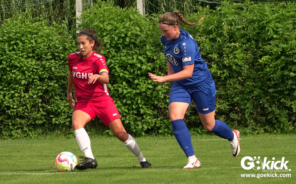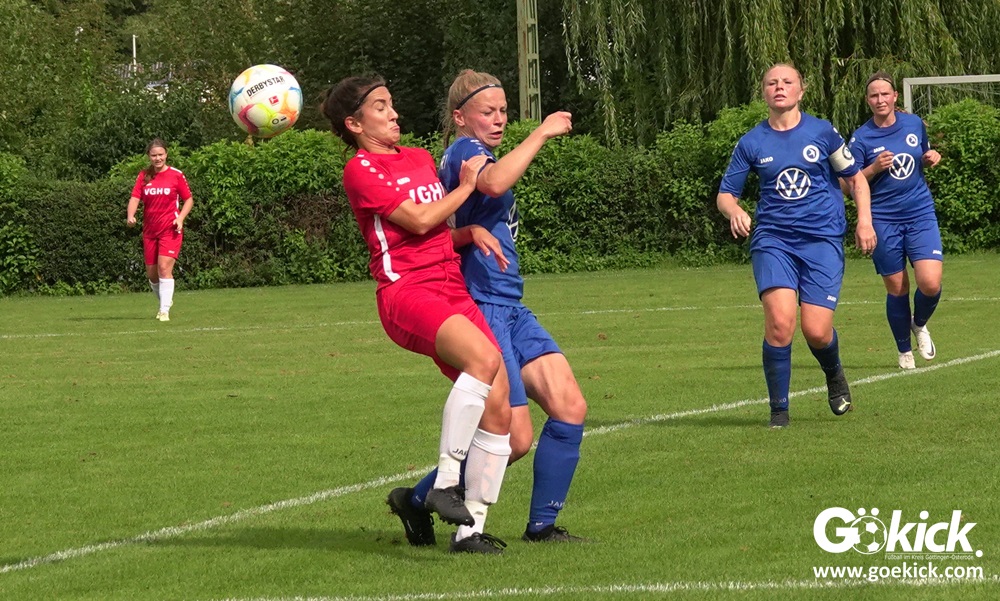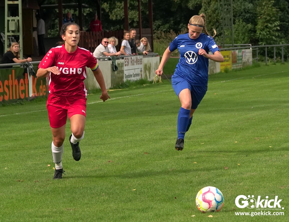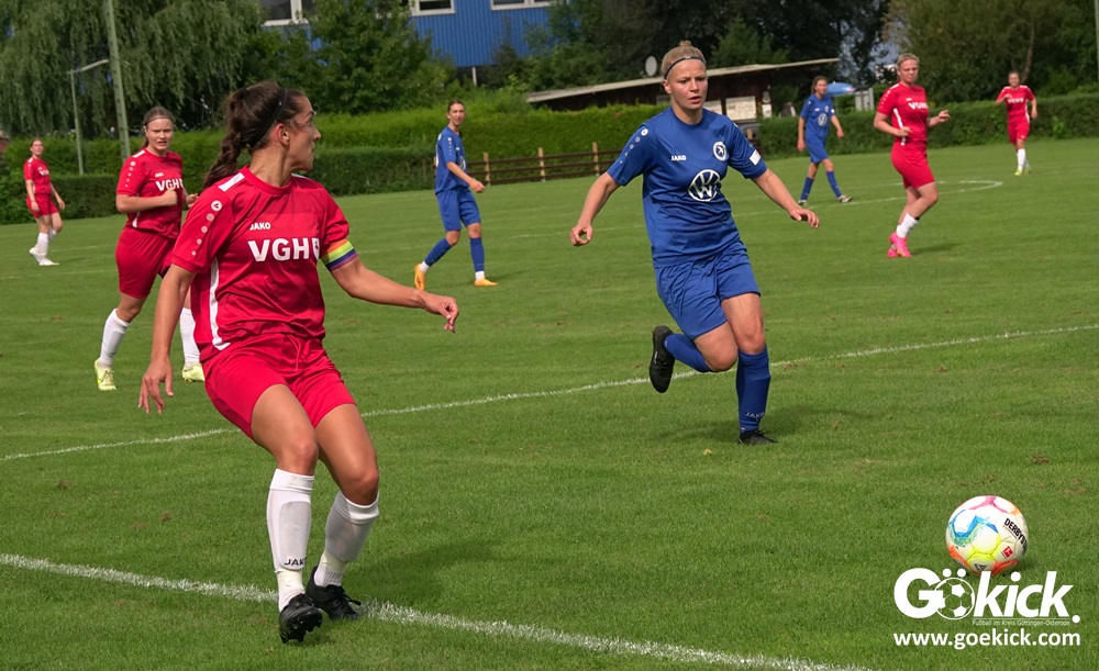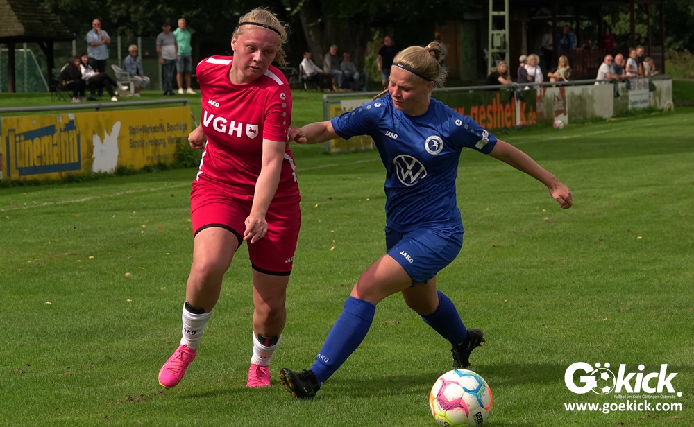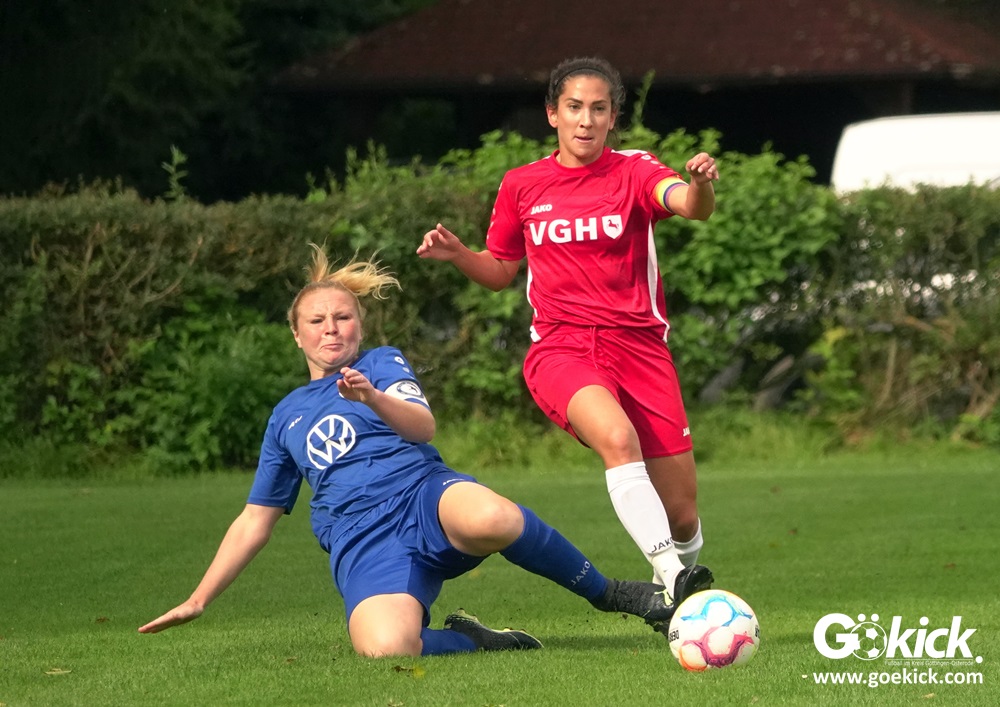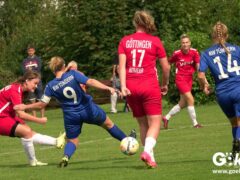 Die Zuschauer am Eisenbahner-Sportplatz sahen eine ausgeglichene Partie mit leichten Vorteilen für die Gastgeberinnen. Doch aus der Überlegenheit entstanden nur wenige echte Tormöglichkeiten – es wird immer noch eine echte Stürmerin bei Rot-Weiß vermisst. Zumindest für einen Kurzeinsatz reichte es für Torjägerin Janett Wochnik bereits. Nach 33 Spielminuten musste das Martin-Team dann sogar einen Gegentreffer schlucken: Mara Kaehler traf für den Landesliga-Hannover-Meister zum 1:0. Damit ging es nicht nur in die Halbzeitpause, das Ergebnis sollte auch bis zum Abpfiff durch Schiedsrichterin Alina Hausold Bestand halten. Im zweiten Heimspiel die zweiten Niederlage! Der ESV Rot-Weiß Göttingen entwickelt langsam einen Heimkomplex.