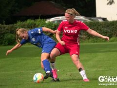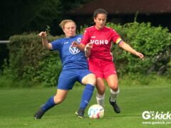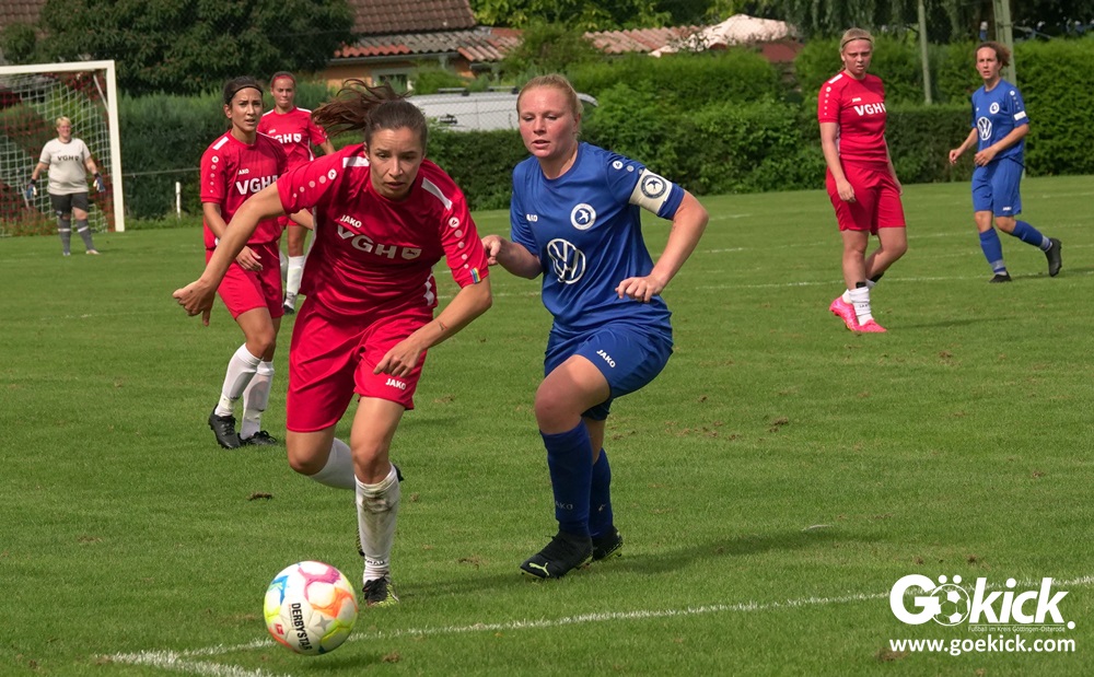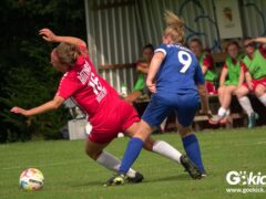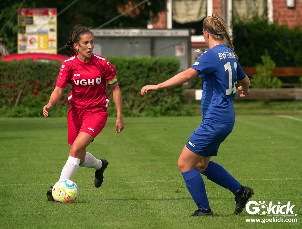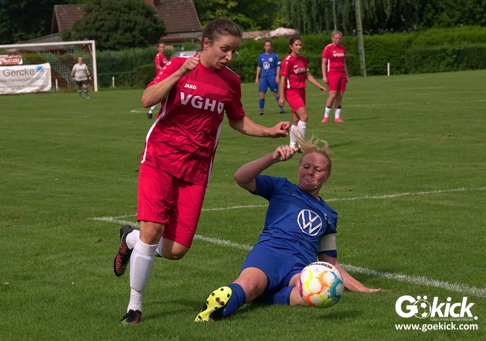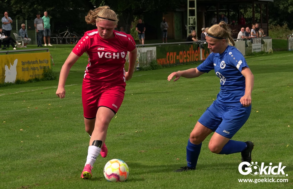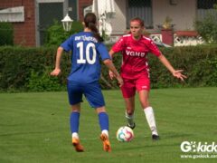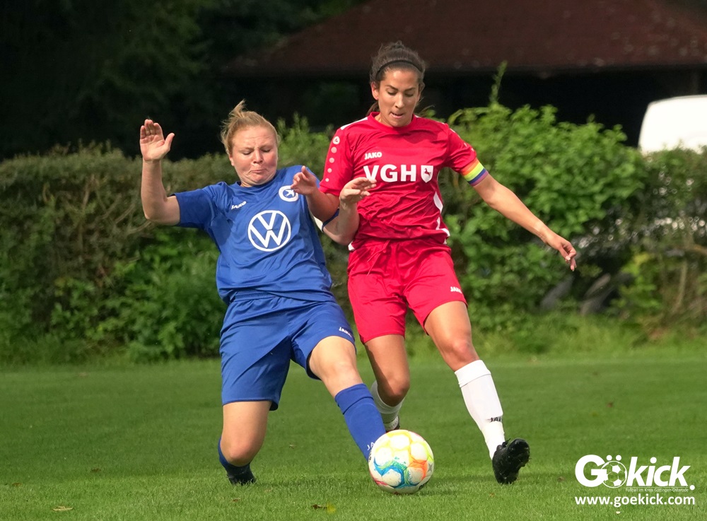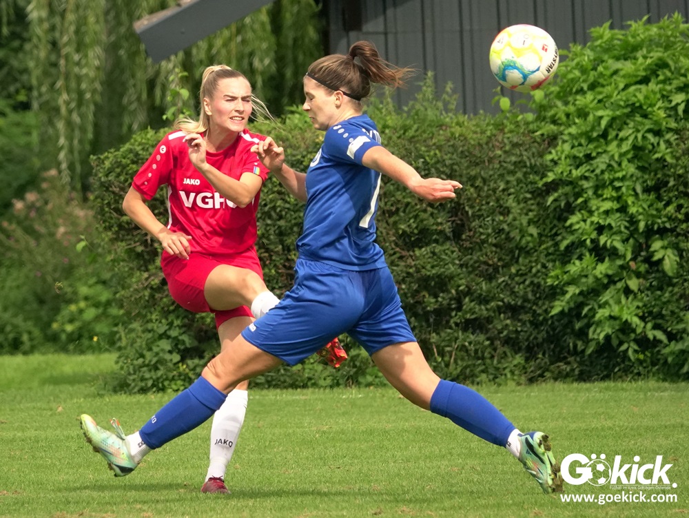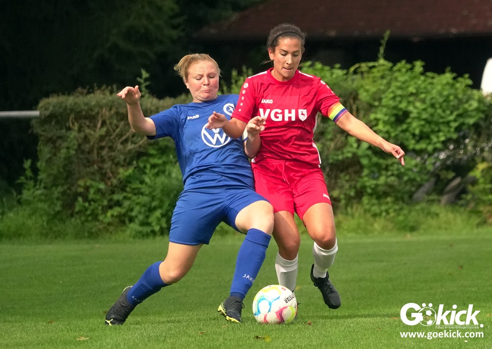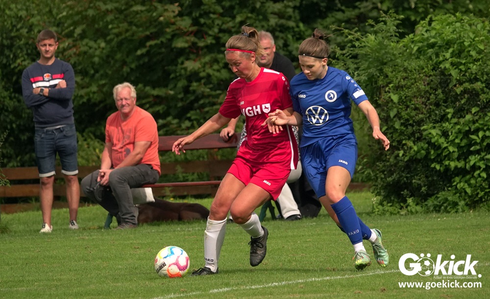 Die Zuschauer am Eisenbahner-Sportplatz sahen eine ausgeglichene Partie mit leichten Vorteilen für die Gastgeberinnen. Doch aus der Überlegenheit entstanden nur wenige echte Tormöglichkeiten – es wird immer noch eine echte Stürmerin bei Rot-Weiß vermisst. Zumindest für einen Kurzeinsatz reichte es für Torjägerin Janett Wochnik bereits. Nach 33 Spielminuten musste das Martin-Team dann sogar einen Gegentreffer schlucken: Mara Kaehler traf für den Landesliga-Hannover-Meister zum 1:0. Damit ging es nicht nur in die Halbzeitpause, das Ergebnis sollte auch bis zum Abpfiff durch Schiedsrichterin Alina Hausold Bestand halten. Im zweiten Heimspiel die zweiten Niederlage! Der ESV Rot-Weiß Göttingen entwickelt langsam einen Heimkomplex.