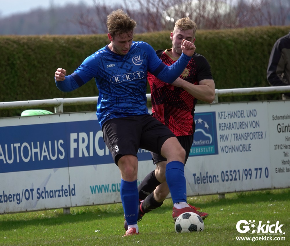Im richtungsweisenden Duell am Tabellenende der 1. Kreisklasse Nord hat die zweite Mannschaft des SV Rotenberg einen wichtigen Heimsieg errungen. Auf dem Sportplatz Scharzfeld setzte sich das Team von Trainer Michael Hahn am Ostersamstag im Nachholspiel des 14. Spieltages mit 2:1 (1:0) gegen den 1. FC Freiheit durch. Damit tauschen beide Mannschaften die Plätze am Tabellenende.