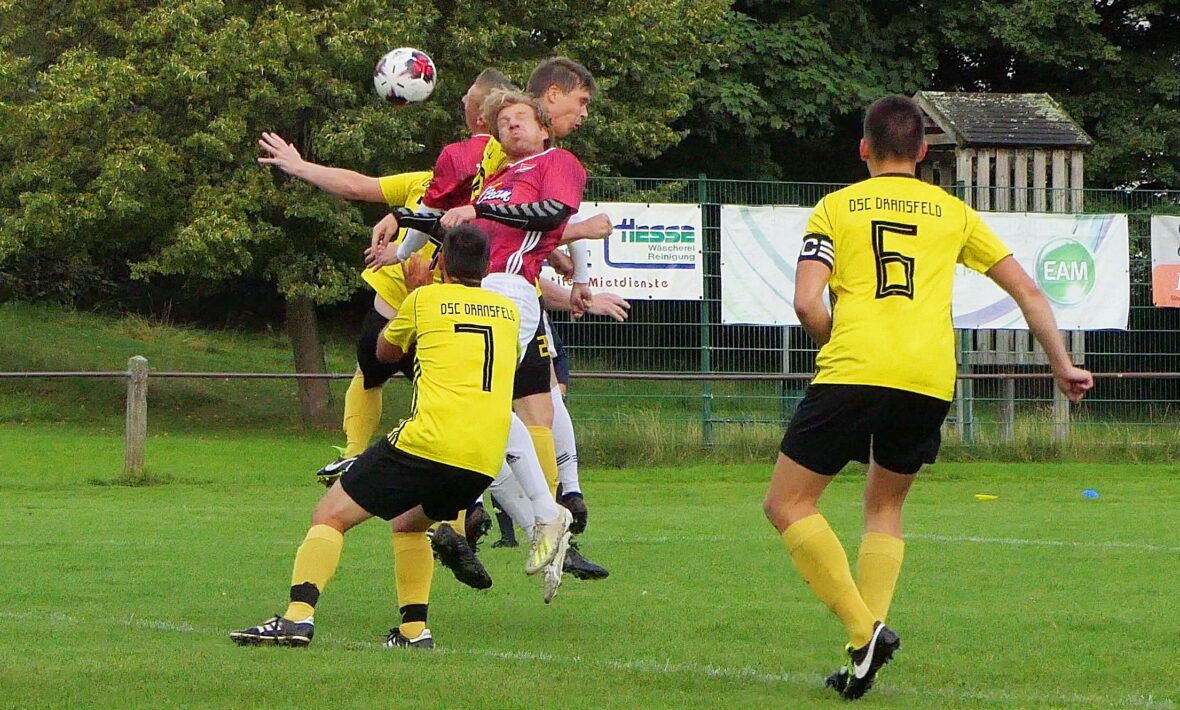 Nur zwei Minuten später schlug der DSC zurück. Ein fest geschossener Freistoß wurde von Mielenhausen, mustergültig per Kopf, unhaltbar in die Holtenser Maschen bugsiert.