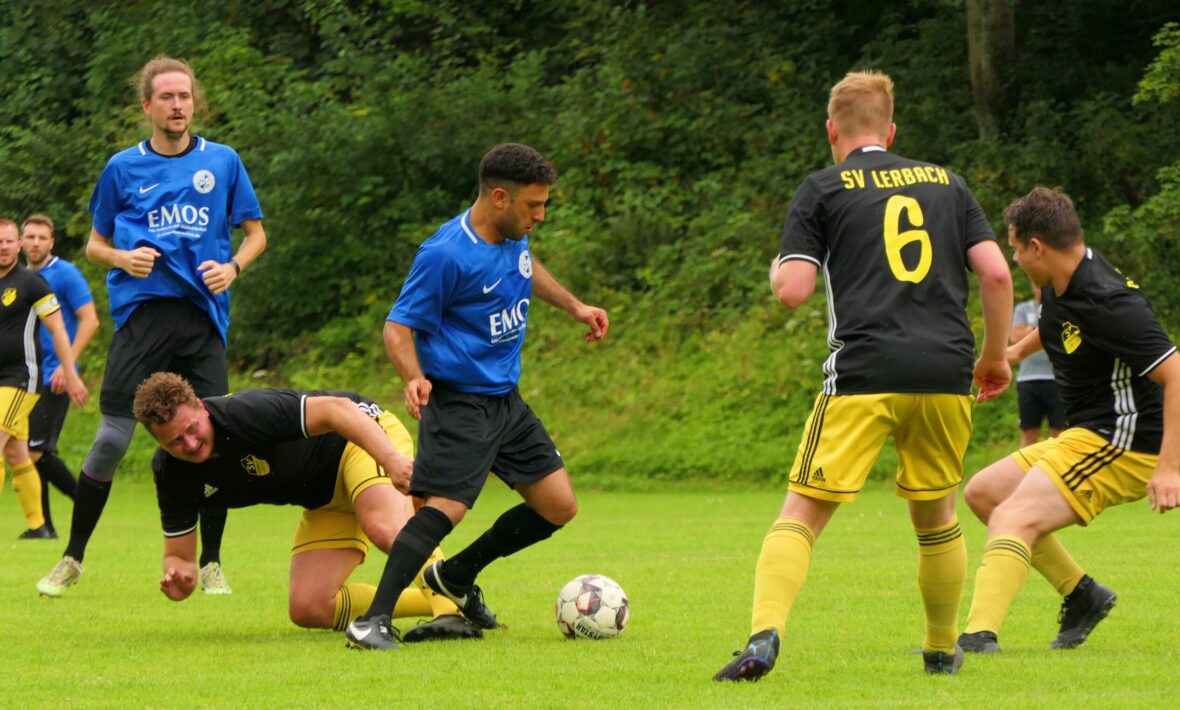 Der Landesligist war mit einigen Spielern seiner Reserve-Mannschaft angereist. So war es nicht verwunderlich, dass Petershütte zwar den Ton angab, der Gastgeber jedoch gut mithielt. Es bedurfte schon eines Geniestreichs durch Neuzugang Alexander Bause – er kam von Borussia Hildesheim – um die Führung zu erzielen. Er hämmerte den Ball sehenswert aus 18 Metern halblinks in den Winkel des Lerbacher Gehäuses (23.). Bause mit einem feinen linken Fuß war der Lichtblick der Osteroder an diesem Nachmittag. Fünf Minuten später konnte Lucas Tornow einen Eckball zur 2:0-Führung per Kopf nutzen. Obwohl auch die Hausherren einige Gelegenheiten hatten, konnte sie keinen Treffer erzielen. Mit dieser Führung ging es in die Halbzeitpause.
