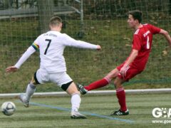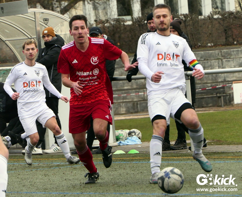 Nach 20 Minuten leitete Paul Grothoff mit dem 1:0 den Torreigen ein. Sieben Minuten später erhöhte Tim-Lennart Strüber auf 2:0. Das 3:0 steuerte Philipp Ritter in der 37. Spielminute bei. Mit der klaren 3:0-Führung für die Hausherren wurden die Seiten gewechselt.
