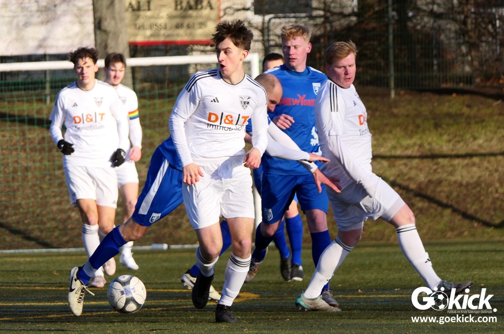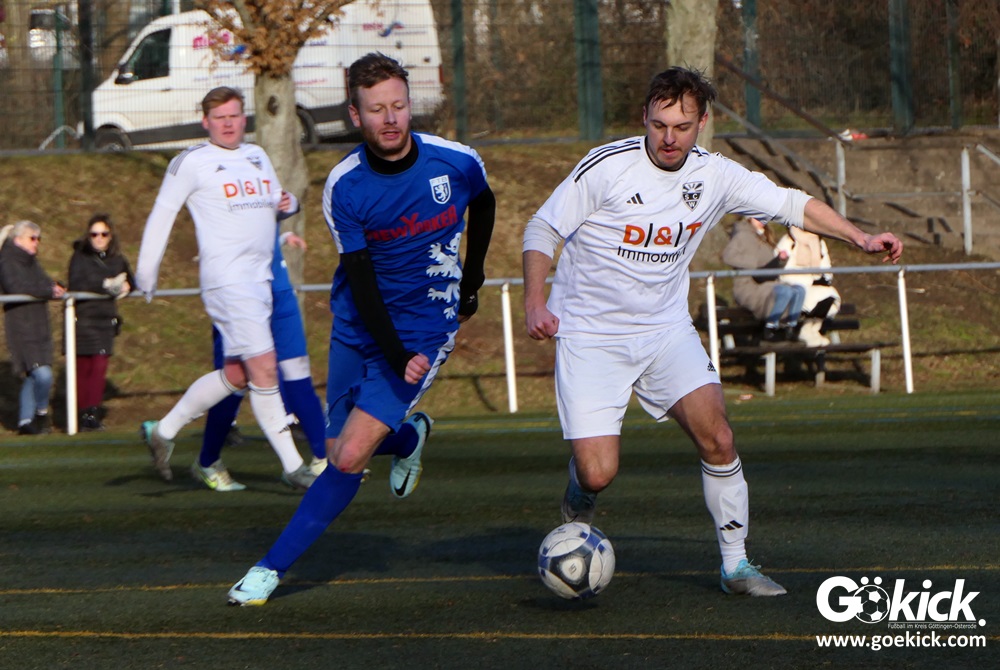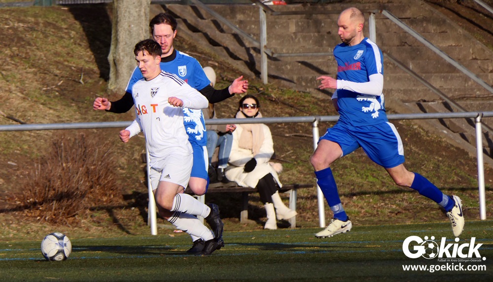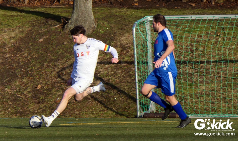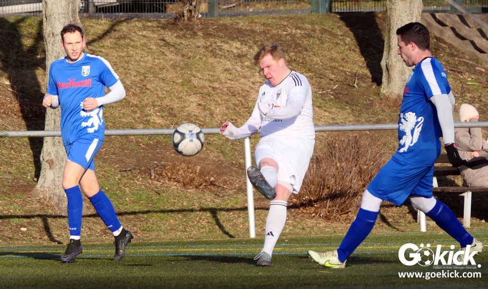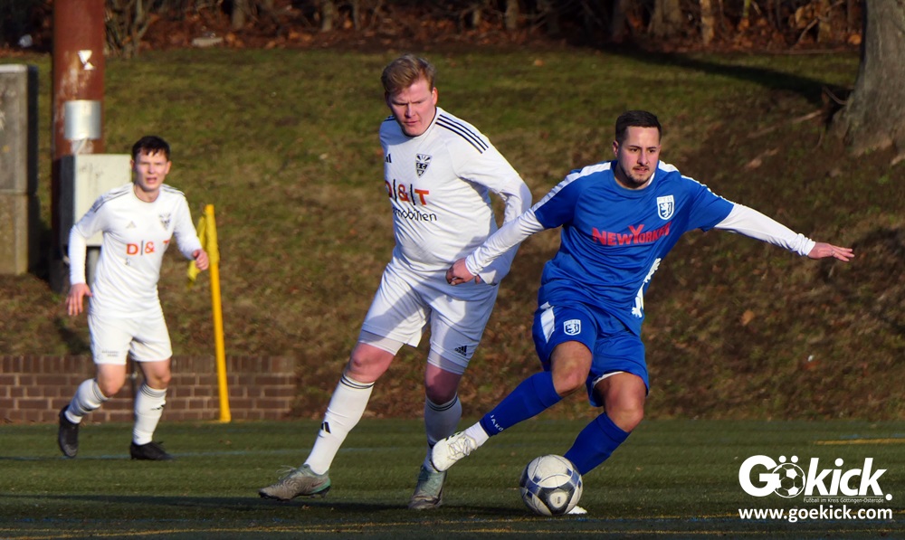 Nach sieben Minuten klingelte es erstmals im Tor der Gäste. Dort stand mit Enno-Bendix Behrens ein Torwart, der einst für den Gastgeber und zuvor auch für den TSV Groß Schneen zwischen den Pfosten stand. Lucca Sielaff konnte ihn überwinden. Doch nur vier Minuten später gelang Lennart Appel der Ausgleich für die Löwenstädter. Weiter fünf Minuten waren verstrichen, da konnte Mehmet Kaan Arlier die Heimmannschaft per verwandelten Strafstoß erneut in Führung schießen. Für das 2:2 in der 39. Spielminute sorgte der Braunschweiger Nils Helbing. Damit ging es auch in die Halbzeitpause.