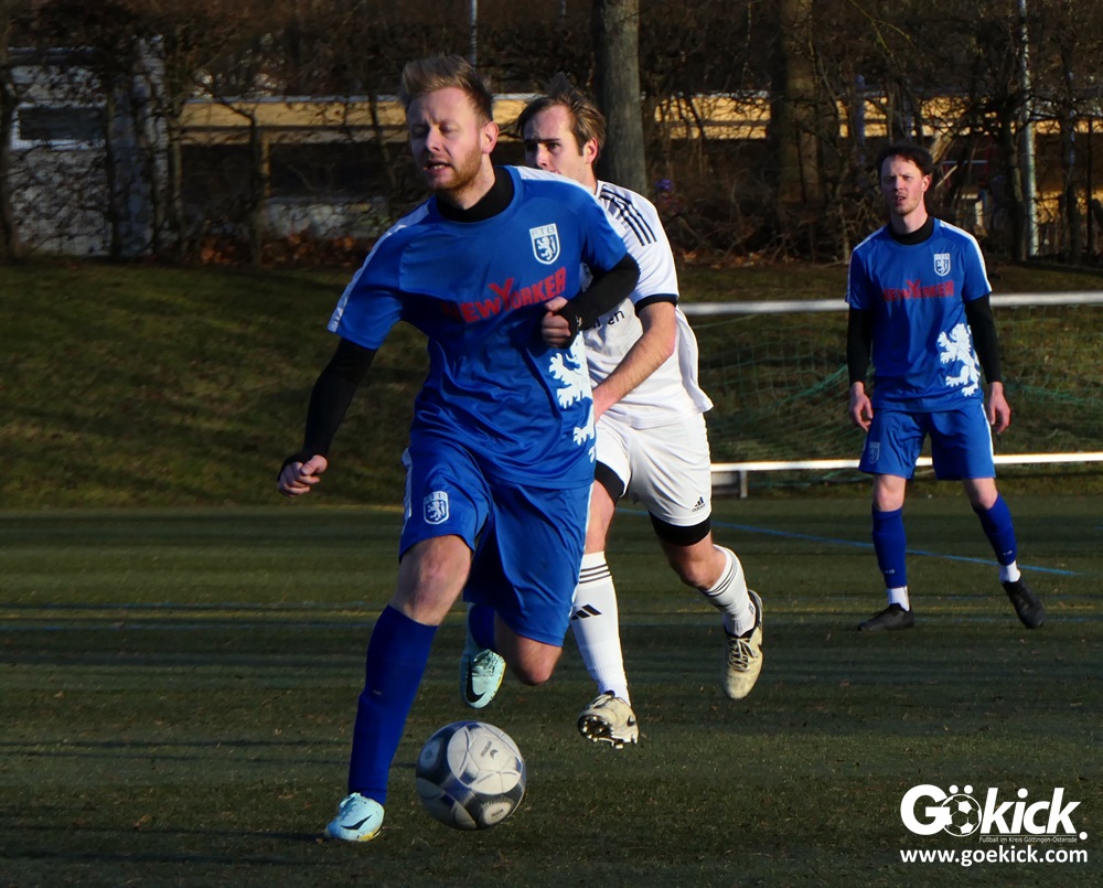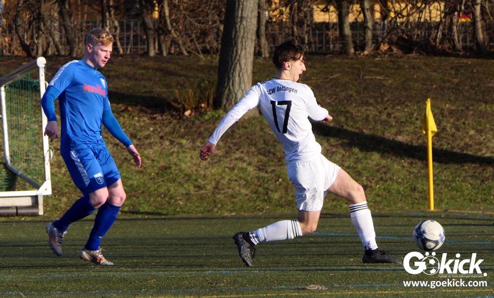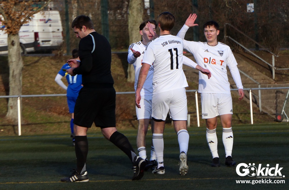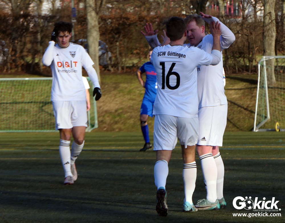Die Weender setzen ihre Siegesserie fort. Vor der Winterpause siegte das Team vom Trainertrio Marc Zimmermann, Jasper Frohn und Stefan Claaßen in der Bezirksliga viermal in Folge. Diesen Lauf hielt auch die Ruhepause in der kalten Jahreszeit nicht auf. Mit einem 4:3 (2:2)-Sieg im Testspiel gegen die zweite Mannschaft der Freien Turnerschaft (FT) Braunschweig aus der Kreisliga startete der SCW Göttingen in das neue Kalenderjahr.