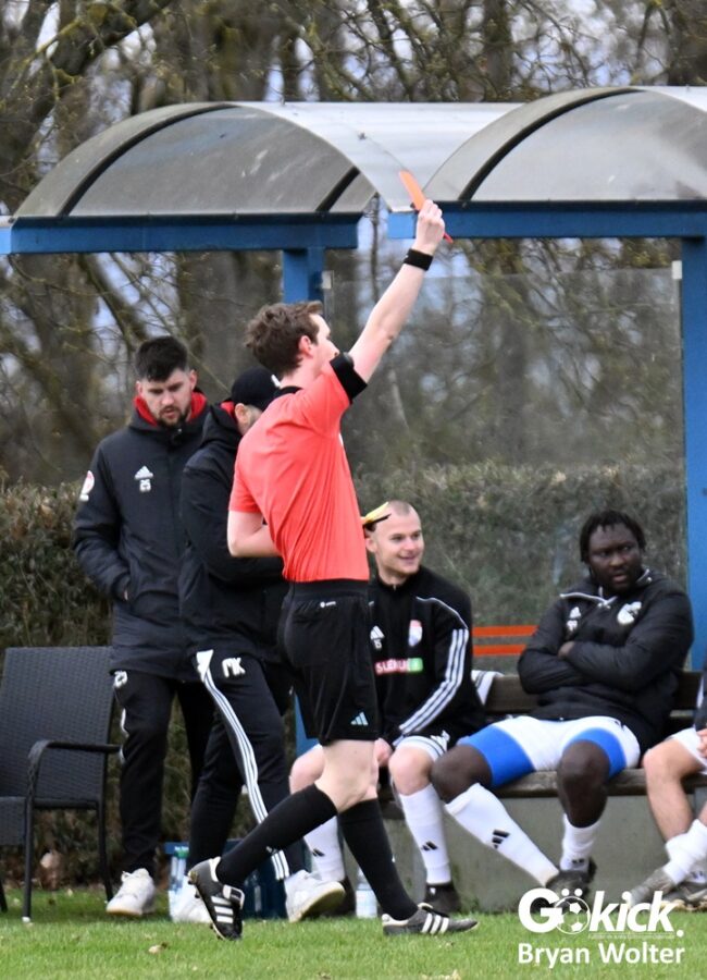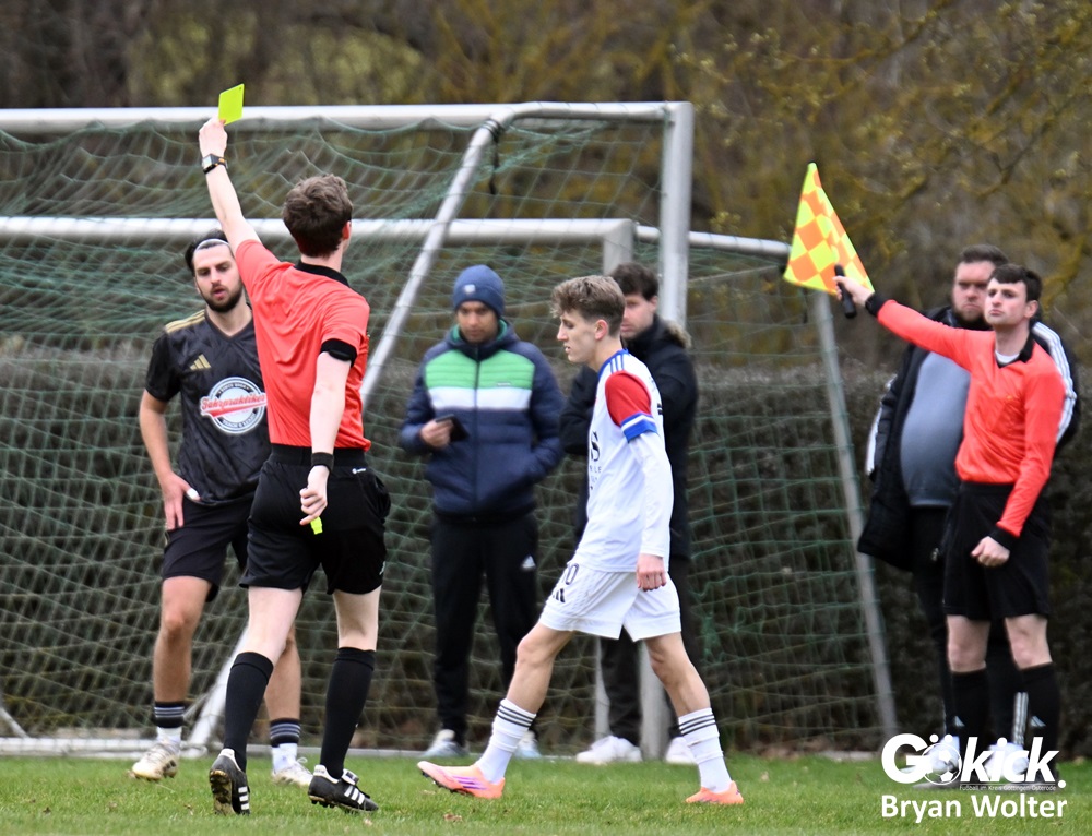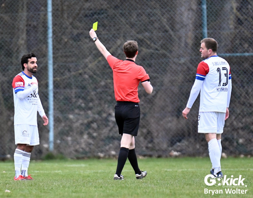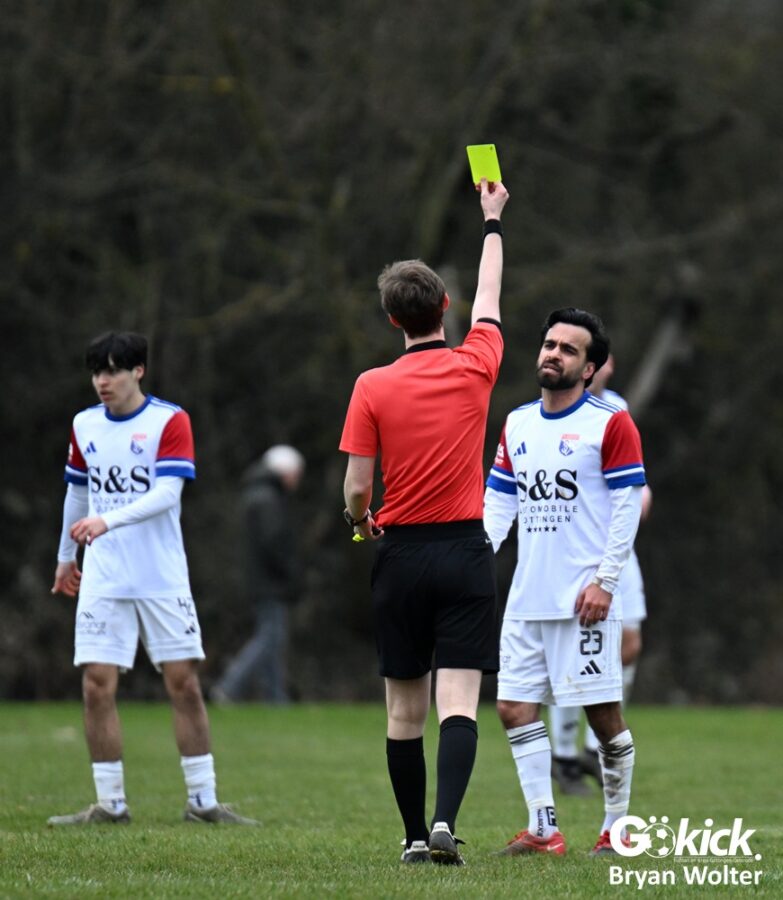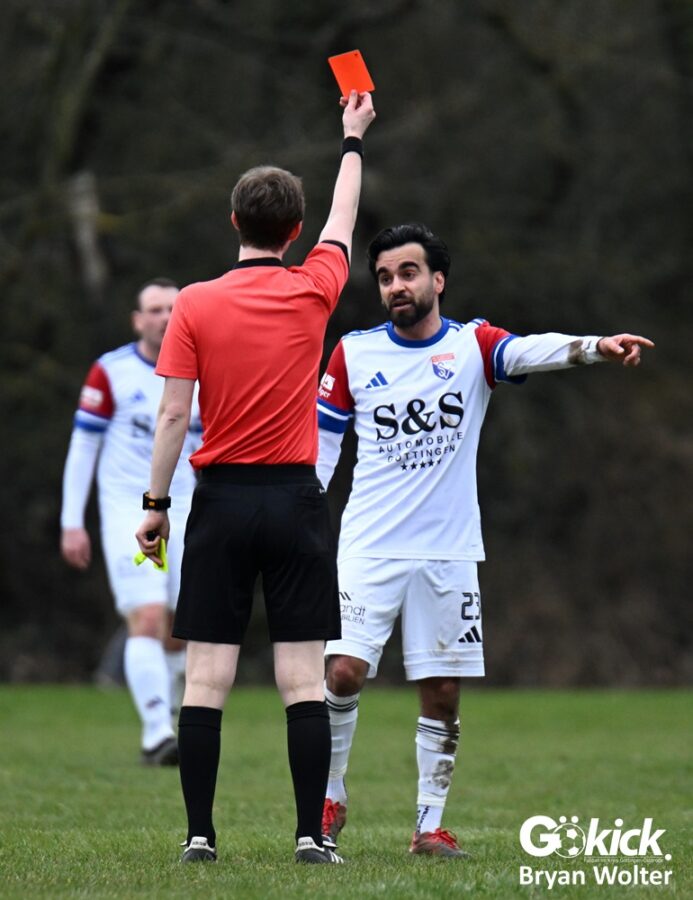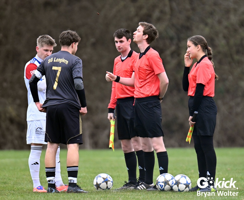 Dennoch gerieten die Hausherren früh in Rückstand. In der 12. Minute traf Mladen Drasic für die SG Lenglern zum 0:1. Der Treffer sorgte für Diskussionen, weil im Vorfeld eine Abseitsstellung vermutet wurde. Schiedsrichter Moritz Becker ließ das Tor nach längerer Beratung mit seiner Assistentin jedoch gelten. Infolge dieser Aktion verwies der Unparteiische den Teammanager der Gastgeber wegen lautstarker Kritik mit Gelb-Roter Karte des Feldes.