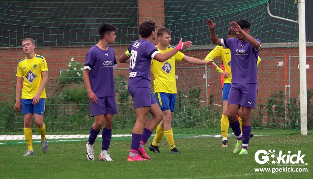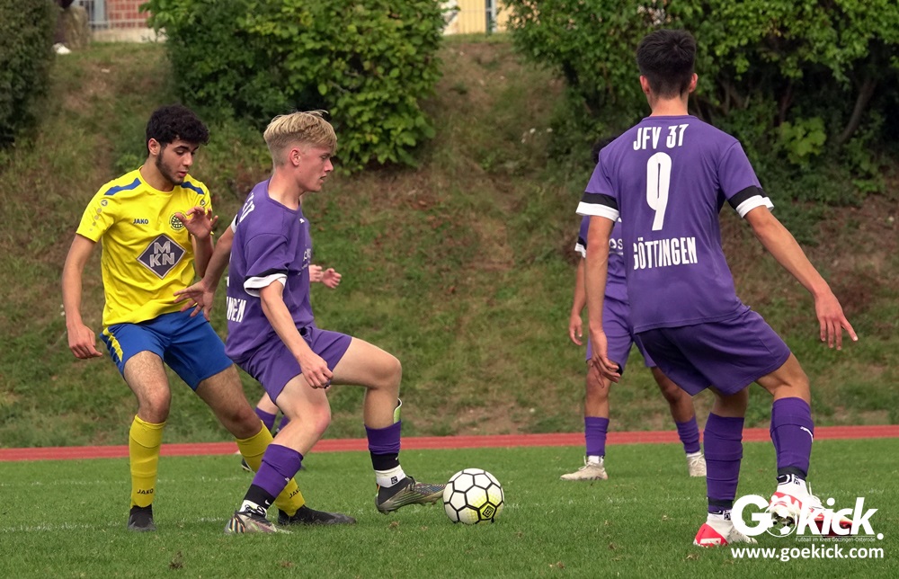 Der A-Jugend-Landesliga-Aufsteiger JFV 37 Göttingen U19 ist mit einer Auswärtsniederlage und einem Auswärtssieg in die neue Spielklasse gestartet. Am vergangenen Samstag stieg dann die Heimpremiere in der neuen Spielklasse auf dem Sportplatz des SC Hainberg auf den Zietenterrassen. Zu Gast war der Vorjahres-Neunte Ballsport-Verein Germania (BVG) Wolfenbüttel. Am Ende der unterhaltsamen und temporeichen 90 Minuten siegte der Gastgeber vom Trainerduo Oliver Hille und Lars Willmann verdient mit 5:1 (2:0). Mit sechs Punkten aus drei Spielen belegt das lila Team vorerst Platz fünf. Der Gast bleibt nach seinen zwei Spielen mit nur einem Punkt auf Platz zehn.