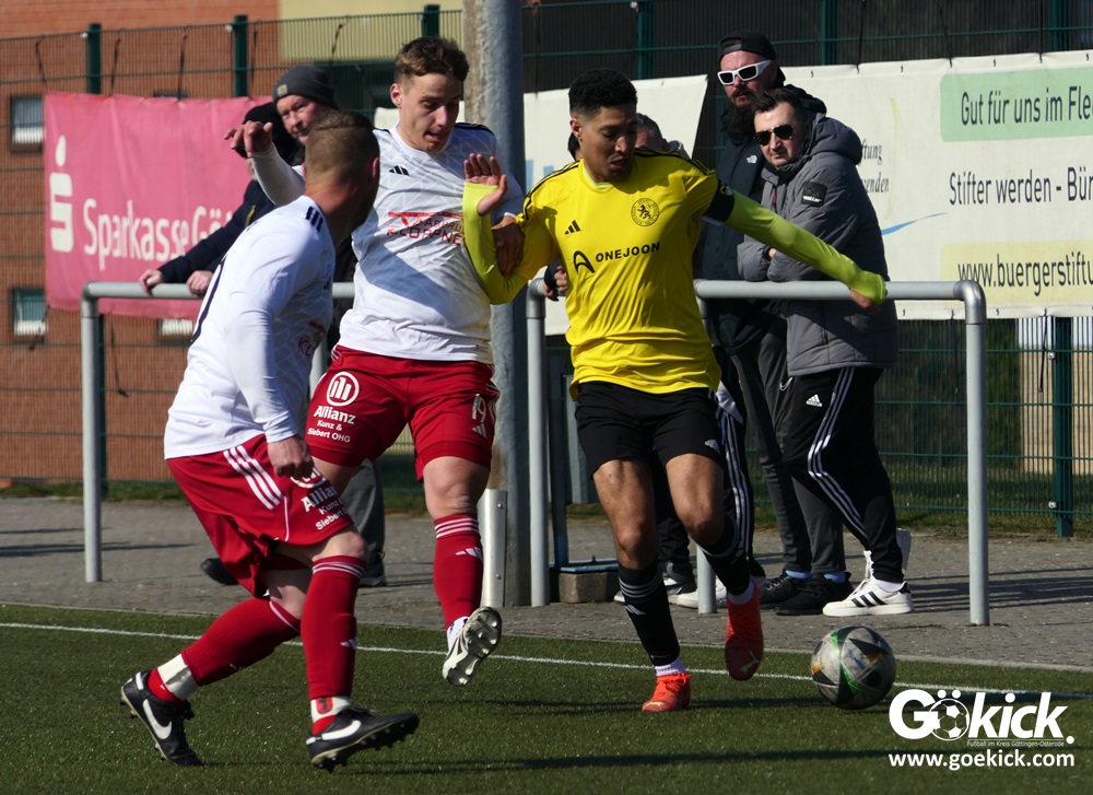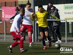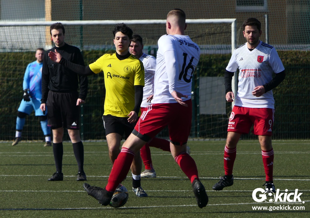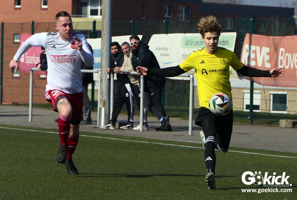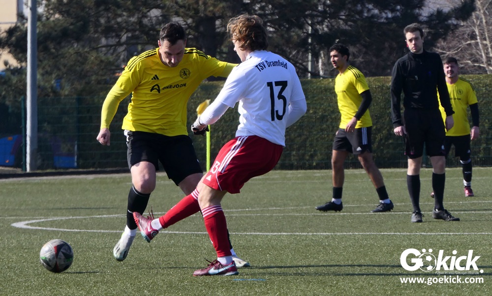 Dass viel auf dem Spiel stand, sahen die Zuschauer am Sonntag-Morgen auf dem Kunstrasenplatz am Bovender Südring. Die Partie war im ersten Abschnitt sehr zerfahren und ohne fußballerische Klasse. Bereits nach sechs Minuten entschied der Unparteiische Marc Schramm nach einem Foul im Bovender Strafraum auf Elfmeter. Diesen verwandelte Kai Gätjen für den TSV Dramfeld sicher (Video). Im weiteren Verlauf der ersten Hälfte der Kreisliga-Partie passierte wenig Berichtenswertes.