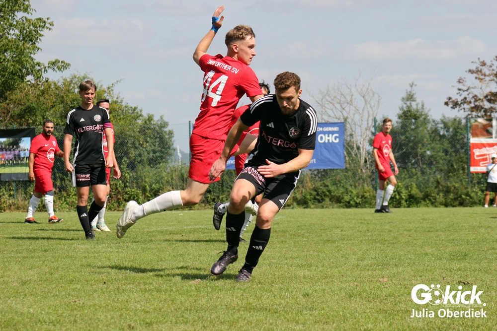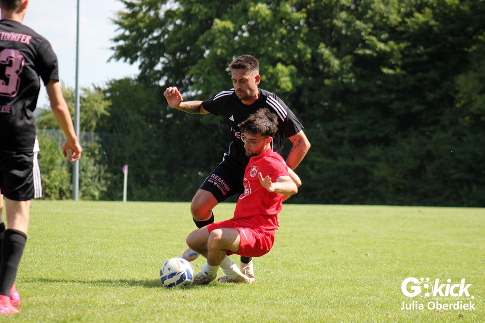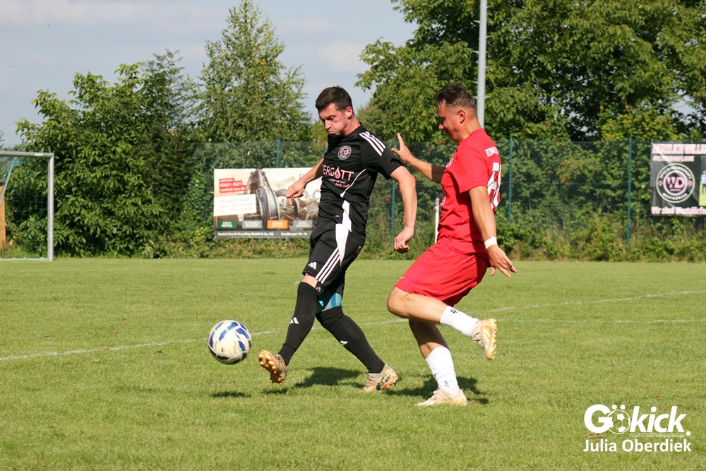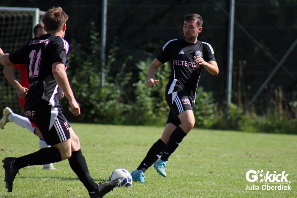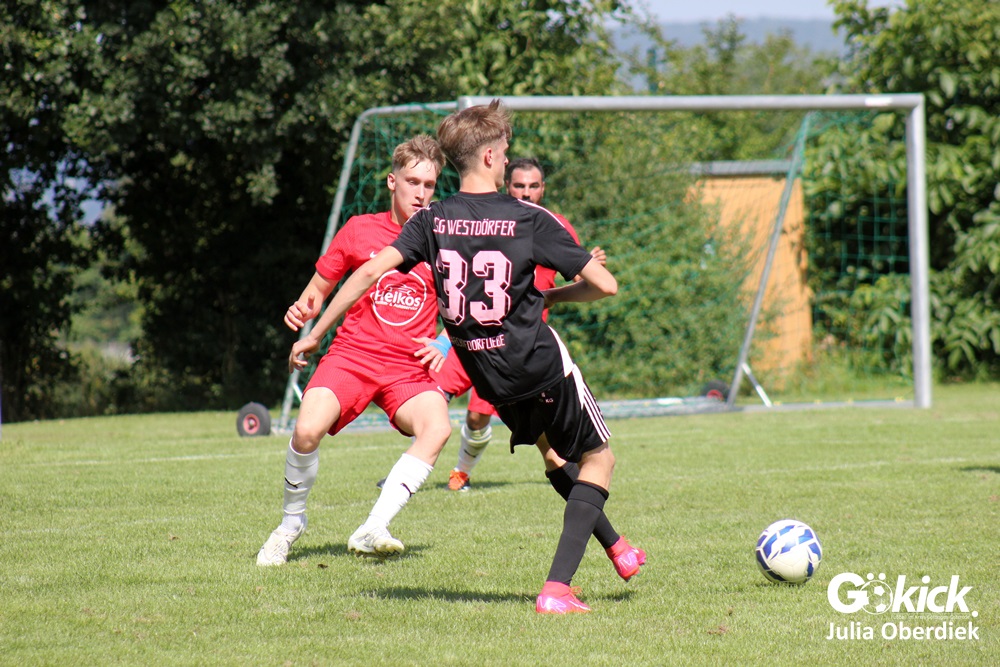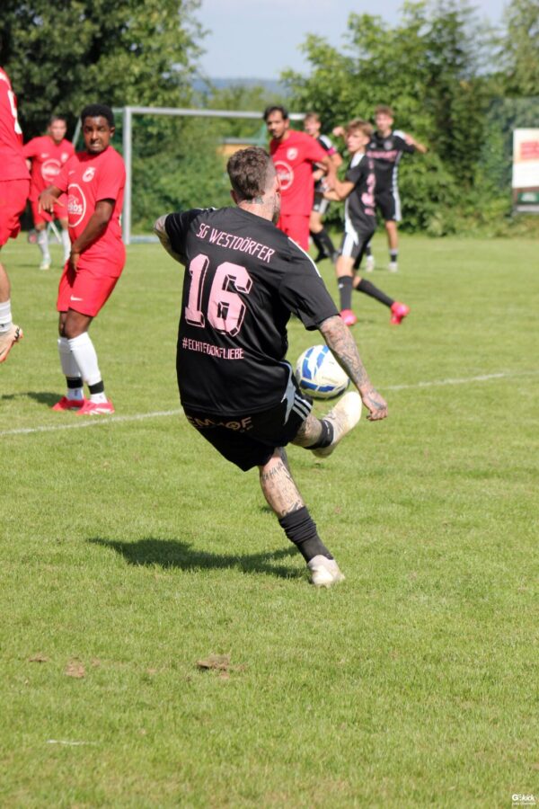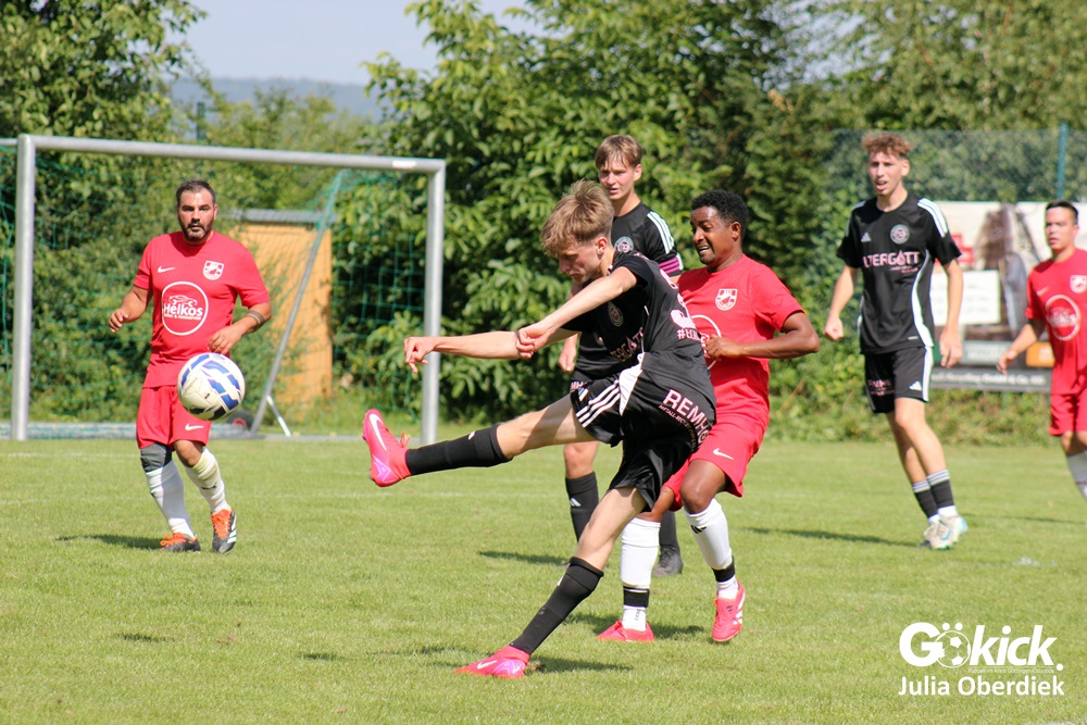 Die Westdörfer begannen druckvoll und setzten den Neuling früh in der eigenen Hälfte fest. Dennoch dauerte es bis kurz vor der Pause, ehe der Bann brach: In der 41. Minute vollendete Hoch einen präzisen Angriff zur verdienten Führung.