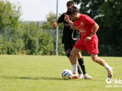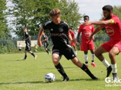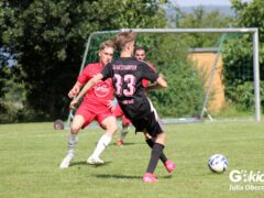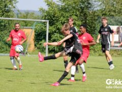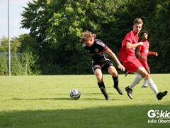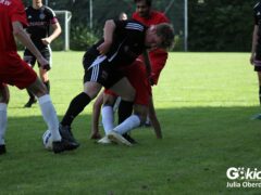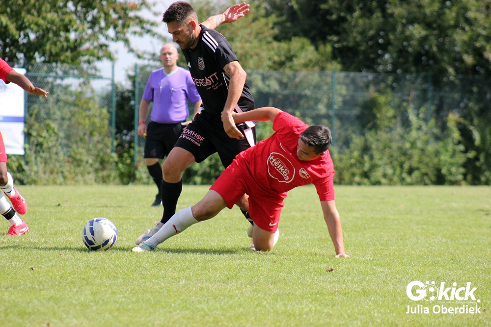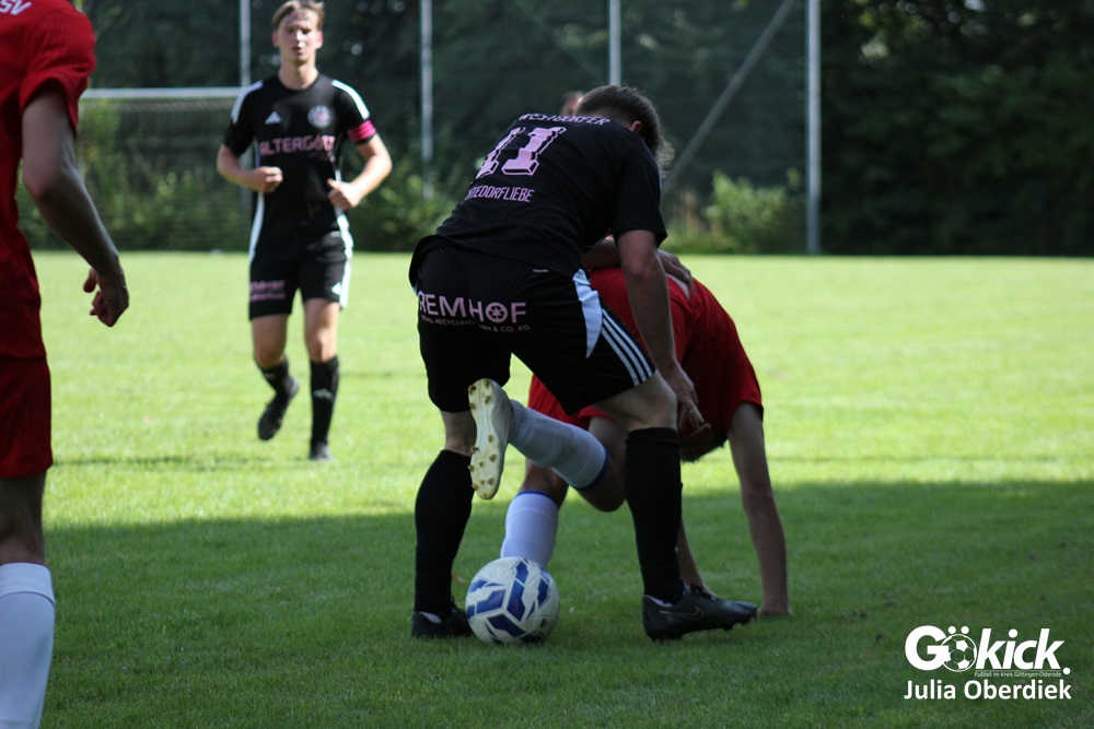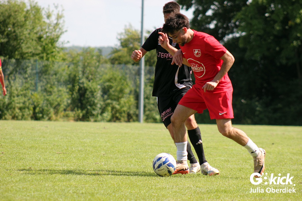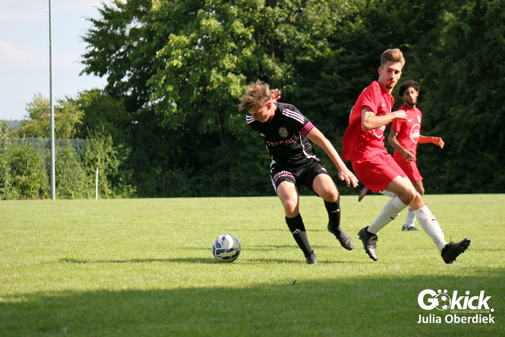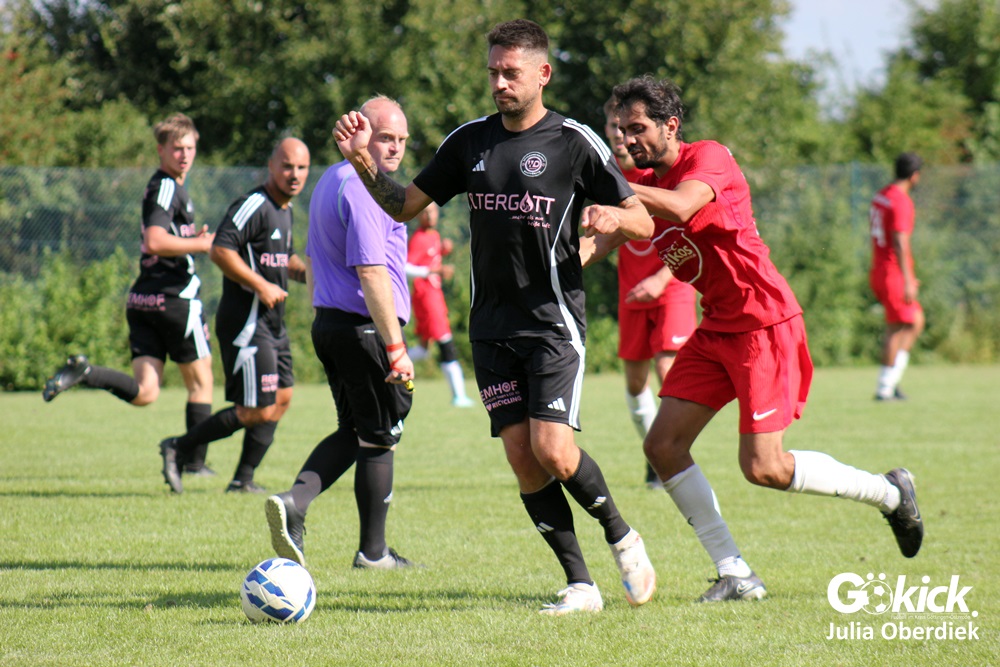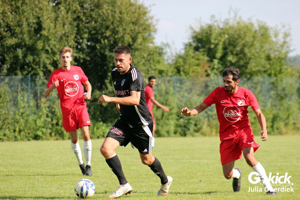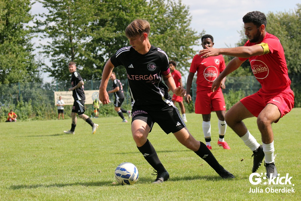 Die Westdörfer begannen druckvoll und setzten den Neuling früh in der eigenen Hälfte fest. Dennoch dauerte es bis kurz vor der Pause, ehe der Bann brach: In der 41. Minute vollendete Hoch einen präzisen Angriff zur verdienten Führung.