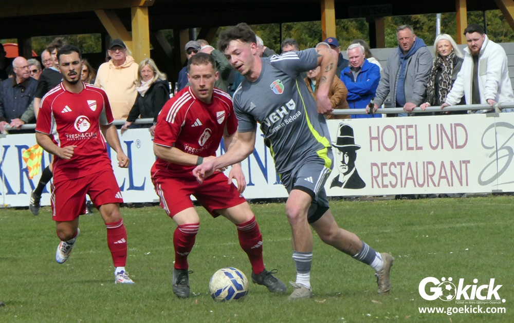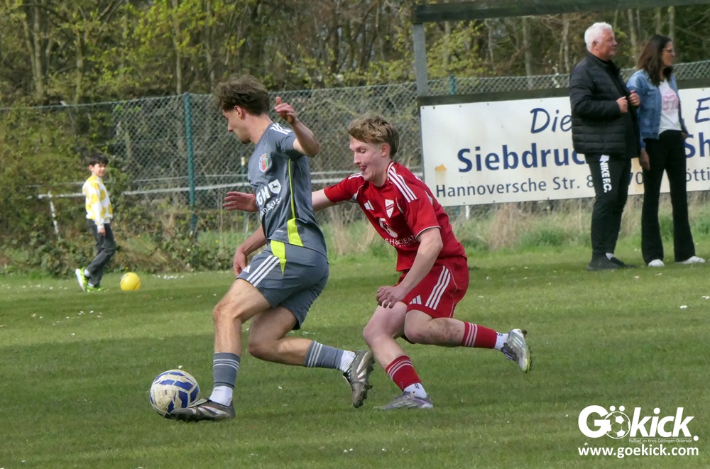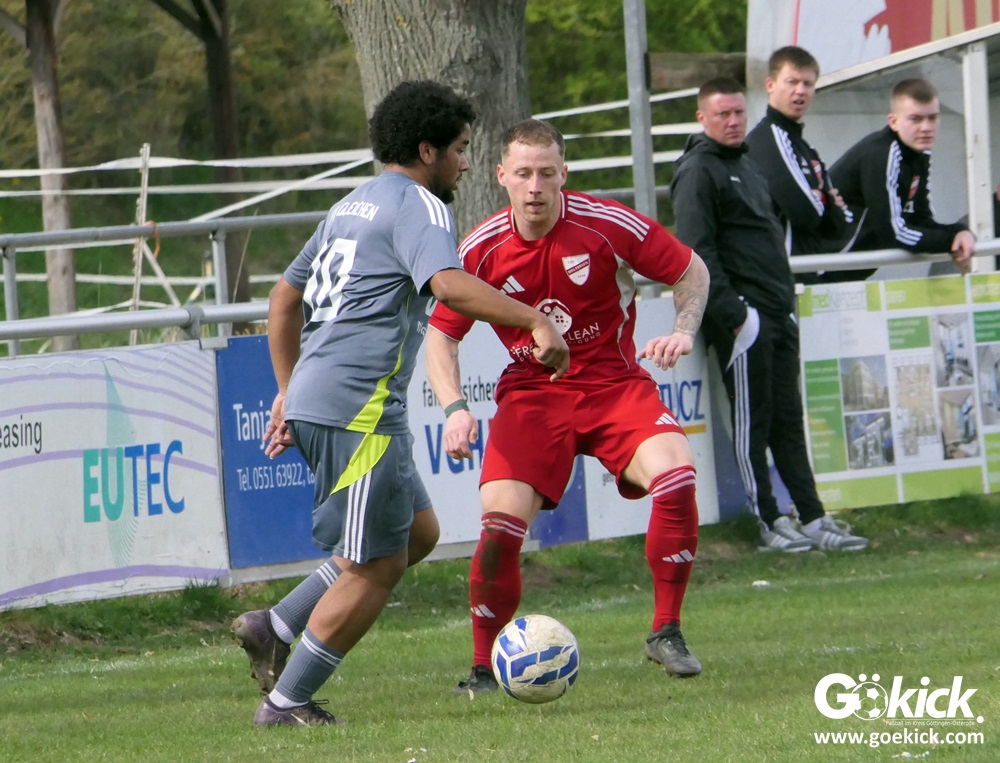Die Gäste blieben gefährlich und gingen erneut in Führung. Björn Denecke verwandelte in der 35. Minute einen Strafstoß zum 1:2 und unterstrich mit seinem 17. Saisontreffer seine Bedeutung als erfahrener Torjäger, der in der Liga nur von Omar El Zein übertroffen wird. Mit dieser Führung für den FC Gleichen ging es in die Pause.