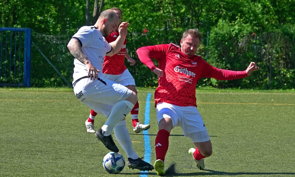 Kevin Taubert eröffnete mit seinem Treffer nach neun Minuten den Torreigen auf dem Kunstrasenplatz am Greitweg. Nach 22 Minuten erhöhte Koffi Ali Egblomegbe auf 2:0. Kurz vor der Pause (42. Minute) konnte Stefan Luether für die Gäste verkürzen. Mit der knappen 2:1-Führung für den Tabellenführer wurden die Seiten gewechselt.