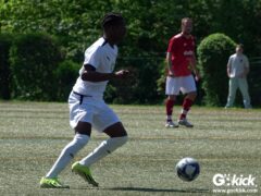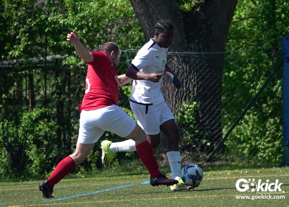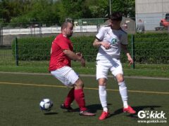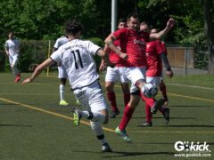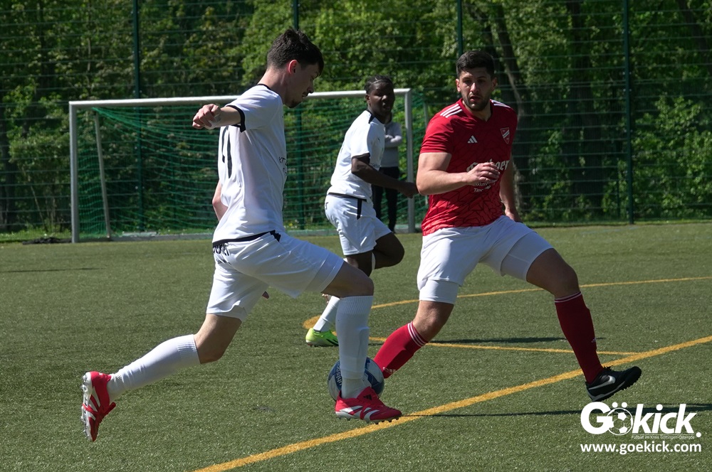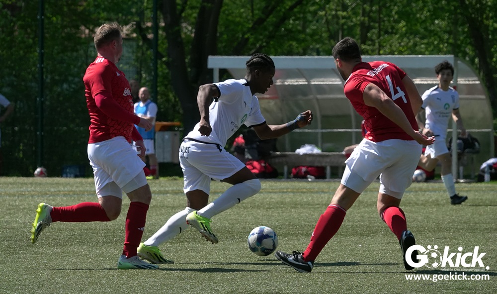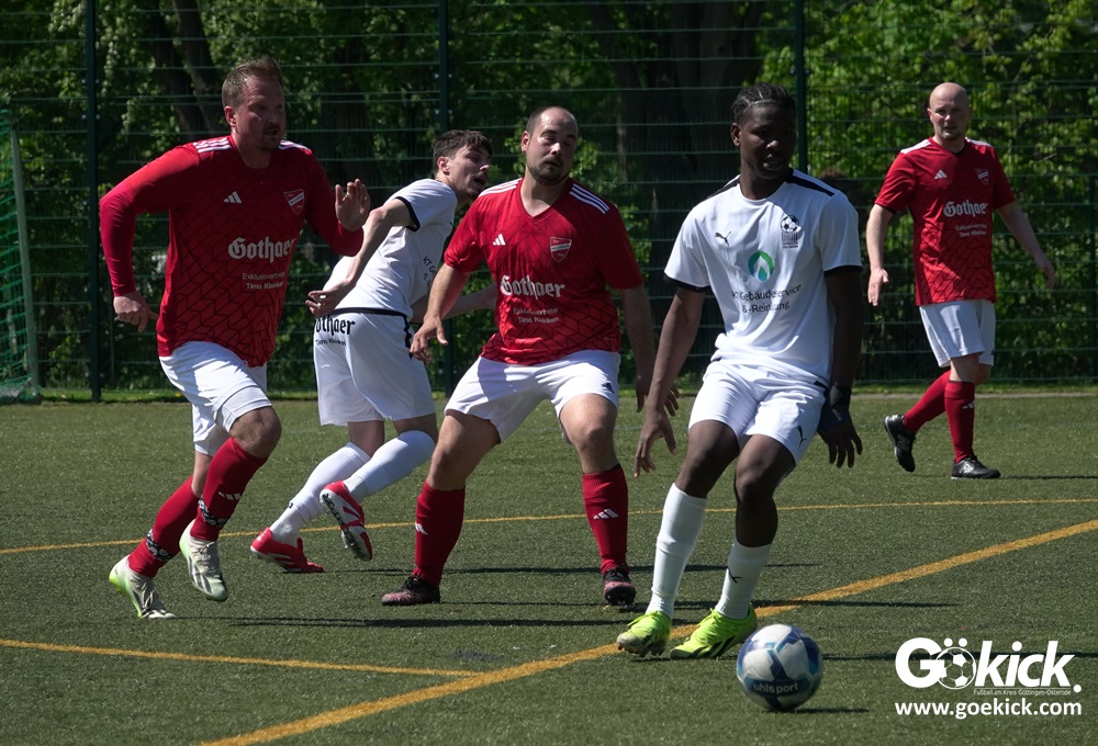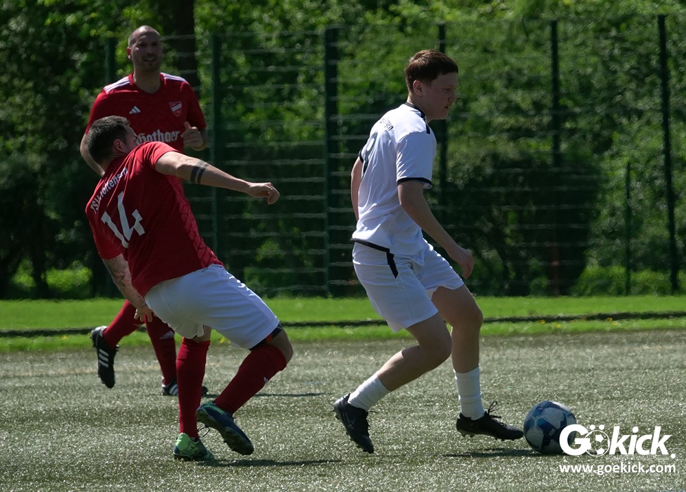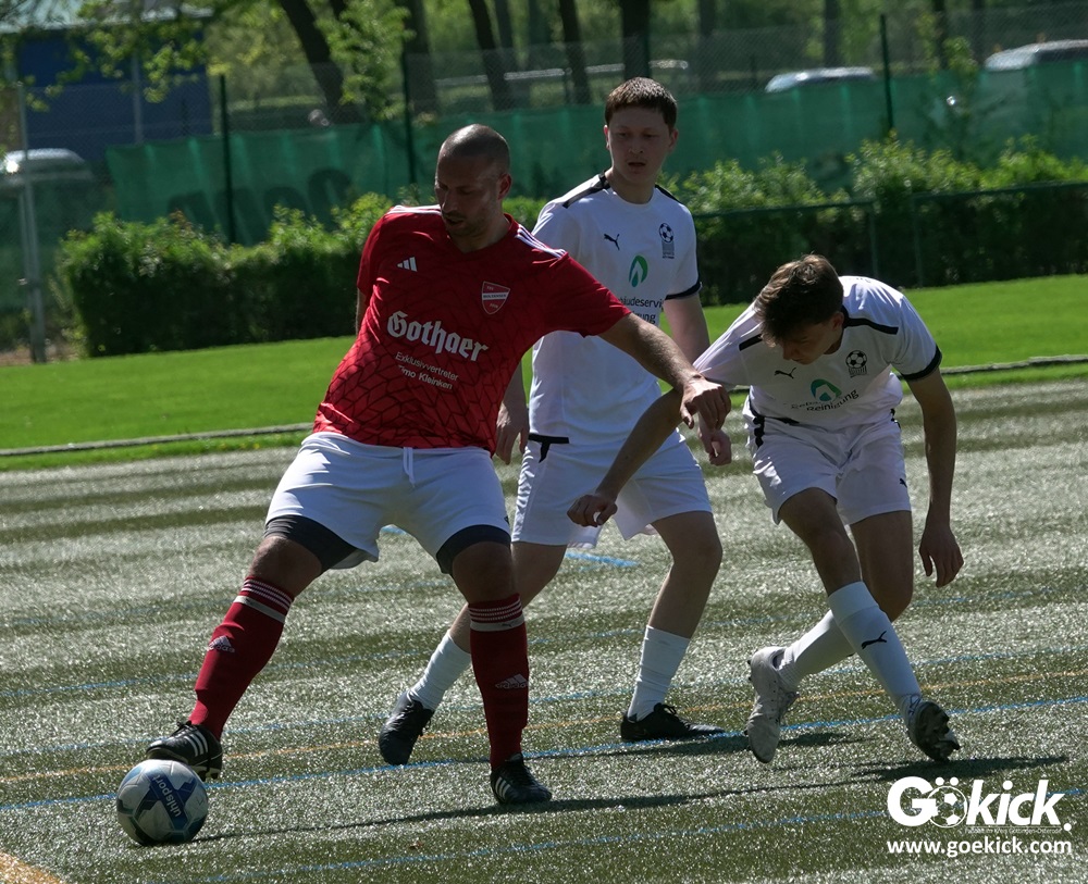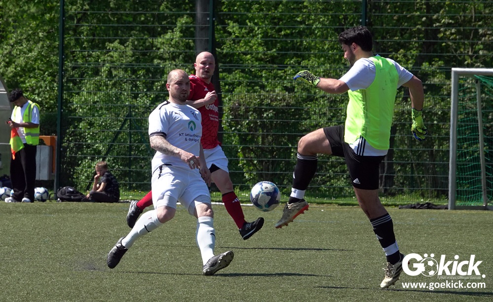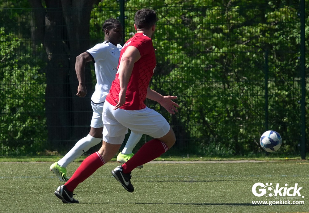Kevin Taubert eröffnete mit seinem Treffer nach neun Minuten den Torreigen auf dem Kunstrasenplatz am Greitweg. Nach 22 Minuten erhöhte Koffi Ali Egblomegbe auf 2:0. Kurz vor der Pause (42. Minute) konnte Stefan Luether für die Gäste verkürzen. Mit der knappen 2:1-Führung für den Tabellenführer wurden die Seiten gewechselt.