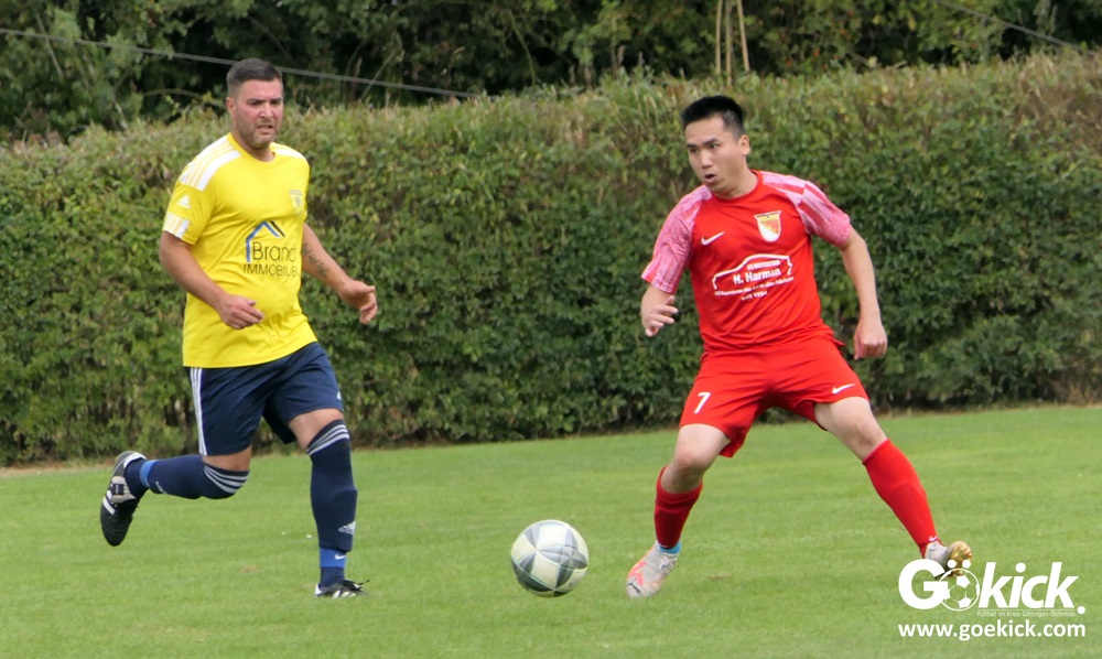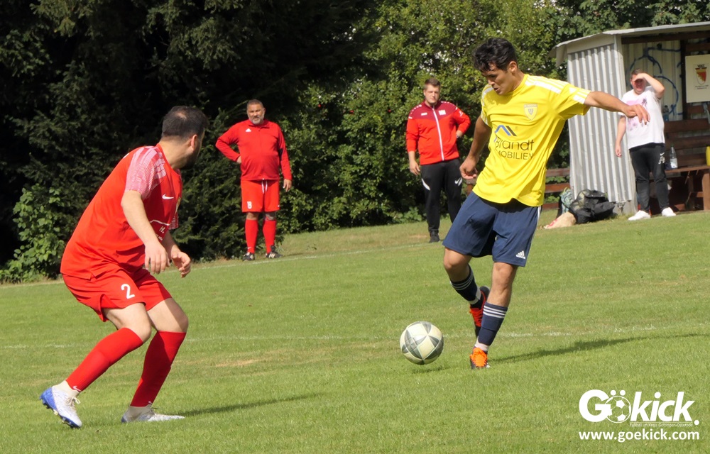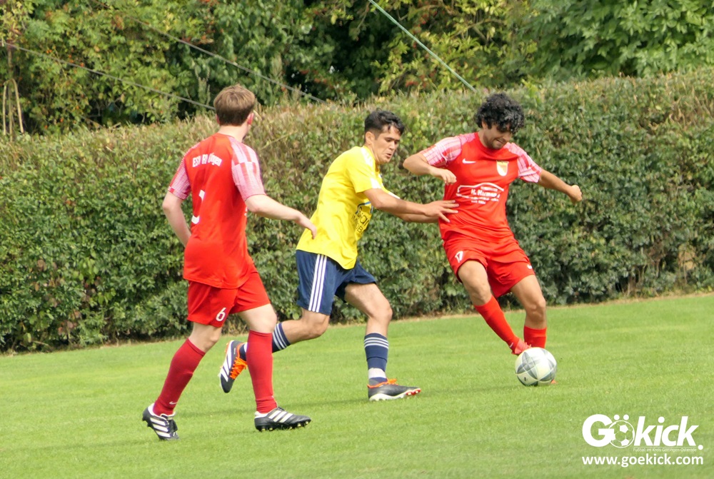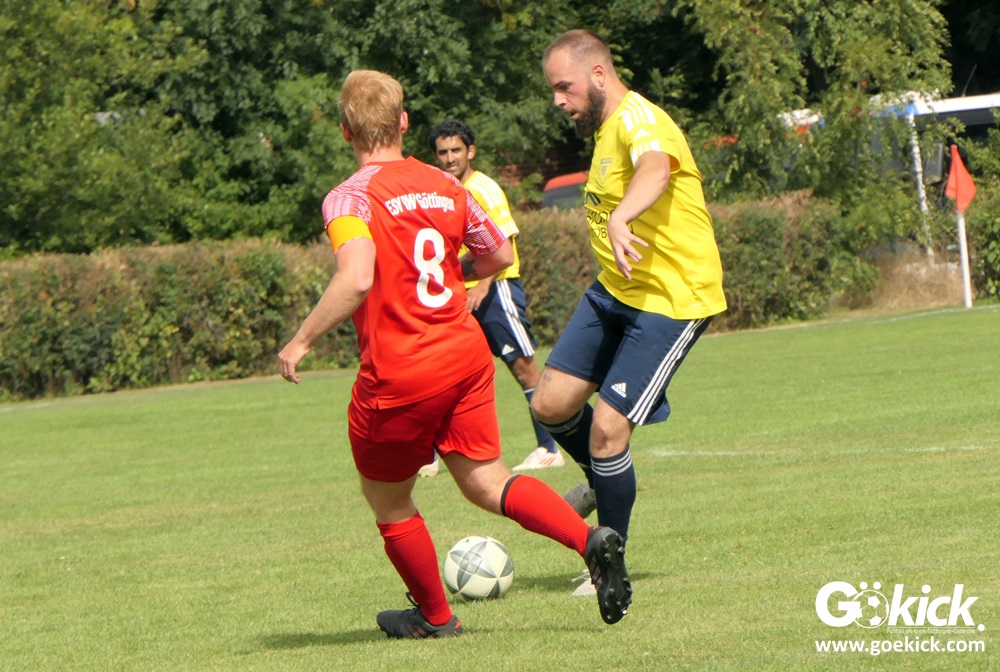 Vor rund 30 Zuschauern leitete Schiedsrichter Michael Thäsler eine umkämpfte Partie, in der die Gäste früh die Richtung vorgaben. Bereits in der 9. Minute nutzte Jan Denecke eine Unachtsamkeit in der Hintermannschaft des ESV und brachte seine Farben in Führung. Zwölf Minuten später war es erneut Denecke, der mit seinem bereits fünften Saisontor auf 2:0 erhöhte und die Anhänger der SG jubeln ließ.