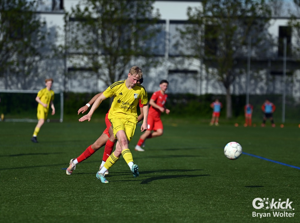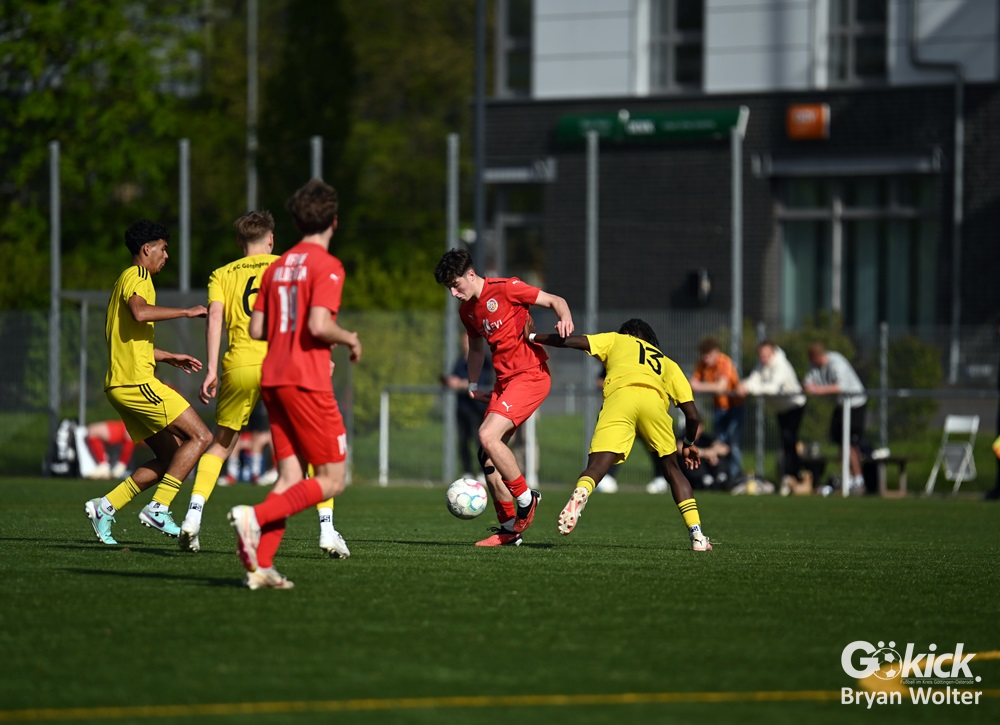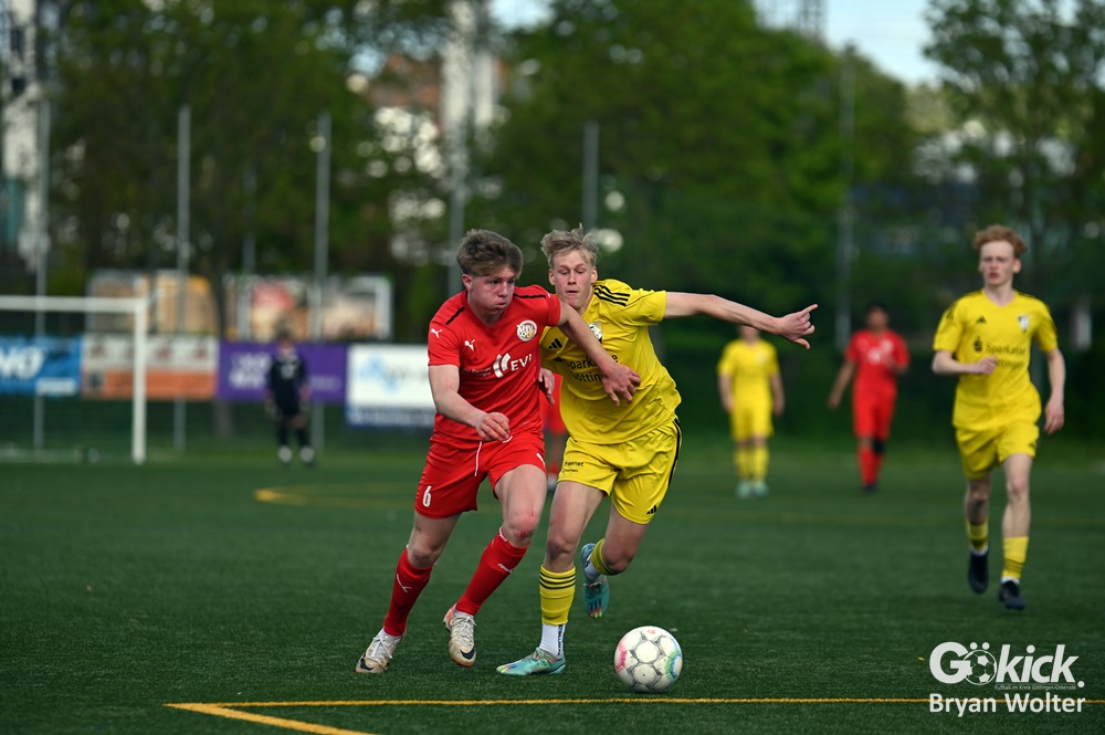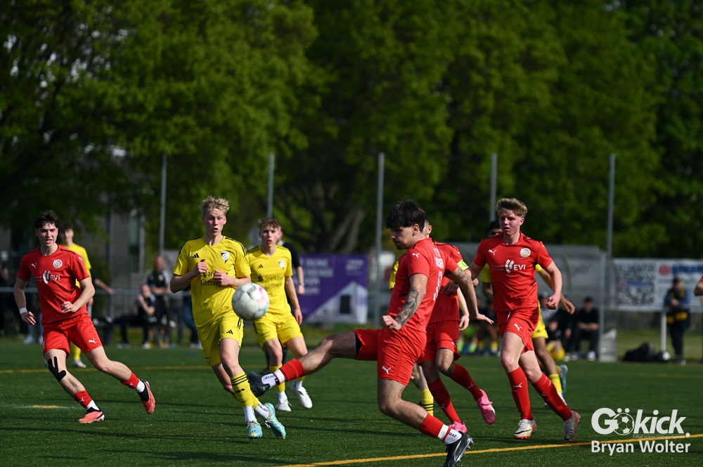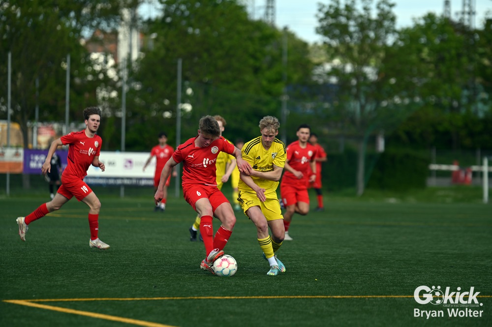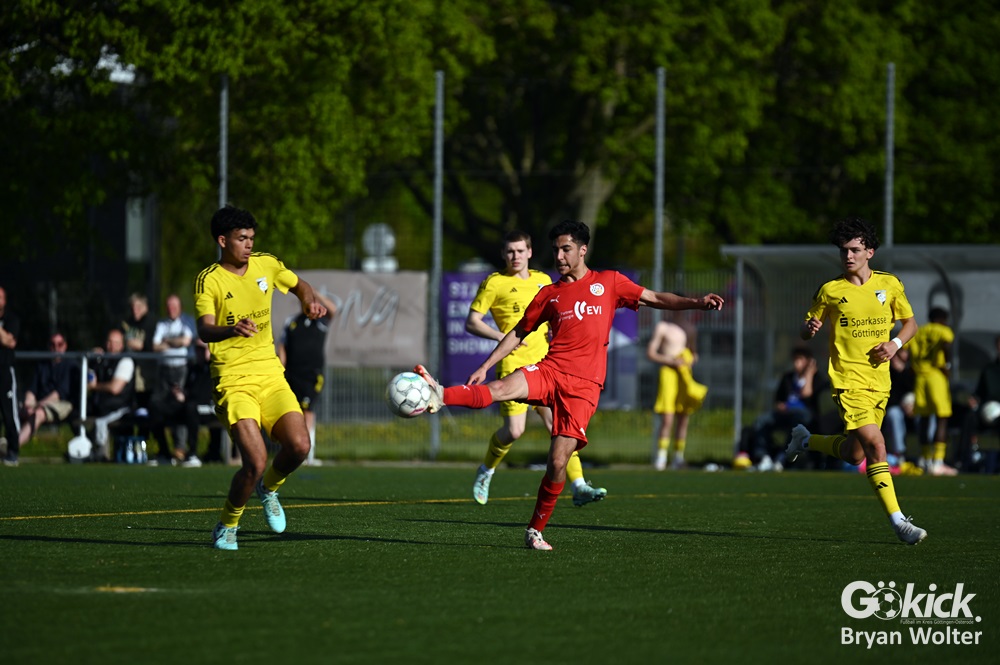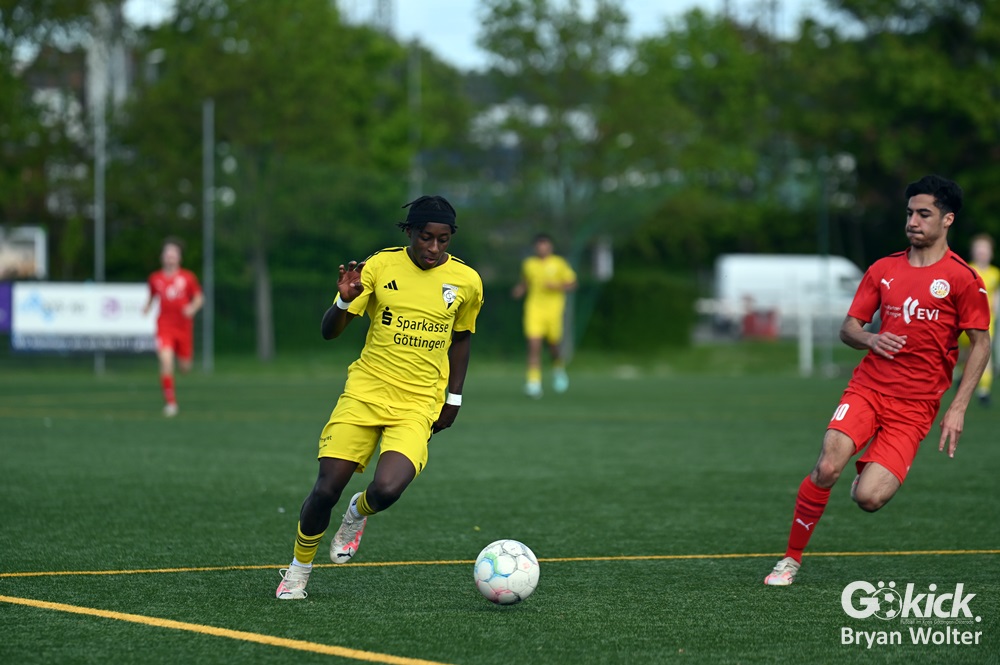 Die U19 des 1. SC Göttingen 05 hat dem Spitzenreiter der A-Jugend-Niedersachsenliga, dem VfV Borussia 06 Hildesheim, auch die zweite Saison-Niederlage zugefügt. Nach dem 6:4-Sieg des Teams von Trainer Jan Steiger im Hinspiel im März, gewannen die Göttinger auch das Rückspiel am vergangenen Samstag im heimischen Maschpark mit 2:1 (2:0). Durch diesen Sieg verkürzte das schwarz-gelbe Team den Rückstand zum Tabellenführer auf drei Punkte, hat aber auch ein Spiel mehr ausgetragen. In den restlichen sieben beziehungsweise acht Spielen der Saison könnte noch viel Spannung entstehen.