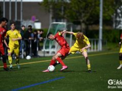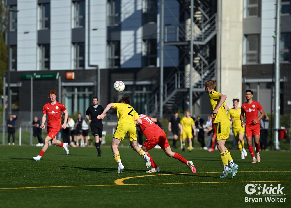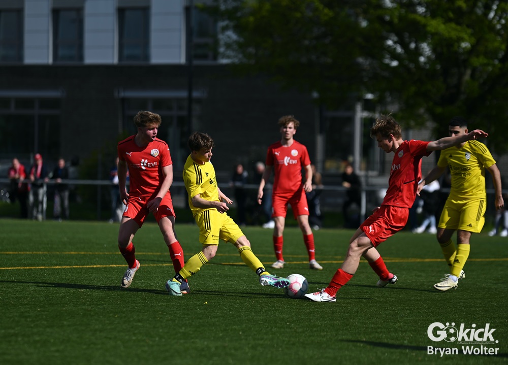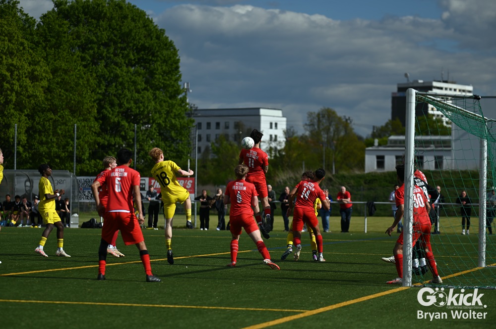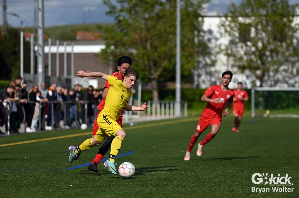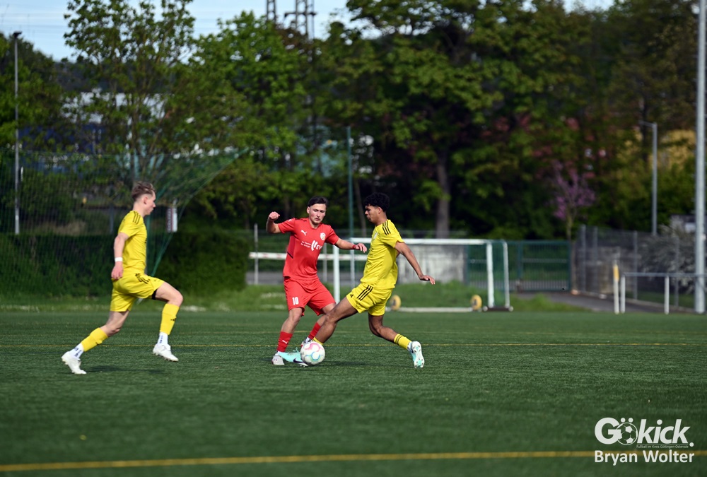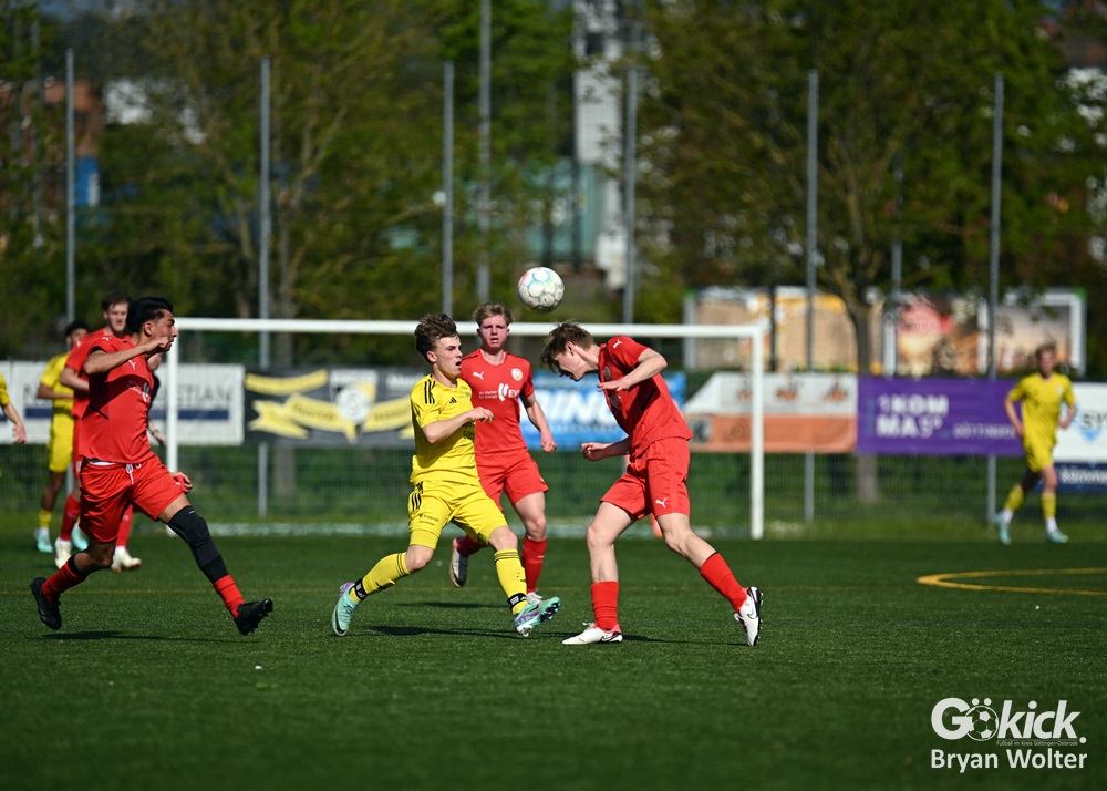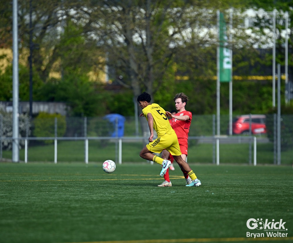 Die U19 des 1. SC Göttingen 05 hat dem Spitzenreiter der A-Jugend-Niedersachsenliga, dem VfV Borussia 06 Hildesheim, auch die zweite Saison-Niederlage zugefügt. Nach dem 6:4-Sieg des Teams von Trainer Jan Steiger im Hinspiel im März, gewannen die Göttinger auch das Rückspiel am vergangenen Samstag im heimischen Maschpark mit 2:1 (2:0). Durch diesen Sieg verkürzte das schwarz-gelbe Team den Rückstand zum Tabellenführer auf drei Punkte, hat aber auch ein Spiel mehr ausgetragen. In den restlichen sieben beziehungsweise acht Spielen der Saison könnte noch viel Spannung entstehen.