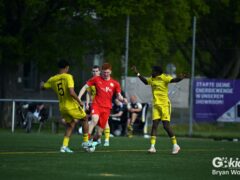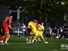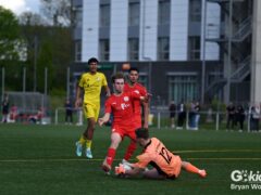 Die Göttinger begannen wie die oft zitierte Feuerwehr. Torjäger Tom Hobrecht erzielte bereit in der ersten Minute das 1:0 – sein 34. Saisontreffer! Nach 36 Minuten zeigte Schiedsrichter Marc Schramm auf den Elfmeterpunkt. Harat Hayrapetyan verwandelte sicher zum 2:0. Damit ging es in die Halbzeitpause.