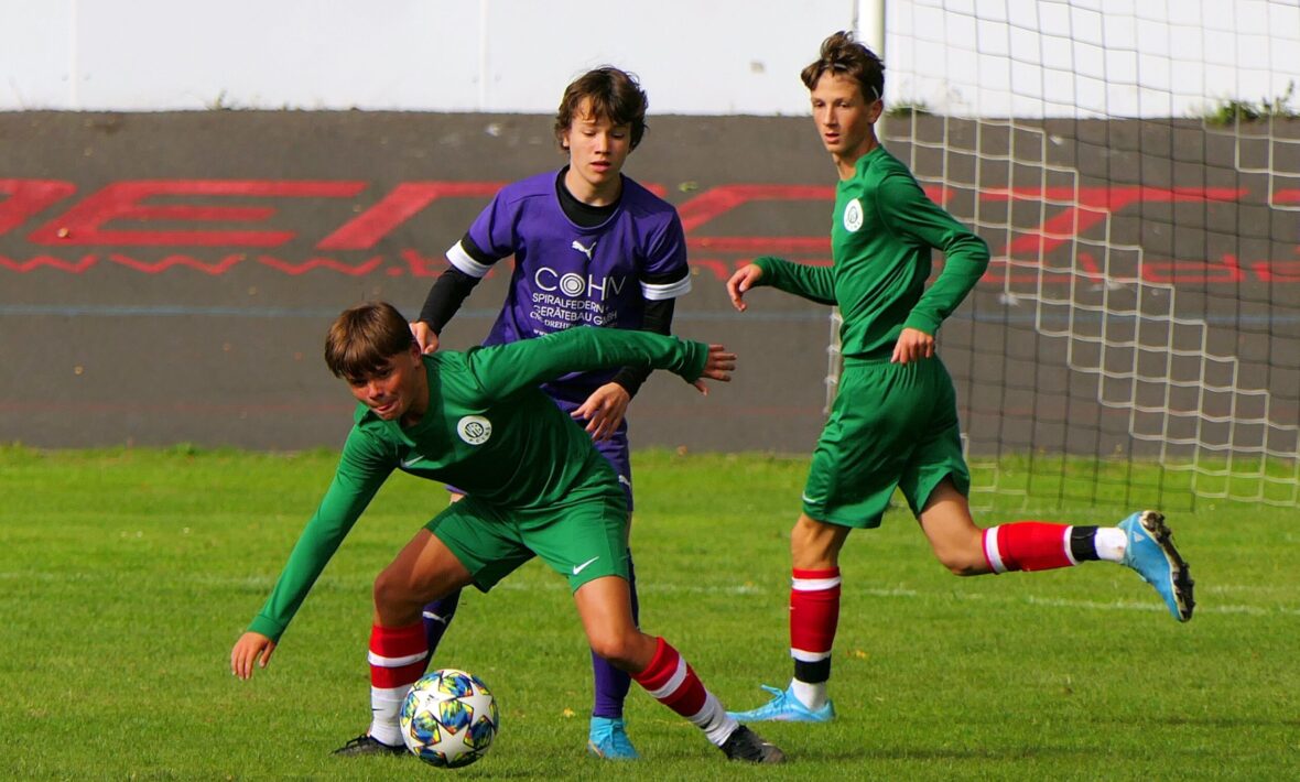 Trainer Lennard Evers war vor der Partie aufgrund des Fehlens von vier Stammkräften sich der Stärke seines Teams nicht ganz bewusst. Das sollte sich aber im Verlaufe des Spiels ändern. Nach 12 Minuten traf Younes Gabriel Mabrouk zur Führung der Lila-Weißen. Nur fünf Minuten später erhöhte Luis Christian Gräve auf 2:0 für die Gastgeber. Weiter Chancen ließen die Spieler des JFV 37 liegen. Mit der verdienten 2:0-Führung wurden die Seiten gewechselt.