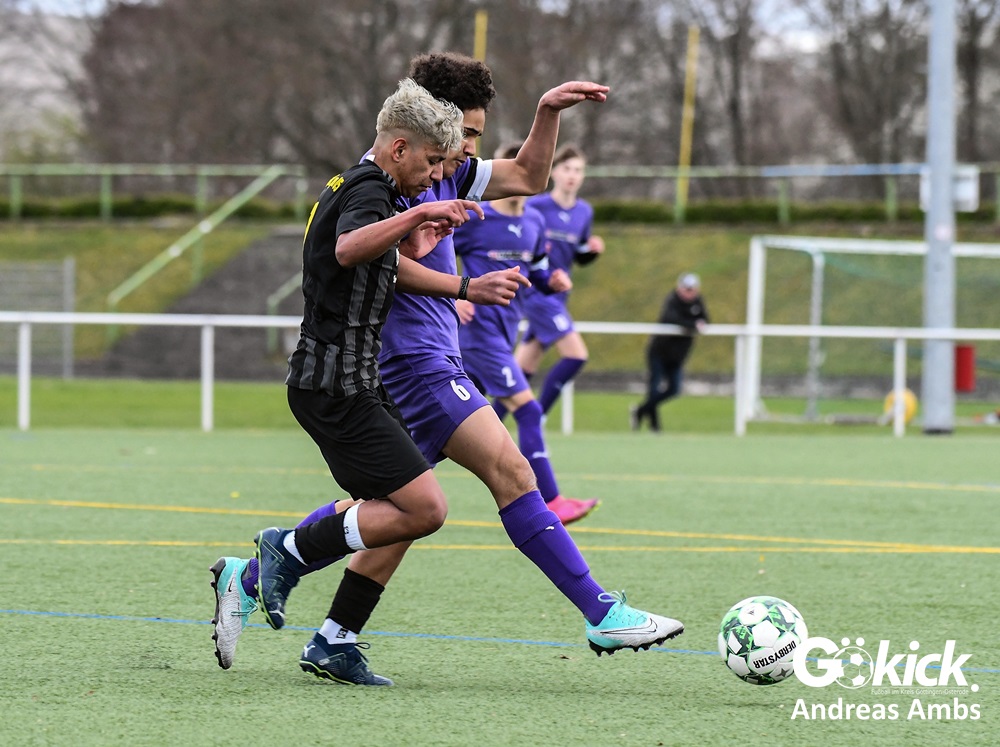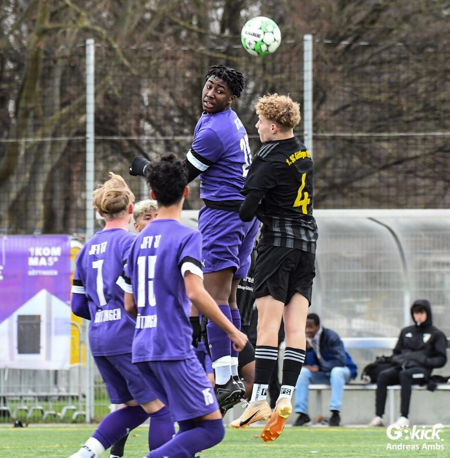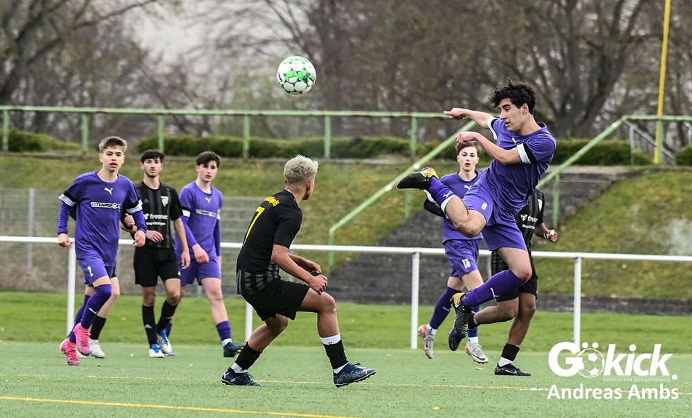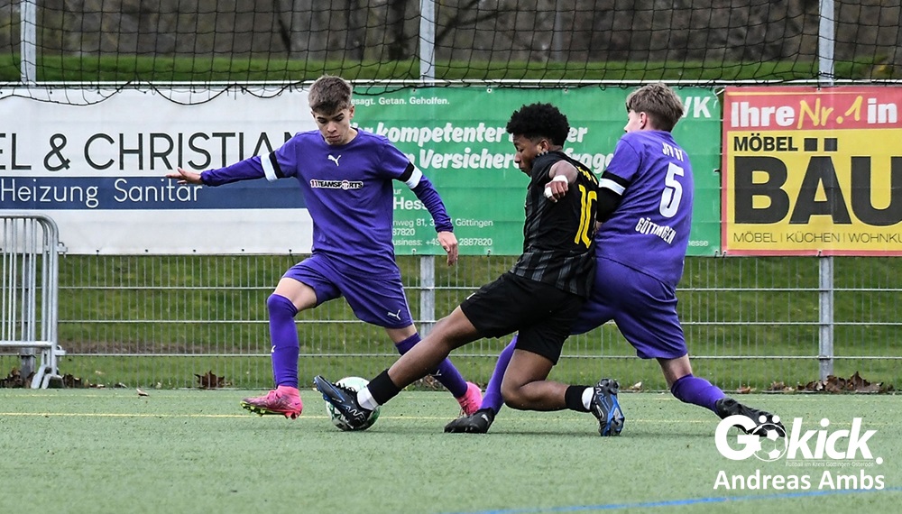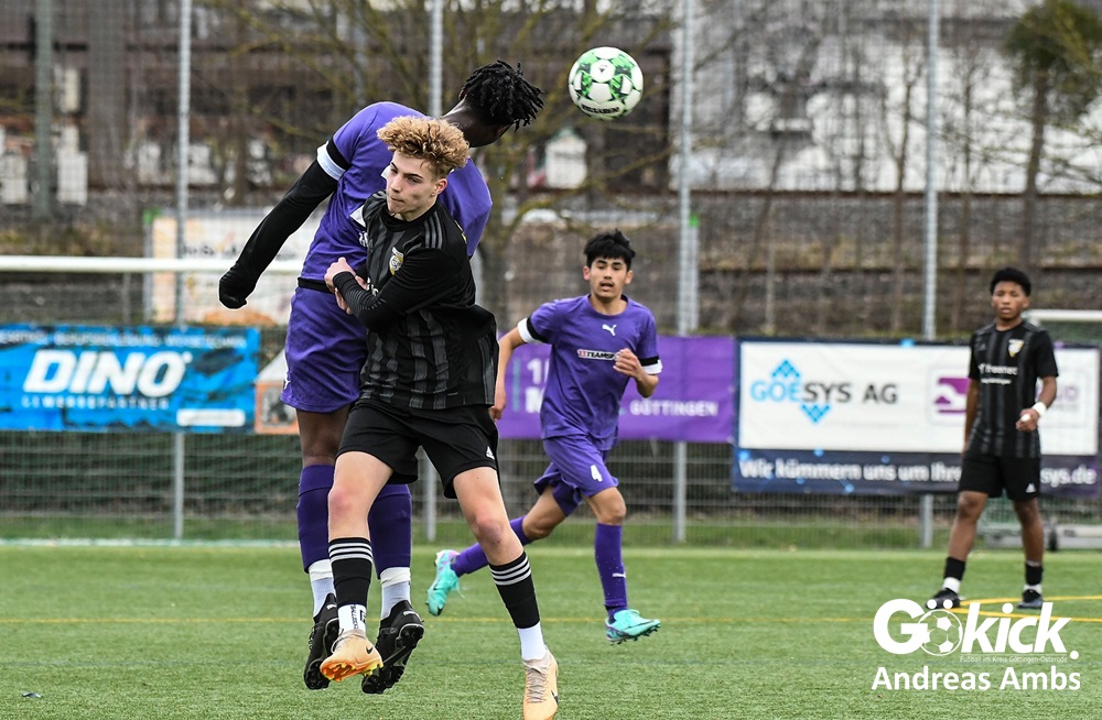 Im Göttinger Derby in der B-Jugend-Bezirksliga empfing am vergangenen Samstag auf dem Kunstrasenplatz des Göttinger Maschparks die U16 des 1. SC Göttingen 05 den Stadtrivalen aus der Göttinger Südstadt, die U16 des JFV 37 Göttingen. Nach 80 abwechslungsreichen Minuten siegte der Gast am Ende verdient mit 4:2 (2:1) und wahrt als Bezirksliga-Zweiter mit drei Punkten Rückstand auf Tabellenführer JSG Seesen die Chance auf die Meisterschaft. Die Hausherren bleiben Fünfter der Spielklasse.