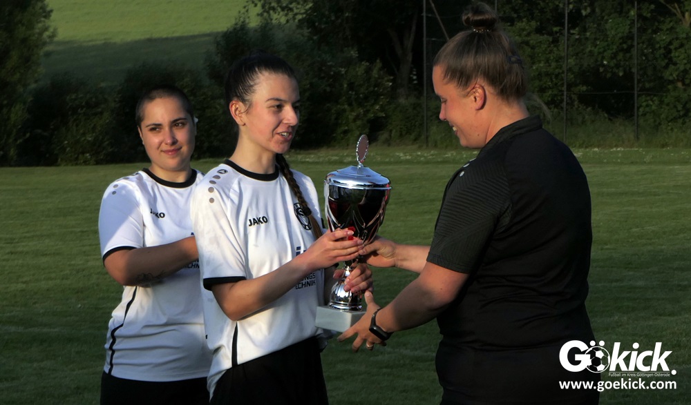 Der erste Kreispokalsieger der zu Ende gehenden Spielzeit steht fest. Es ist der SV Förste. Die Frauen-Mannschaft des Vereins vom Harzrand gewann das Finale des Kleinfeld-Pokals am vergangenen Freitag auf dem Sportplatz in Ellierode gegen den VfB Uslar mit 7:4 (3:3, 0:3) nach Neunmeterschießen. Nach der Meisterschaft in der 1. Kreisklasse mit maximaler Ausbeute von 12 Siegen aus 12 Spielen kann sich der SV Förste damit über das Double freuen. Herzlichen Glückwunsch!
