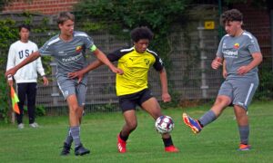 In der B-Jugend-Kreisliga Süd empfing die SVG Göttingen am vergangenen Samstag auf dem Kunstrasenplatz des KRÜGERPARKs am Sandweg die JSG Rosdorf/Leine-Friedland. Beide Teams lagen vor der Partie nur einem Punkt auseinander. Ein Spiel auf Augenhöhe sahen die Zuschauer dennoch nicht. Der Gastgeber von Trainer Stefanos Paroglou siegte nach 80 Spielminuten klar und deutlich mit 4:0 (1:0). Das schwarz-weiße Team klettert mit zehn Punkten aus fünf Spielen auf Platz drei der Spielklasse. Der Gast von Trainerin Marie-Christin Mohr bleibt mit sechs Punkten Fünfter.
