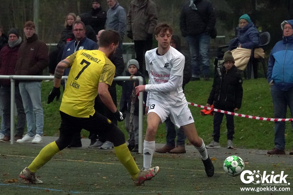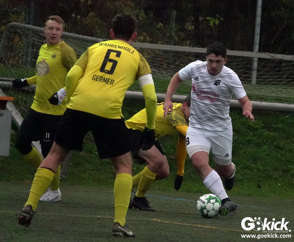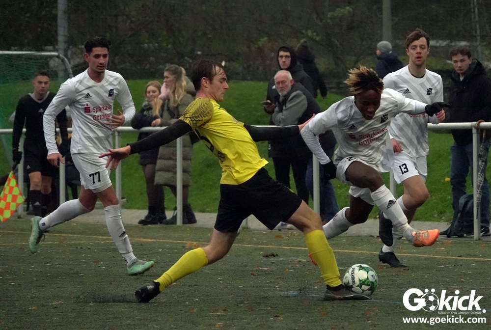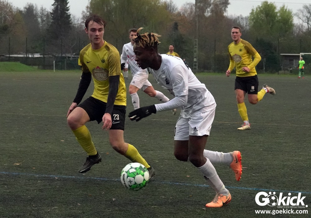 Der starke Dilsad Kaplan eröffnete nach 18 Minuten den Torreigen. Nur vier Minuten später legte Abwehrchef Andre Weide per Kopf nach einem Eckball das 2:0 nach. Das gab vor 180 Zuschauern bei nasskaltem Spätherbstwetter Selbstvertrauen. Kurz vor der Pause sorgte ein Doppelschlag durch den zweiten Treffer von Dilsad Kaplan (42.) und durch den neuen Publikumsliebling Dennis Forkpah für die Vorentscheidung in dieser Partie. Mit dem verdienten 4:0-Vorsprung wurden am Sandweg die Seiten gewechselt.