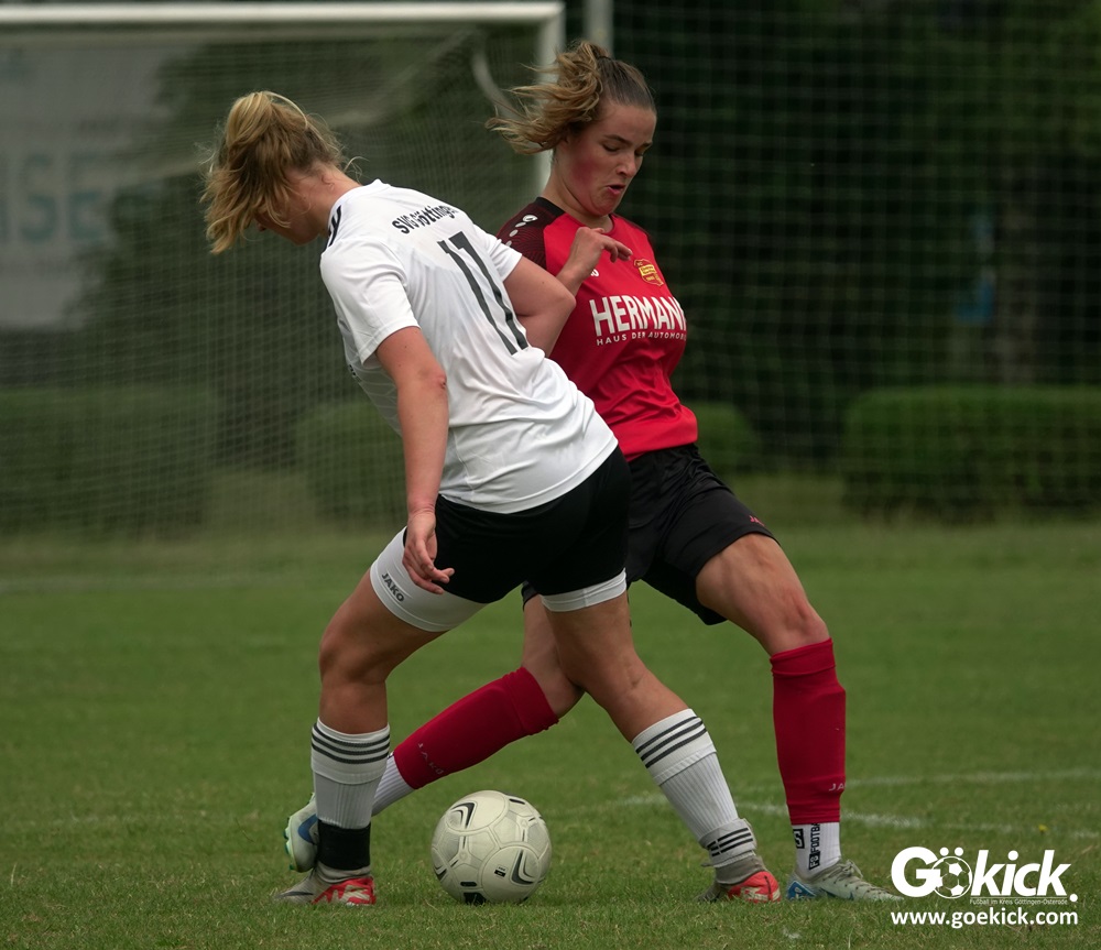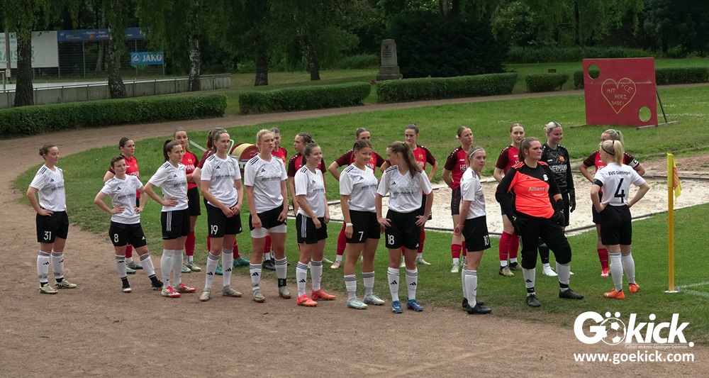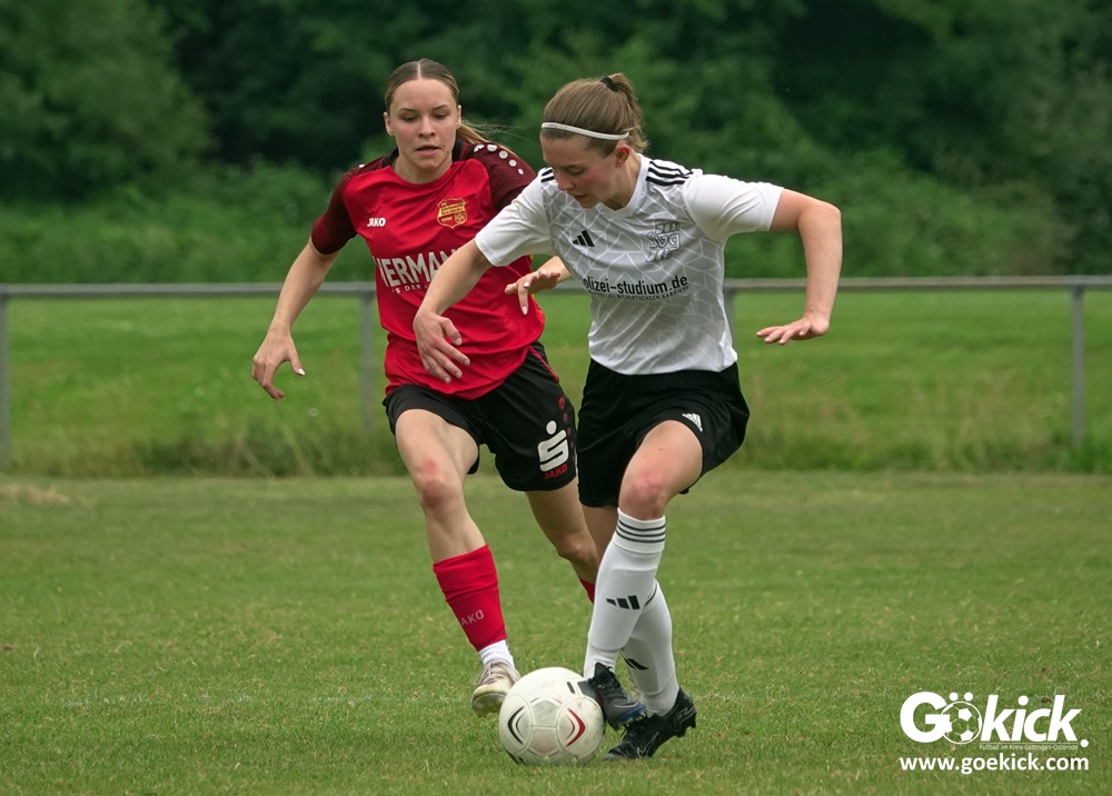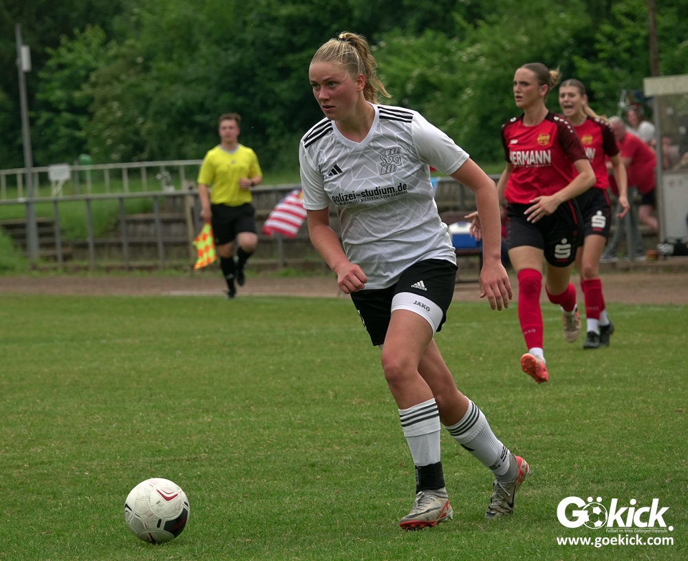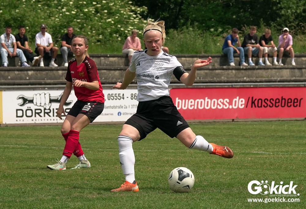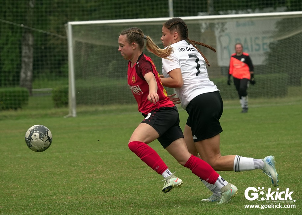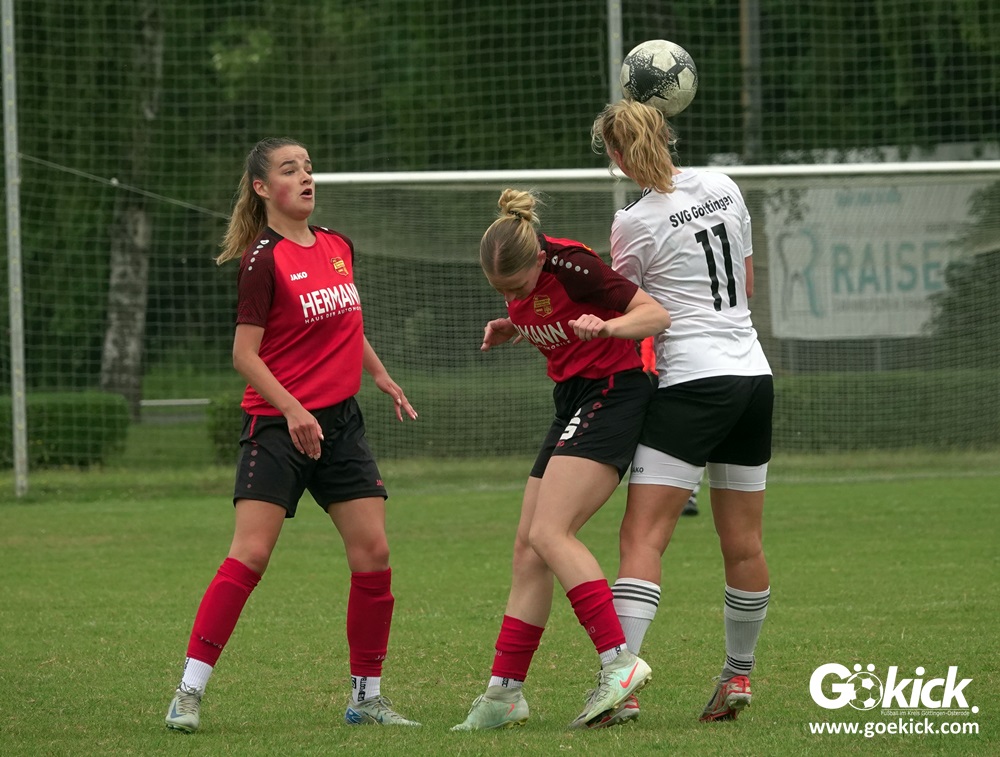 Die SVG war von Anbeginn die bessere Mannschaft. Die Gastgeberinnen liefen meist hinterher. Noch mehr Aufwind für die Gäste brachte das 1:0 durch Elisabeth Albrecht. Ihr Freistoß aus 25 Metern rutschte der Eintracht-Schlussfrau Lea Tiedke bei ihrem Versuch einer Fußabwehr durch die Sohle (Video). Der Treffer brachte noch mehr Sicherheit in die Aktionen der Gäste. Nach 18 Minuten setzte sich Nellie Emabulele geschickt im Zweikampf durch. Ihre genaue Ablage schoss Jasmin Kochinke zum 2:0 in die Maschen der Hausherrinnen. Auch das 3:0 erzielte die großgewachsene Stürmerin. Nach einem Eckball köpfte sie fast ungehindert ein. Kurz vor der Halbzeitpause traf Torschützenkönigin Luisa Grosch zum 4:0 (45.). Damit ging es in die Halbzeitpause.