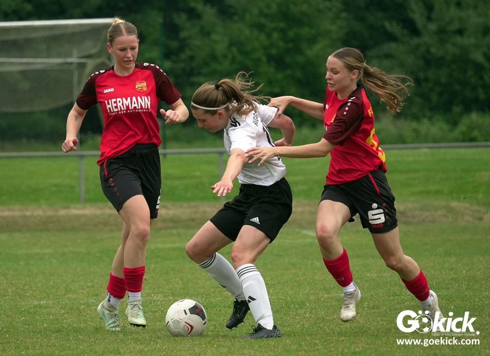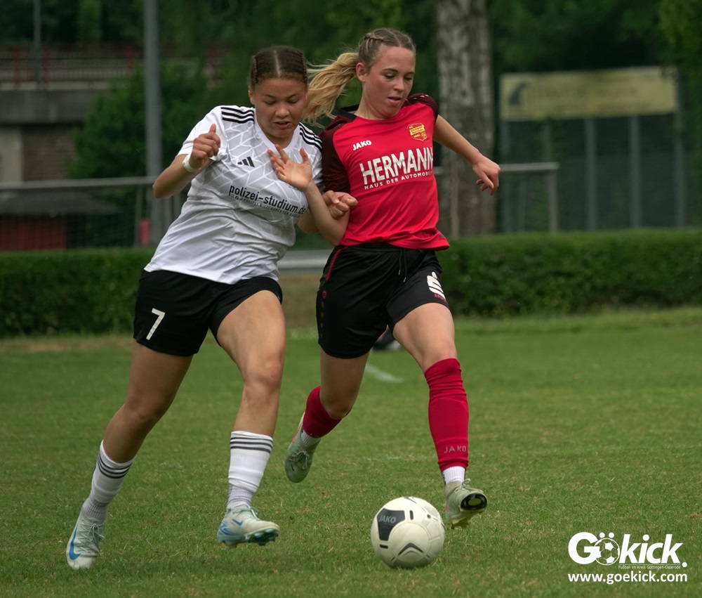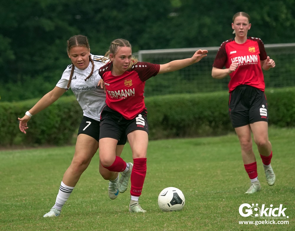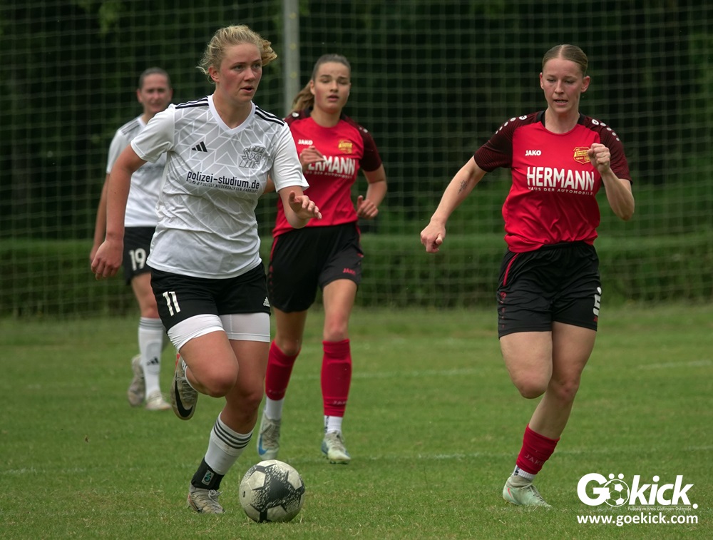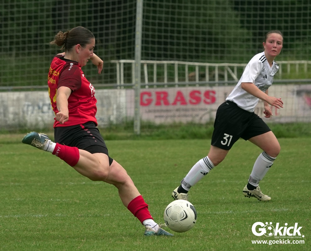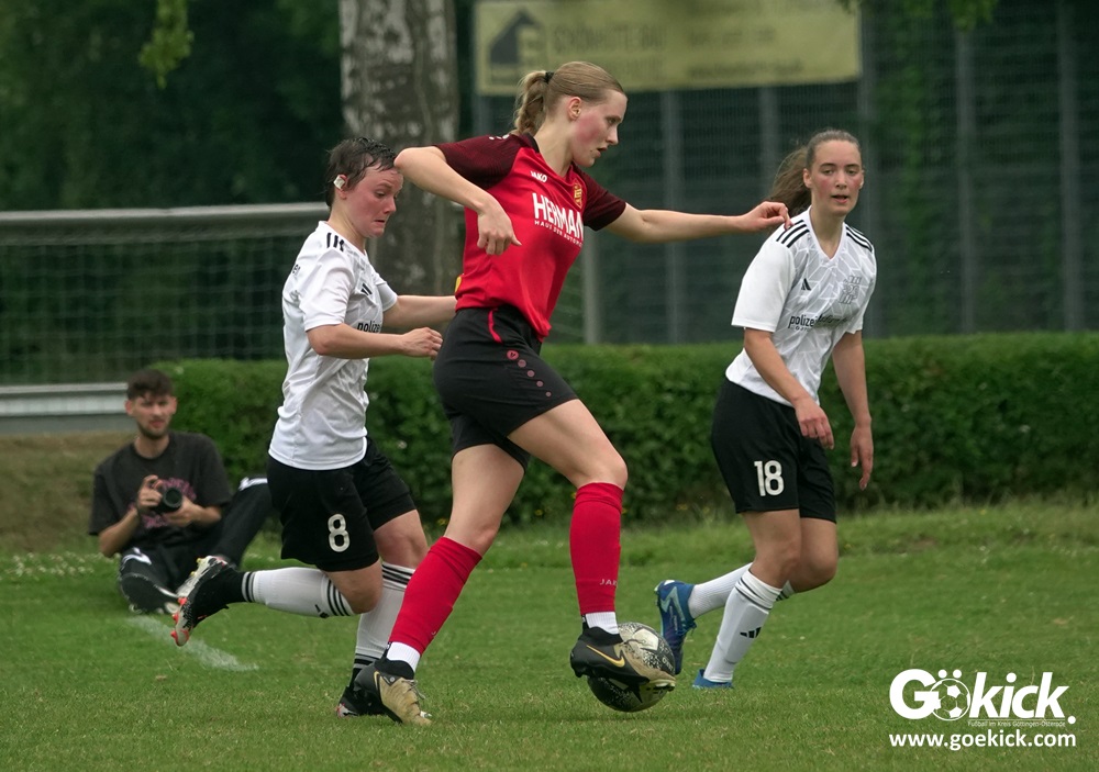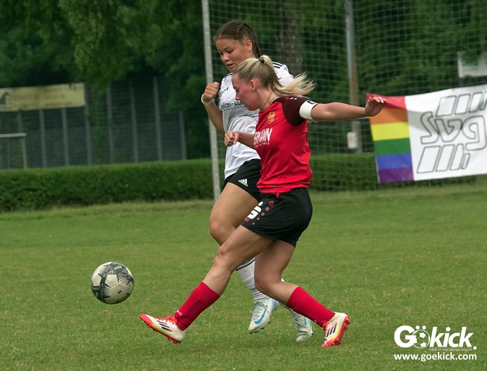 Die SVG war von Anbeginn die bessere Mannschaft. Die Gastgeberinnen liefen meist hinterher. Noch mehr Aufwind für die Gäste brachte das 1:0 durch Elisabeth Albrecht. Ihr Freistoß aus 25 Metern rutschte der Eintracht-Schlussfrau Lea Tiedke bei ihrem Versuch einer Fußabwehr durch die Sohle (Video). Der Treffer brachte noch mehr Sicherheit in die Aktionen der Gäste. Nach 18 Minuten setzte sich Nellie Emabulele geschickt im Zweikampf durch. Ihre genaue Ablage schoss Jasmin Kochinke zum 2:0 in die Maschen der Hausherrinnen. Auch das 3:0 erzielte die großgewachsene Stürmerin. Nach einem Eckball köpfte sie fast ungehindert ein. Kurz vor der Halbzeitpause traf Torschützenkönigin Luisa Grosch zum 4:0 (45.). Damit ging es in die Halbzeitpause.