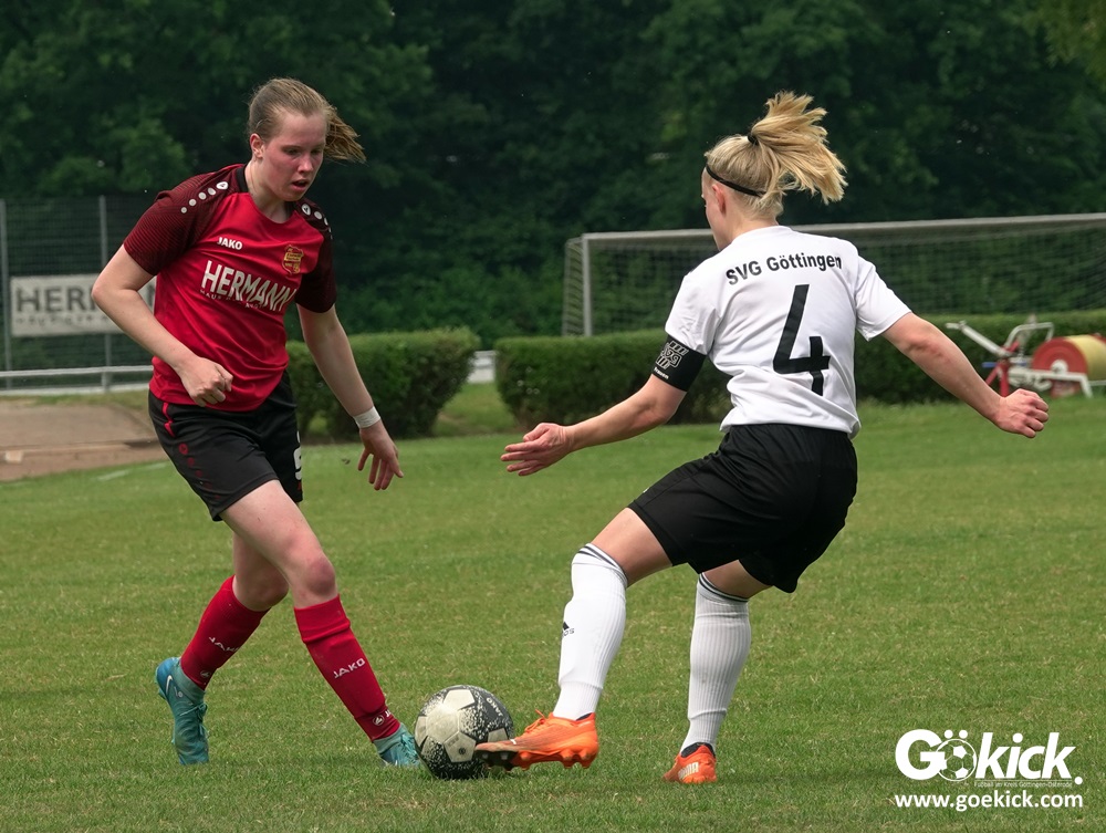Etwa 300 Zuschauer hatte der Frauen-Landesliga-Kracher am vergangenen Sonntag nach Northeim gelockt. Dort empfing im Spitzenspiel der Tabellenzweite FC Eintracht Northeim den Spitzenreiter SVG Göttingen. Die Ausgangslage am vorletzten Spieltag war klar: Nur mit einem deutlichen Sieg hätte sich der Gastgeber eine, wenn auch kleine Chance auf die Meisterschaft wahren können. Mit einem eigenen Sieg hätte die SVG den vorzeitigen Titel in dieser Spielklasse erringen können. Am Ende brachte die Partie Gewissheit: Die SVG siegte deutlich mit 6:2 (4:0) und darf im kommenden Jahr als Oberligist antreten.