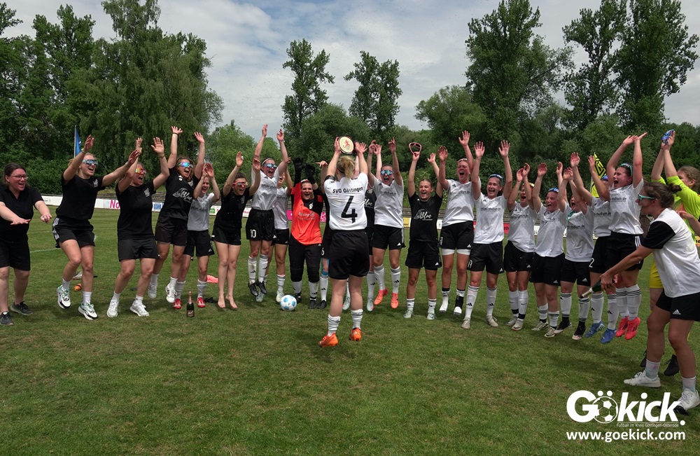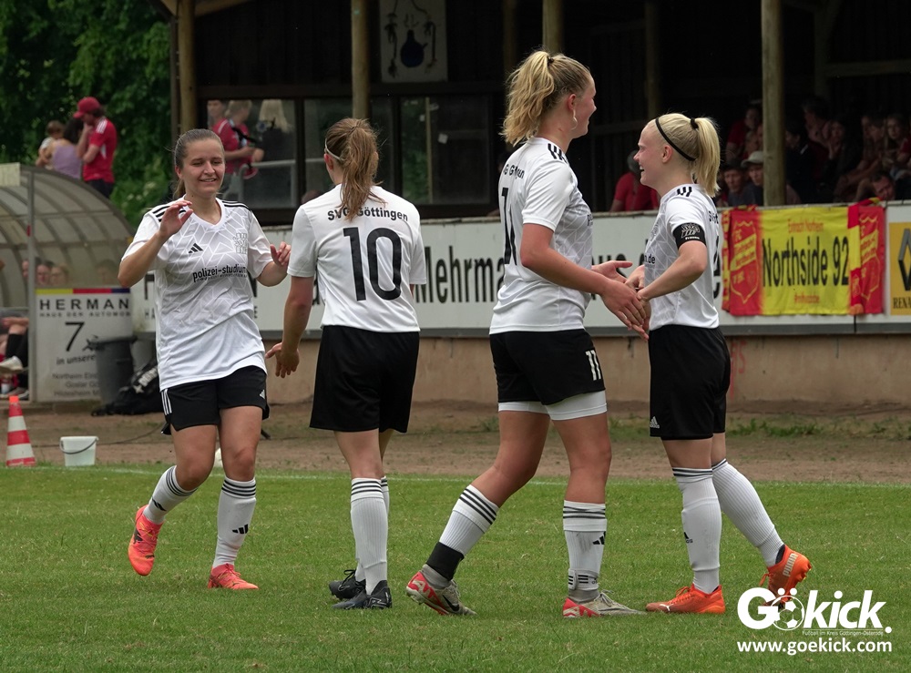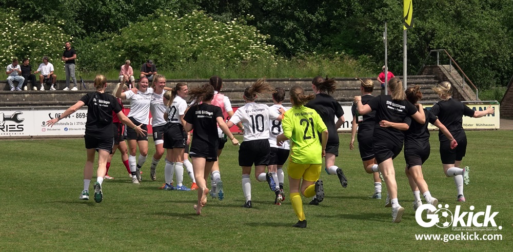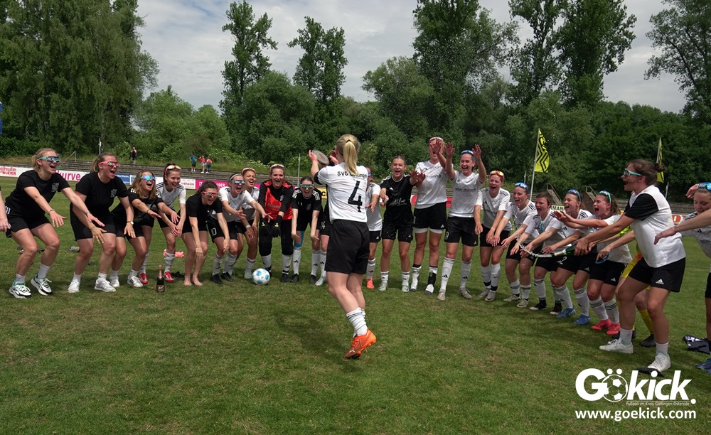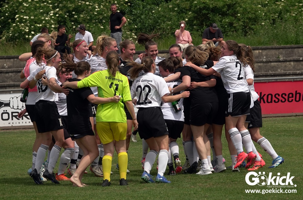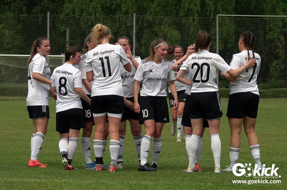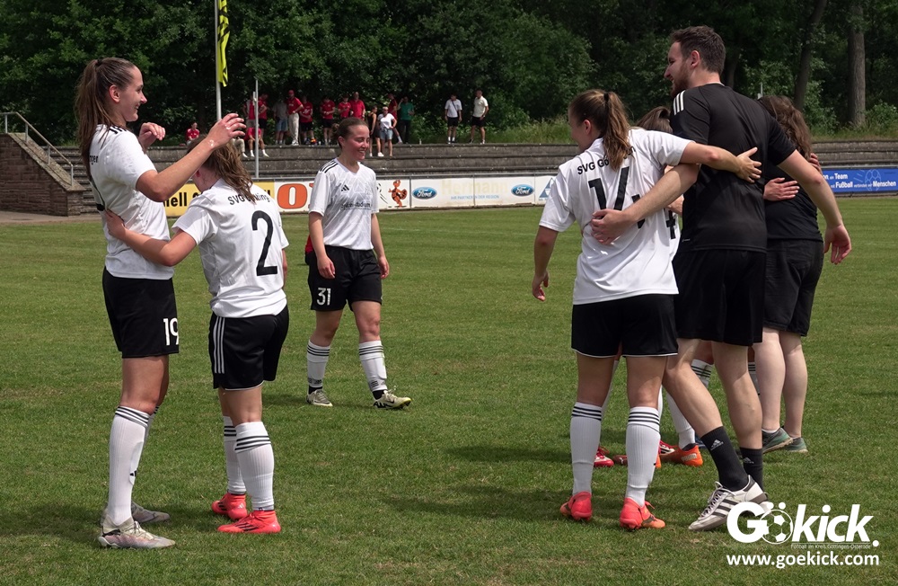 Nach Wiederanpfiff durch Schiedsrichter Paul Rüppel war es erneut Luisa Grosch, die mit einer geschickt getretenen Bogenlampe in der 54. Spielminute auf 5:0 erhöhte. Bis zur 83. Spielminute verwaltete die SVG diese Partie nach Belieben. Dann traf Nike Dankert mit einem traumhaft ausgeführten Freistoß zum Anschlusstreffer von 1:5 für die Eintracht. Doch Luisa Grosch stellte mit ihrem dritten Tagestreffer in der 87. Spielminute erneut den Fünf-Tore-Vorsprung. Es war ihr 29. Saisontreffer. Den Abschluss dieser einseitigen Spitzenpartie stellte Ella Pfister in der 88. Spielminute mit dem zweiten Treffer für den Gastgeber zum 2:6-Endstand. Nach dem Abpfiff kannte der Jubel der Gäste keine Grenzen. Das große Ziel, der Oberliga-Aufstieg, war erreicht. Nach der Ehrung durch den Verbandsvertreter Guido Sievert begann die Siegesfeier, die – so wird kolportiert – bei in die Morgenstunden angedauert hat.