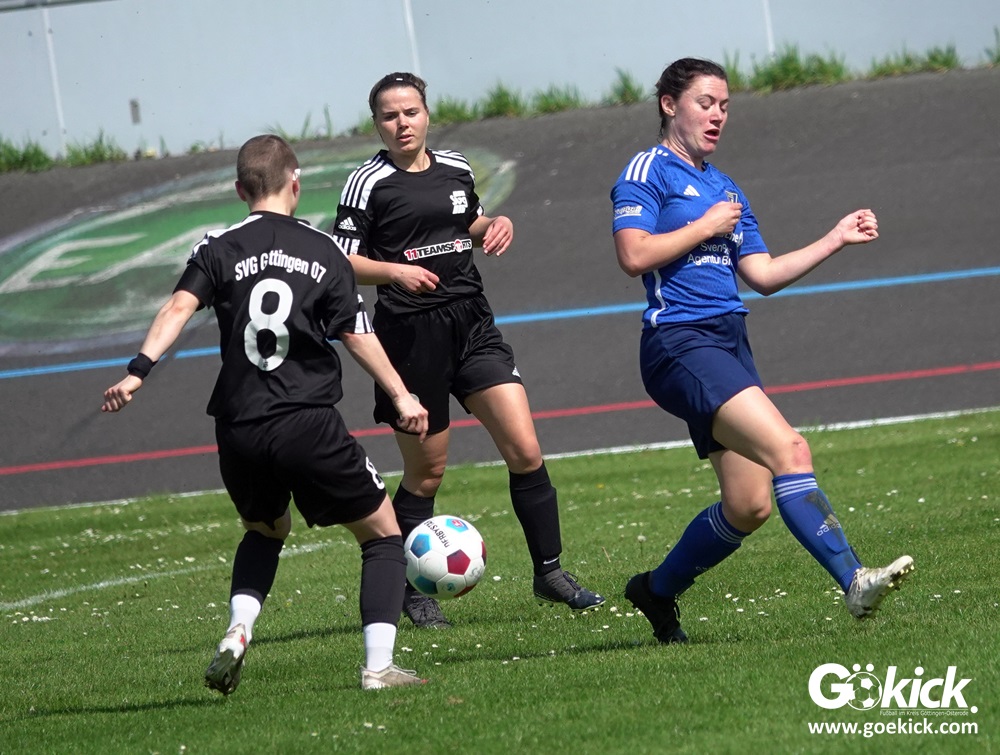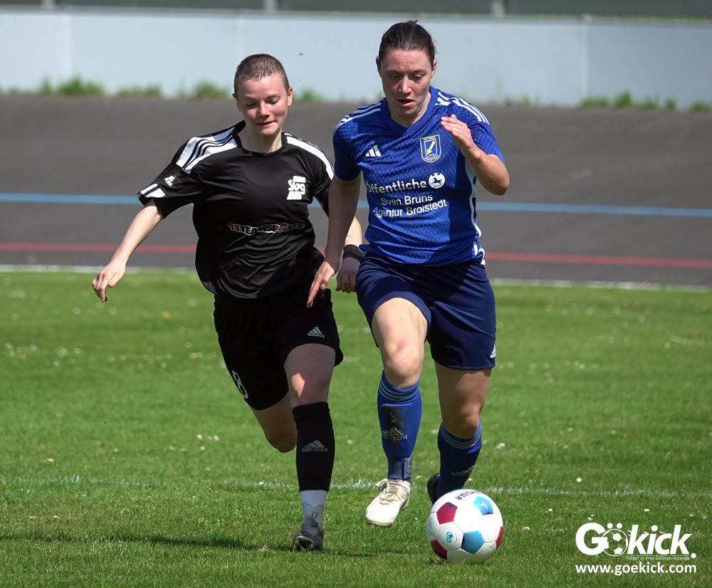 Hielt in der ersten Halbzeit SVG-Torfrau Katharina Vötter ihr Team mit drei Glanzparaden noch in der Partie, war das Sandweg-Team im zweiten Durchgang die bessere Mannschaft. Auch ohne Torjägerin Jasmin Kochinke dominierte die SVG den Tabellenführer der Landesliga. Und in der 77. Spielminute belohnte sich die SVG für ihr Engagement: Nach präziser Flanke von Elisabeth Müller köpfte SVG-Urgestein Amelie Bruns zum 1:0 ein. Das Tor sollte ein Goldes bleiben.