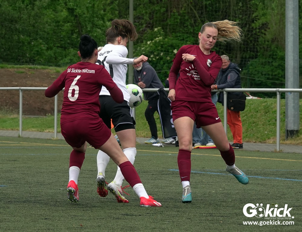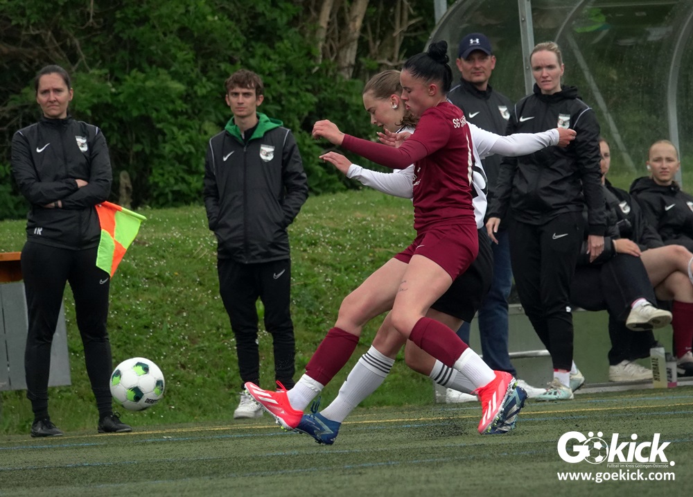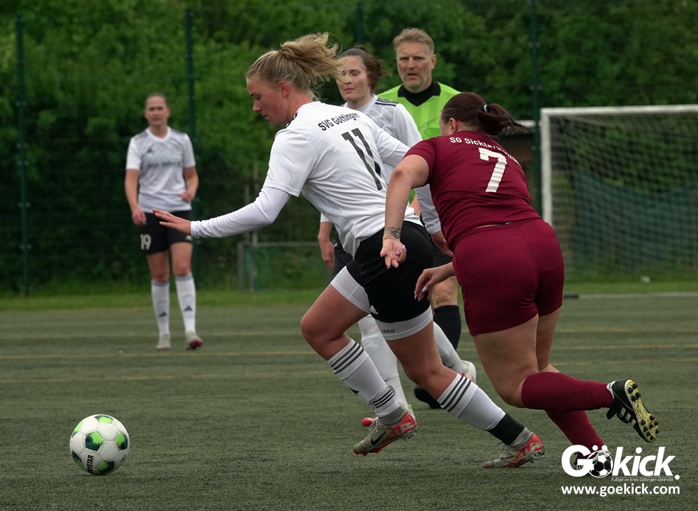 Jasmin Kochinke brachte die SVG nach 23 Minuten in Führung. Nur zwei Minuten später erhöhte Kapitänin Luisa Grosch auf 2:0. Mit ihrem 24. Saisontreffer war sie nach 32 Minuten erneut erfolgreich. Das 3:0 sorgte für Sicherheit beim Spitzenreiter, allerdings auch für Sorglosigkeit. Denn mit zwei Kontern trafen kurz vor dem Seitenwechsel Ines Baußmann (41.) und Finja Malin Bode (45) für die Gäste zum 3:2-Halbzeitstand. Der Gegner der SVG hatte in dieser Saison schon für einige Überraschungen gesorgt – beispielsweise mit dem 10:2-Sieg im Bezirkspokal gegen Northeim. Sollte auch der Spitzenreiter über die SG RSV/Sickte/Hötzum stolpern?