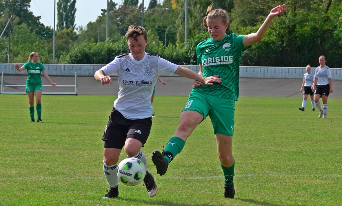 Die Gastgeberinnen bestimmten von Beginn an das Geschehen. Nellie Enabulele hatte in der 21. Minute die große Chance zur Führung, scheiterte aber frei vor Gästetorhüterin Jolien Auracher. Kurz vor der Pause prüfte Emma Hübner die Hildesheimerin mit einem Flachschuss, erneut blieb Auracher Siegerin. Trotz klarer Spielanteile blieb es beim 0:0.