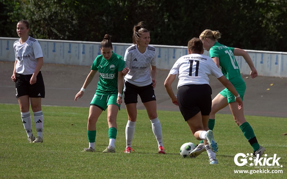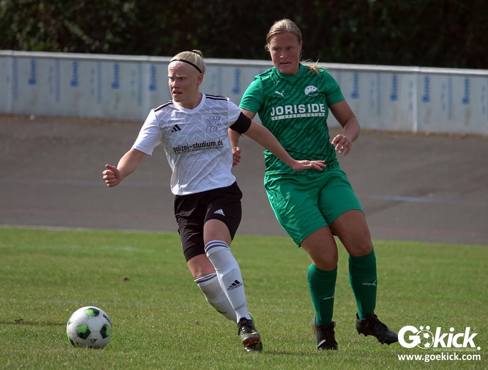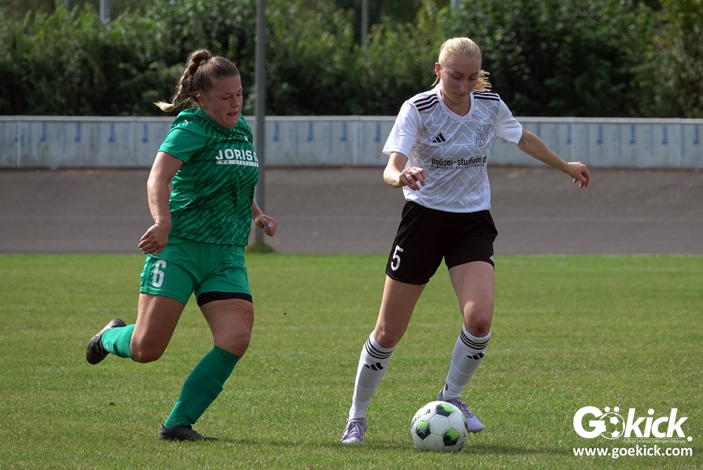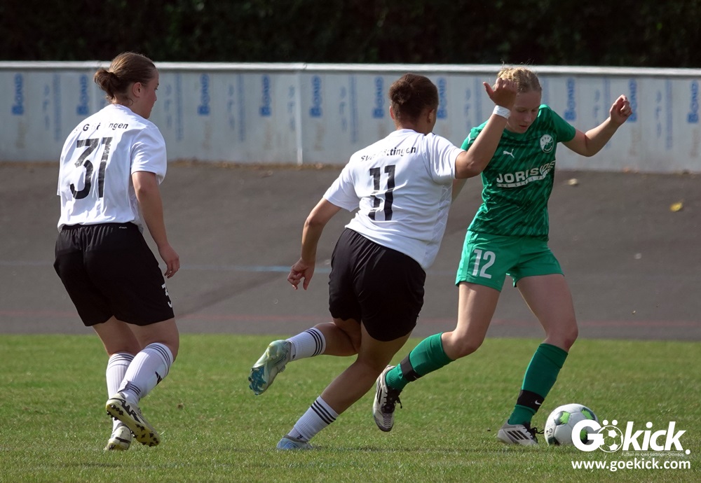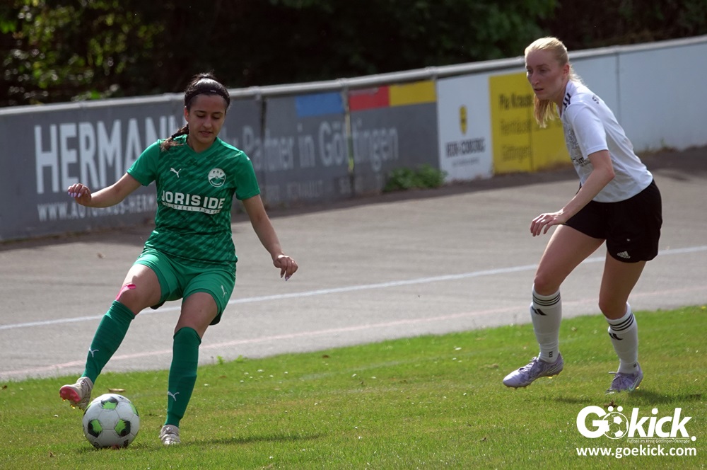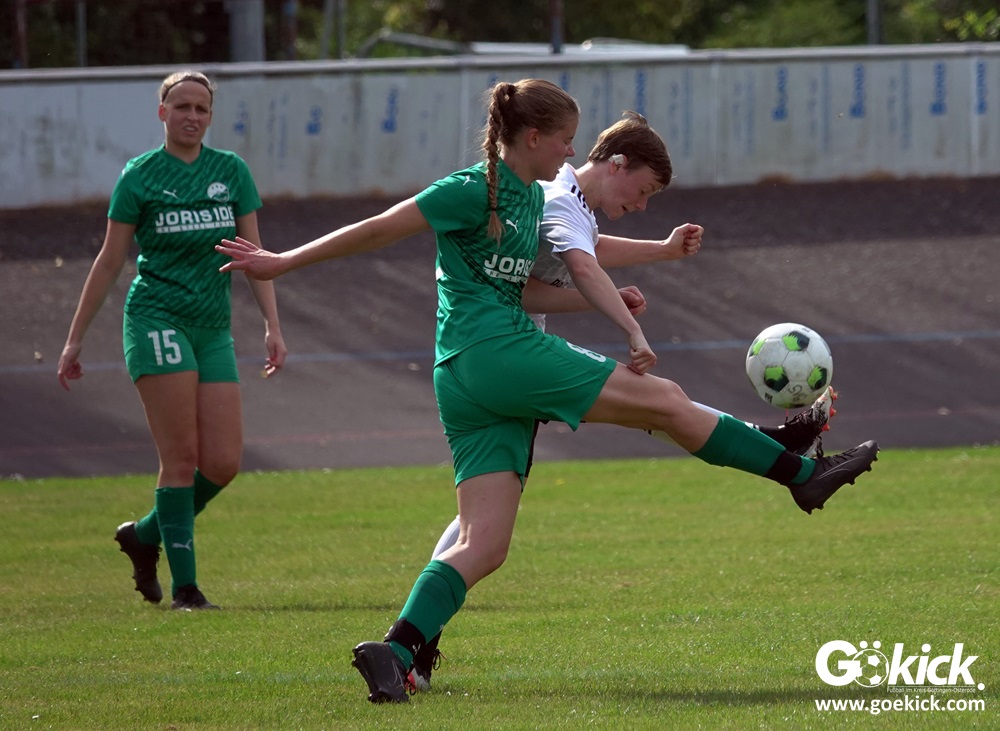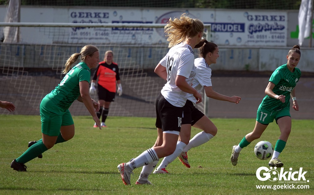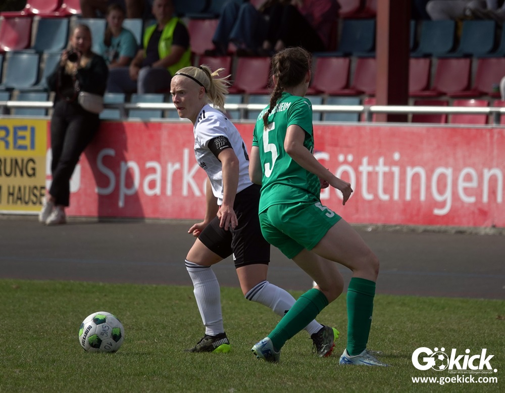 Die Gastgeberinnen bestimmten von Beginn an das Geschehen. Nellie Enabulele hatte in der 21. Minute die große Chance zur Führung, scheiterte aber frei vor Gästetorhüterin Jolien Auracher. Kurz vor der Pause prüfte Emma Hübner die Hildesheimerin mit einem Flachschuss, erneut blieb Auracher Siegerin. Trotz klarer Spielanteile blieb es beim 0:0.