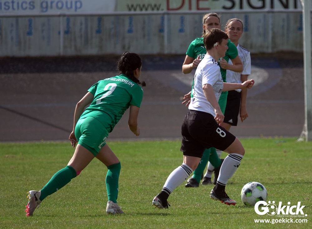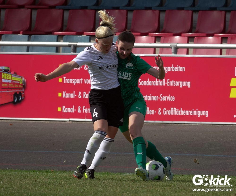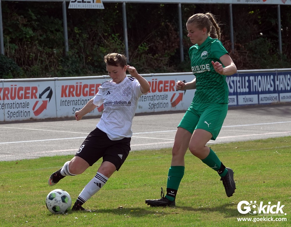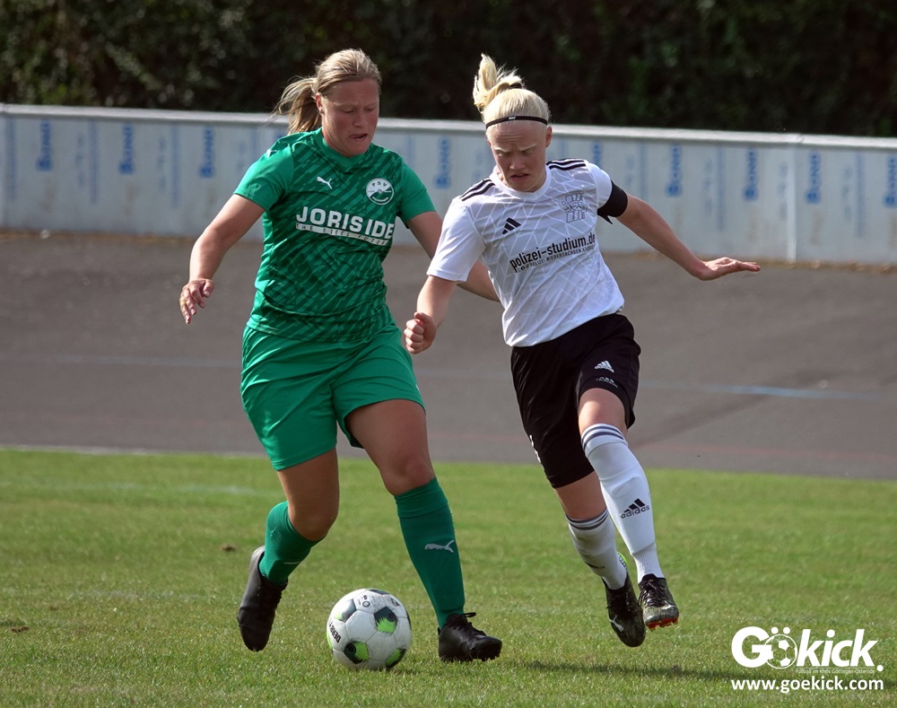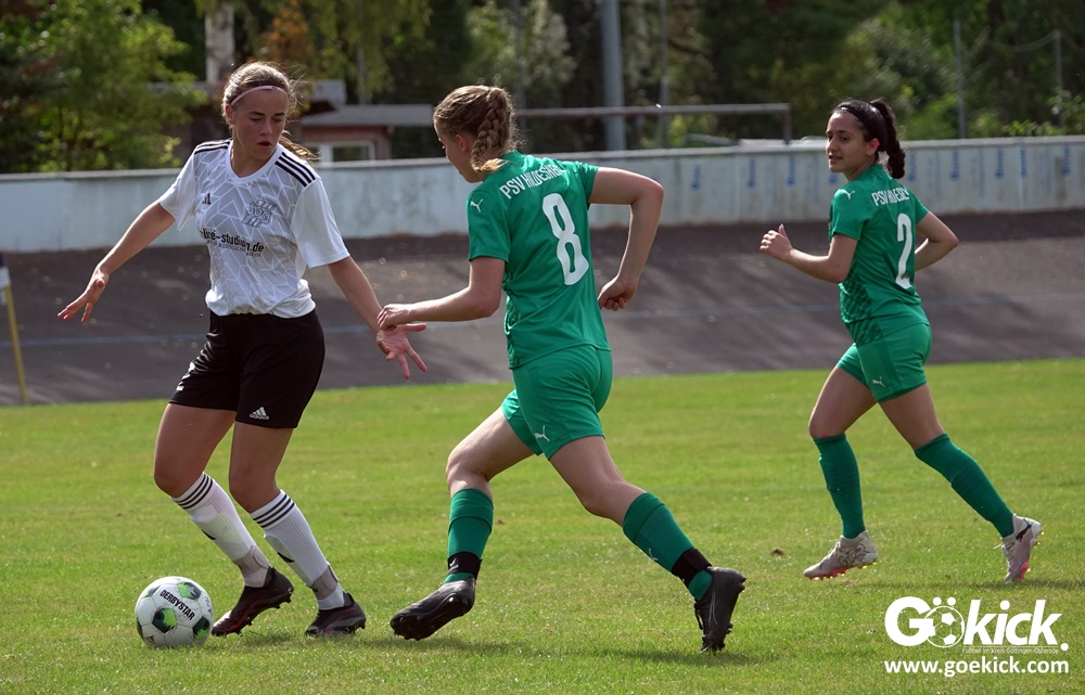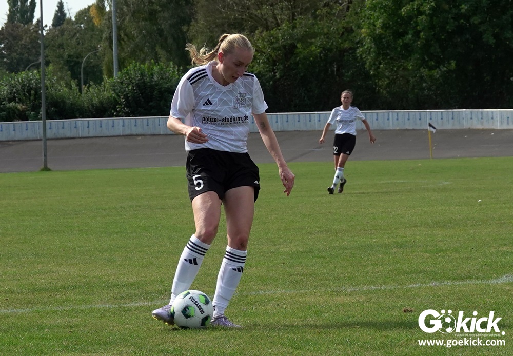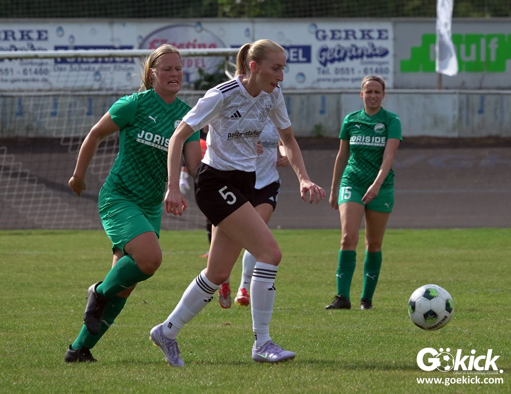 Die Gastgeberinnen bestimmten von Beginn an das Geschehen. Nellie Enabulele hatte in der 21. Minute die große Chance zur Führung, scheiterte aber frei vor Gästetorhüterin Jolien Auracher. Kurz vor der Pause prüfte Emma Hübner die Hildesheimerin mit einem Flachschuss, erneut blieb Auracher Siegerin. Trotz klarer Spielanteile blieb es beim 0:0.