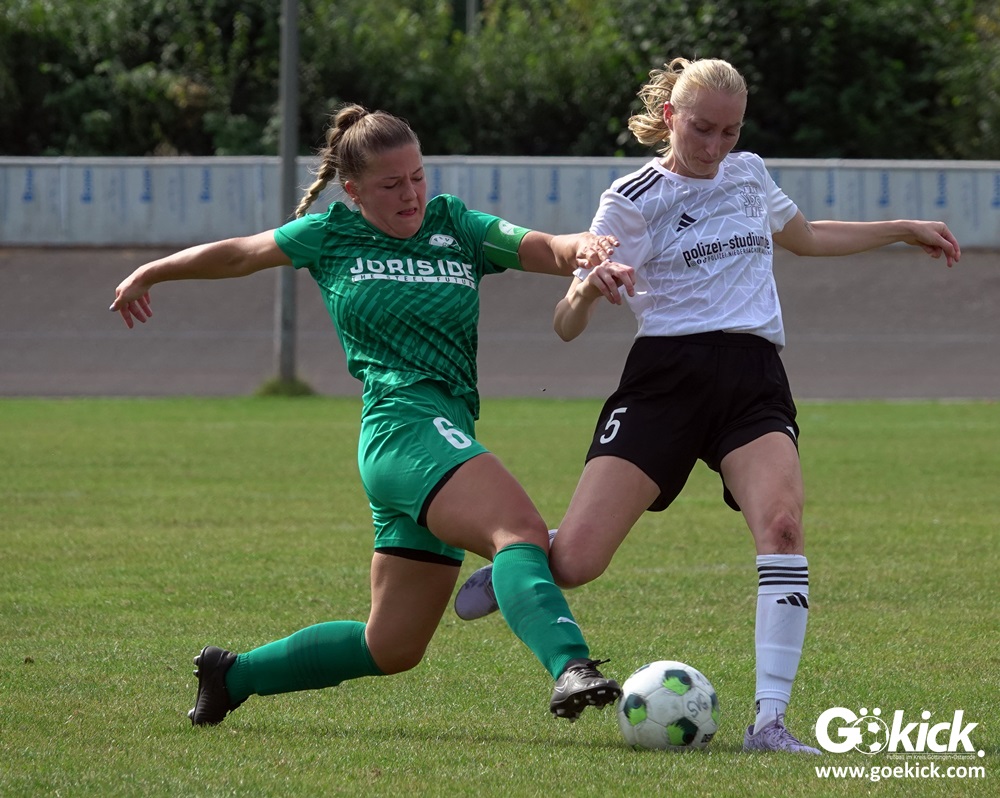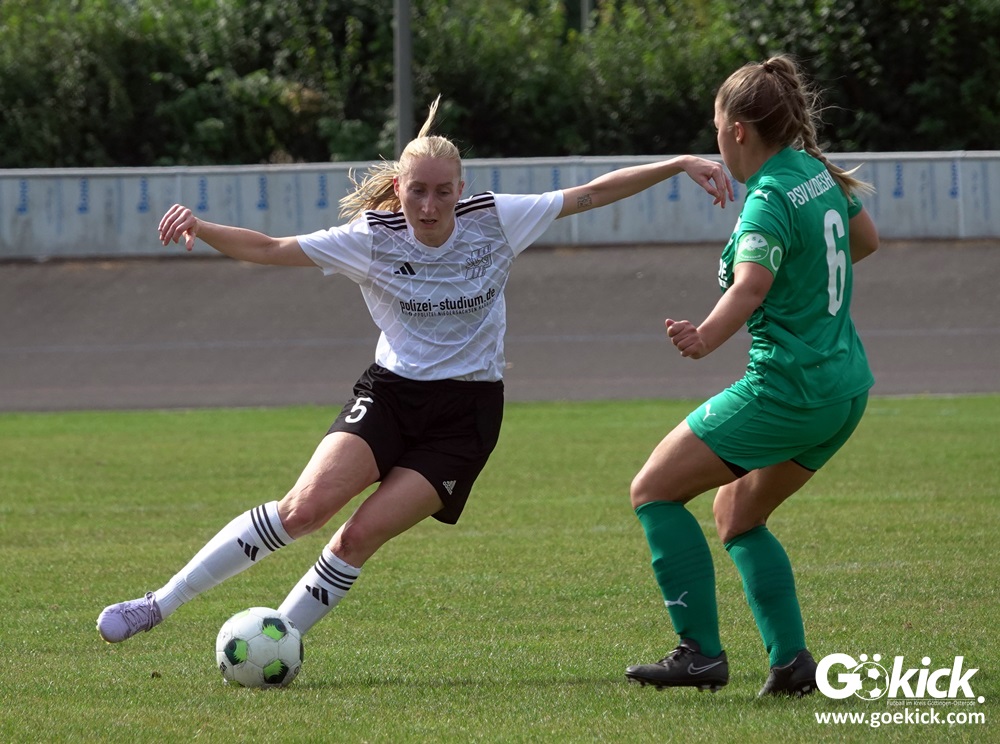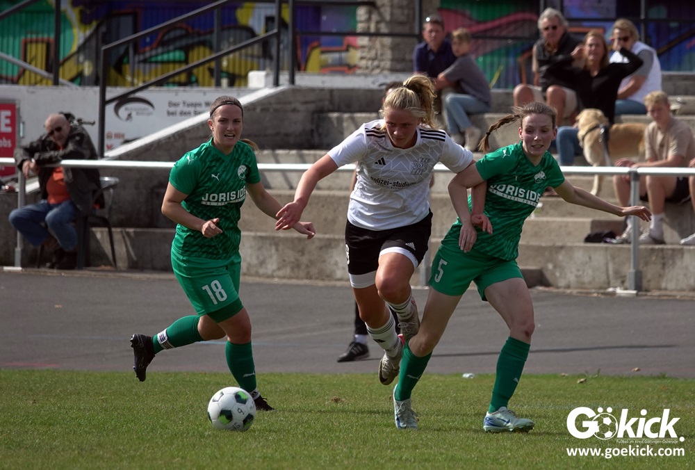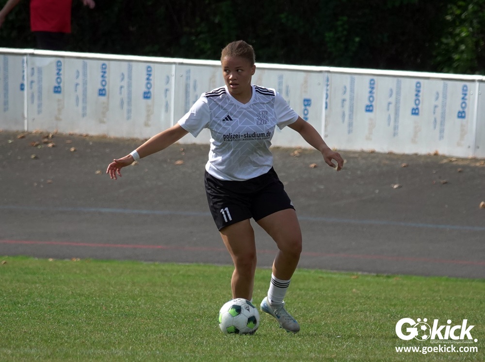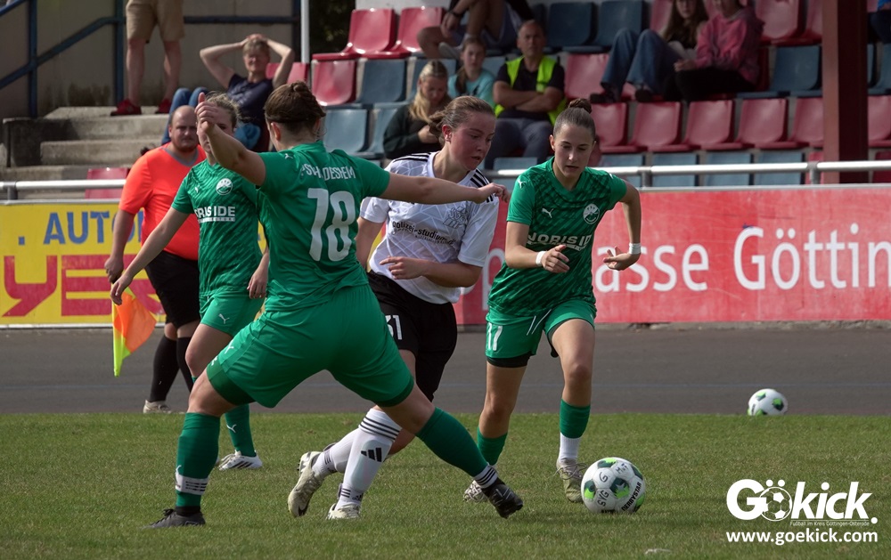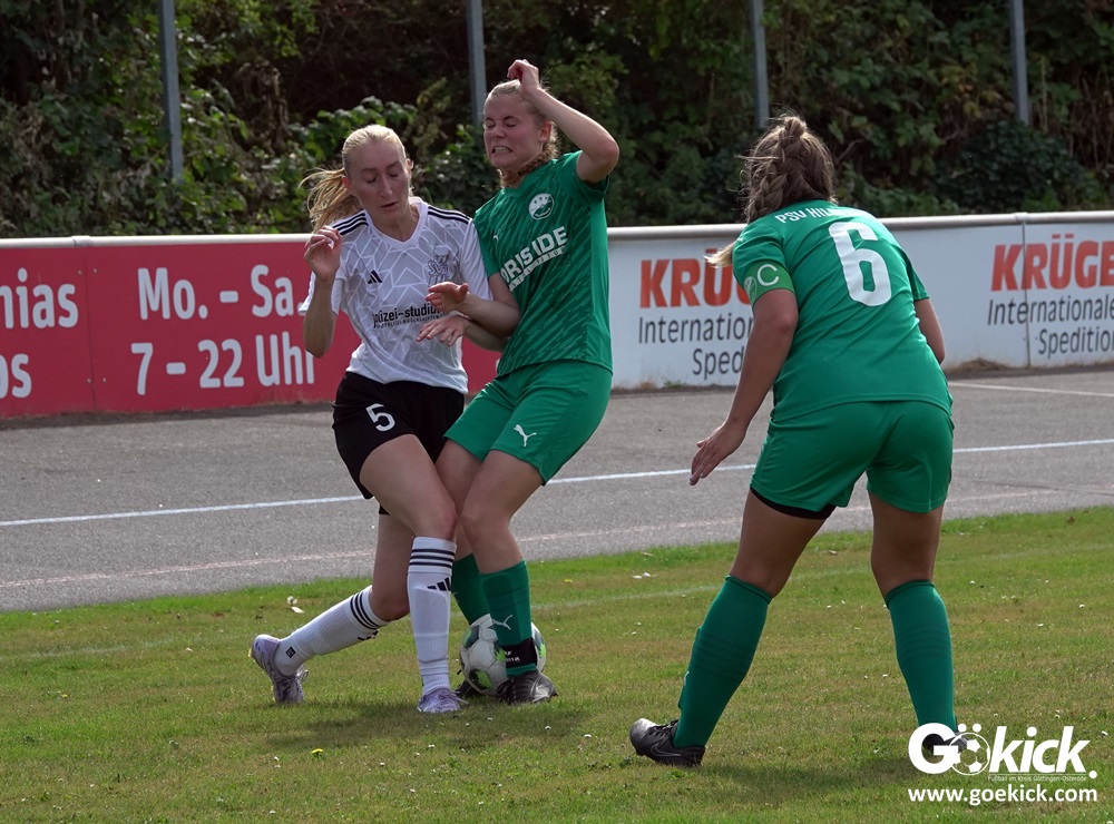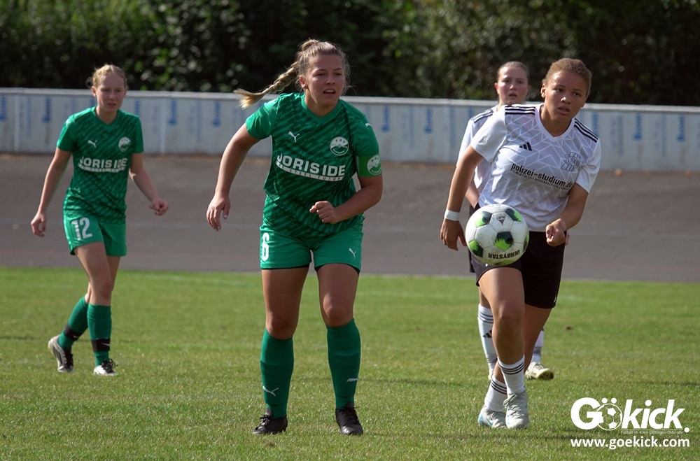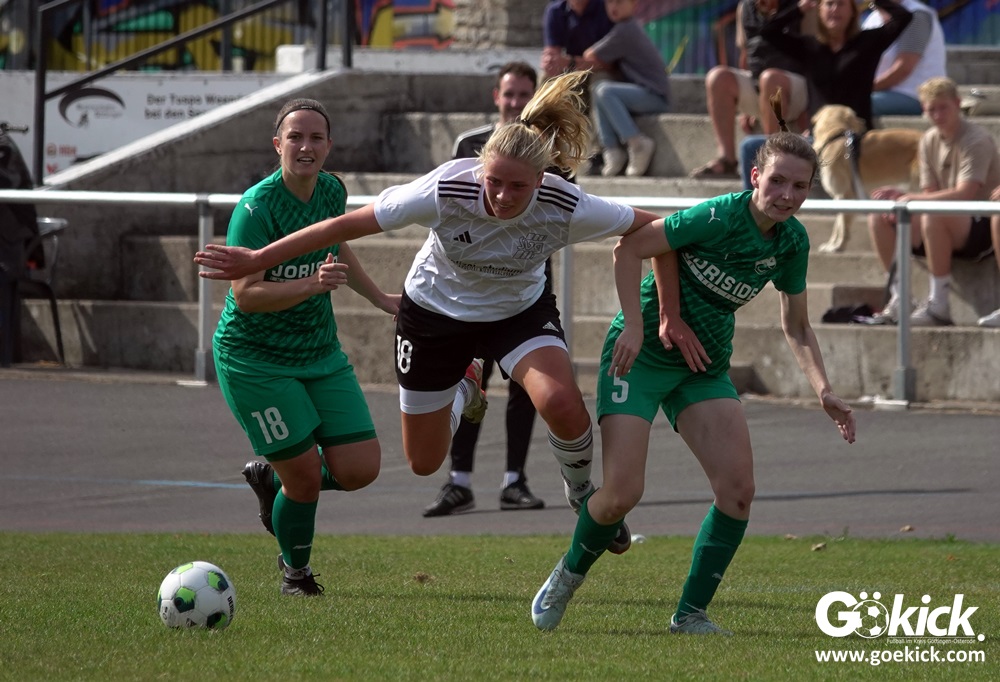 Die Gastgeberinnen bestimmten von Beginn an das Geschehen. Nellie Enabulele hatte in der 21. Minute die große Chance zur Führung, scheiterte aber frei vor Gästetorhüterin Jolien Auracher. Kurz vor der Pause prüfte Emma Hübner die Hildesheimerin mit einem Flachschuss, erneut blieb Auracher Siegerin. Trotz klarer Spielanteile blieb es beim 0:0.