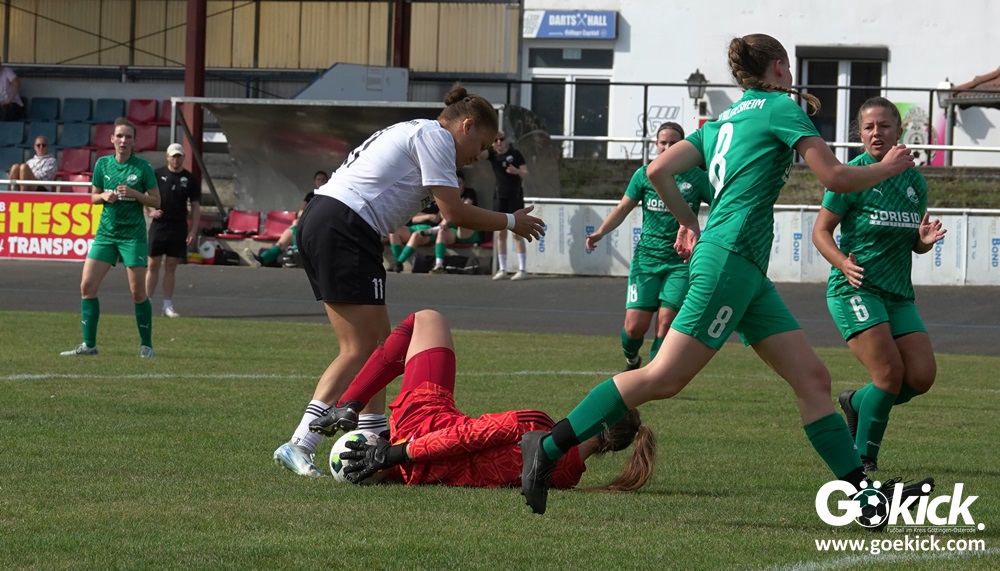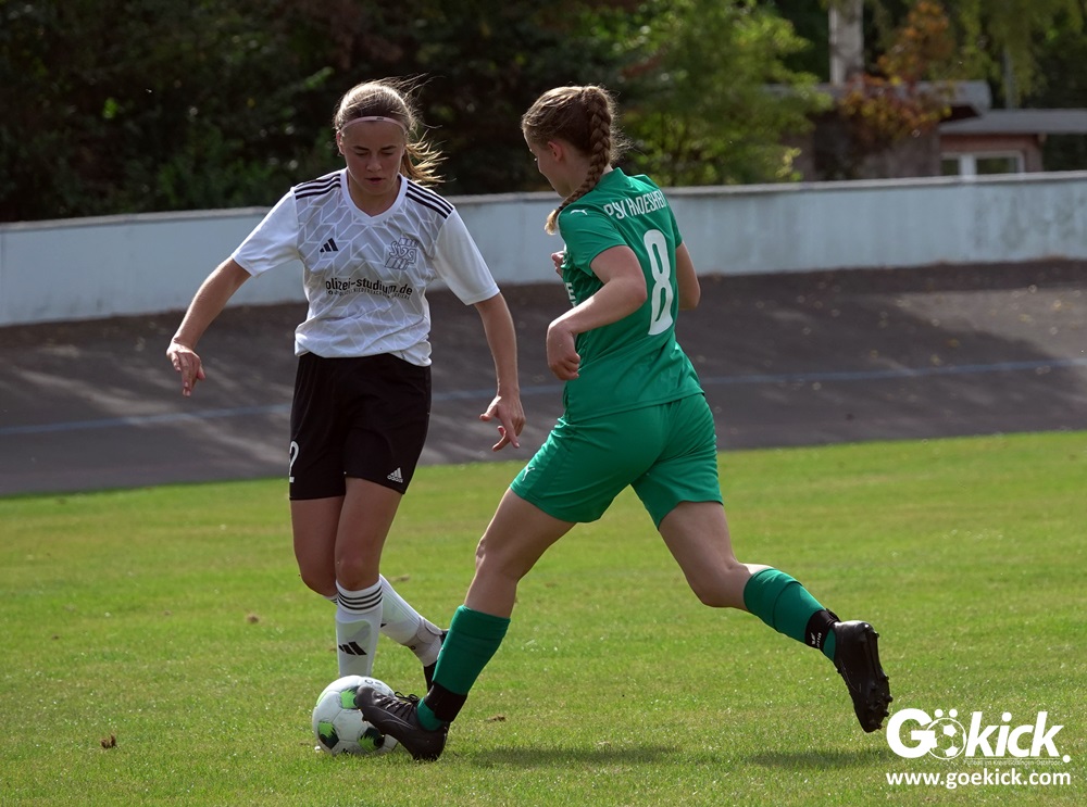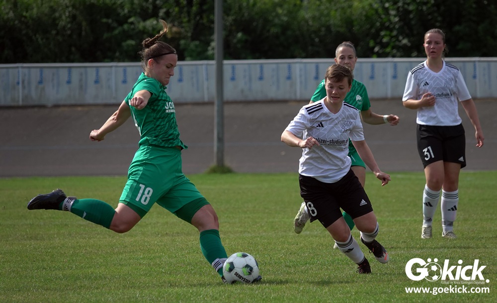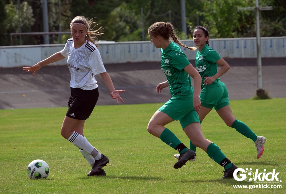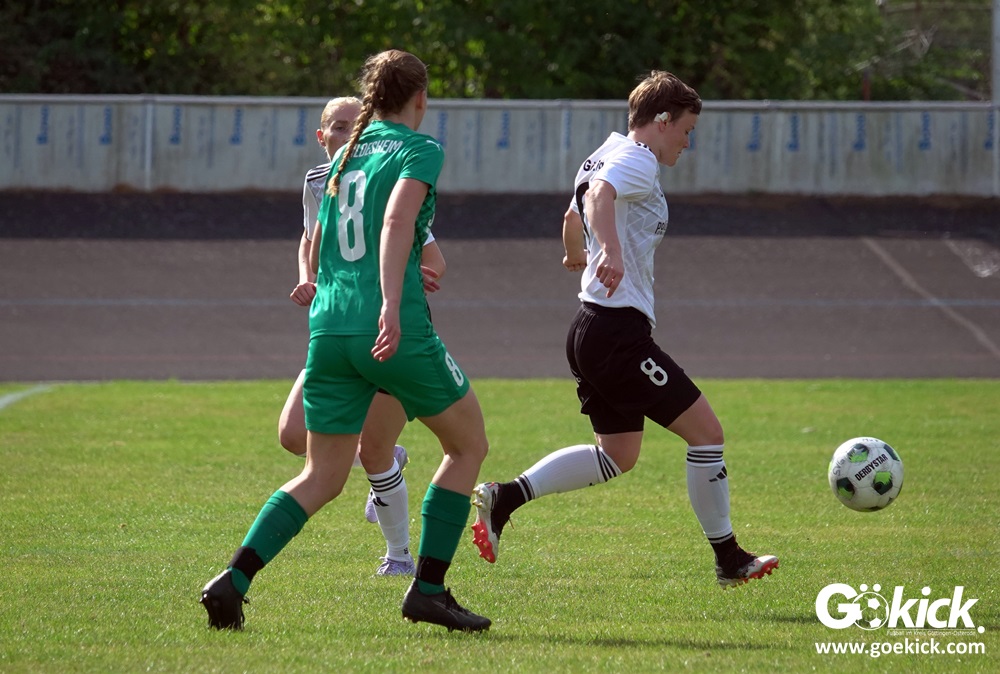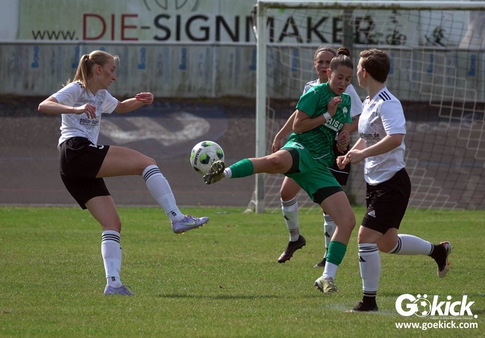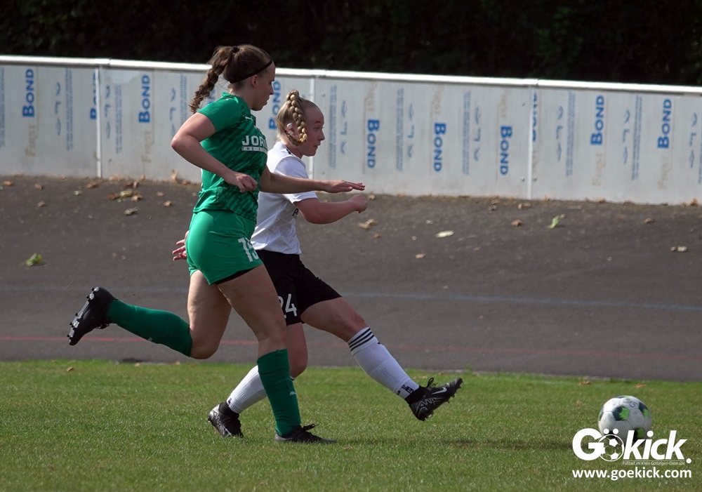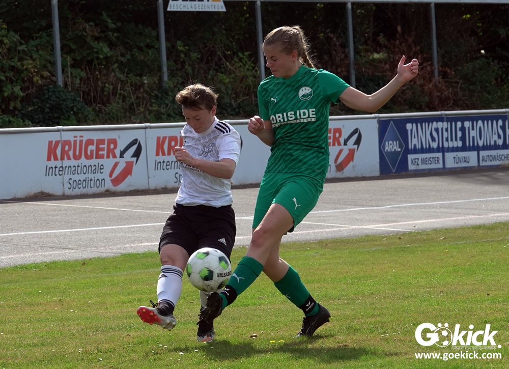 Die Gastgeberinnen bestimmten von Beginn an das Geschehen. Nellie Enabulele hatte in der 21. Minute die große Chance zur Führung, scheiterte aber frei vor Gästetorhüterin Jolien Auracher. Kurz vor der Pause prüfte Emma Hübner die Hildesheimerin mit einem Flachschuss, erneut blieb Auracher Siegerin. Trotz klarer Spielanteile blieb es beim 0:0.