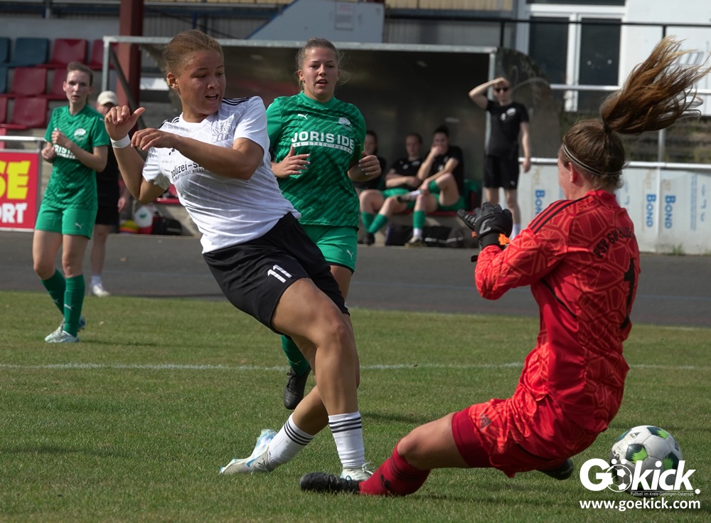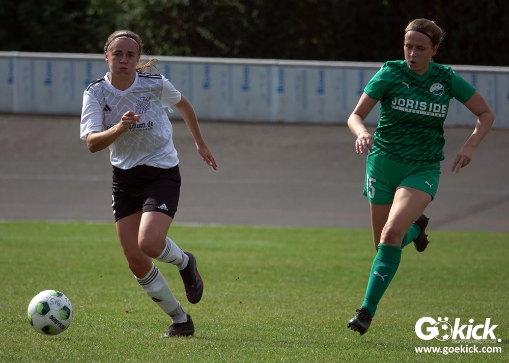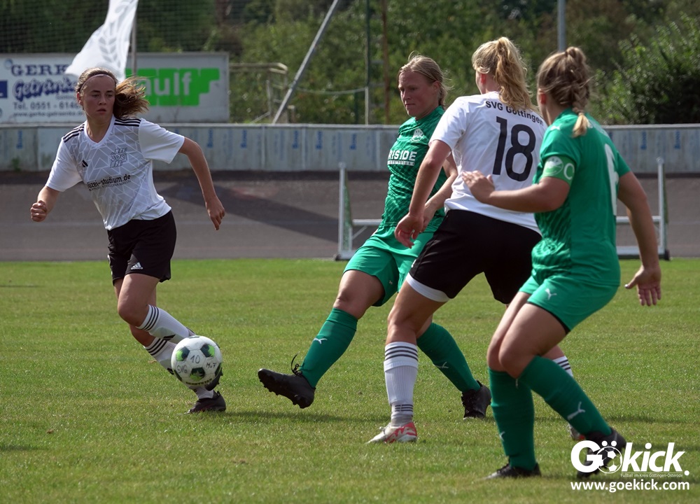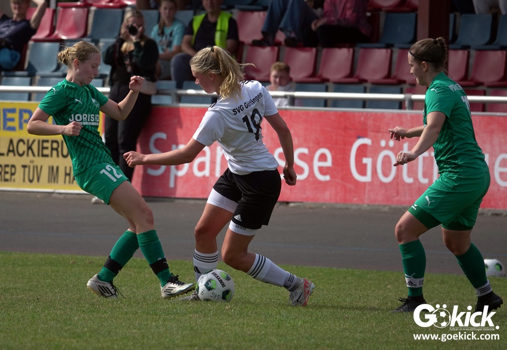 Nach einer Stunde fiel dann endlich der erlösende Treffer. Emma Hübner schloss in der 64. Minute überlegt ab und brachte die SVG in Führung. Nur sechs Minuten später legte Elina Wöckener nach, die nach 53 Minuten eingewechselt worden war. Mit ihrem bereits vierten Saisontor stellte sie auf 2:0 (70.).