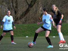 Die B-Mädchen der der SVG Göttingen bereiten sich intensiv auf die Rückrunde in der Kreisliga vor, wo sie punktgleich mit dem Spitzenreiter Eintracht Northeim auf Platz zwei überwinterten. In einem Test auf die mit dem Spitzenspiel am 20. April startende Liga empfingen die Mädels am vergangenen Samstag auf dem Kunstrasenplatz des KRÜGERPARKs am Sandweg die B-Juniorinnen der JSG Ahnatal, nordwestlich von Kassel gelegen. Nach einem abwechslungsreichen Spiel siegten die Gastgeberinnen am Ende verdient mit 8:4 (3:1).