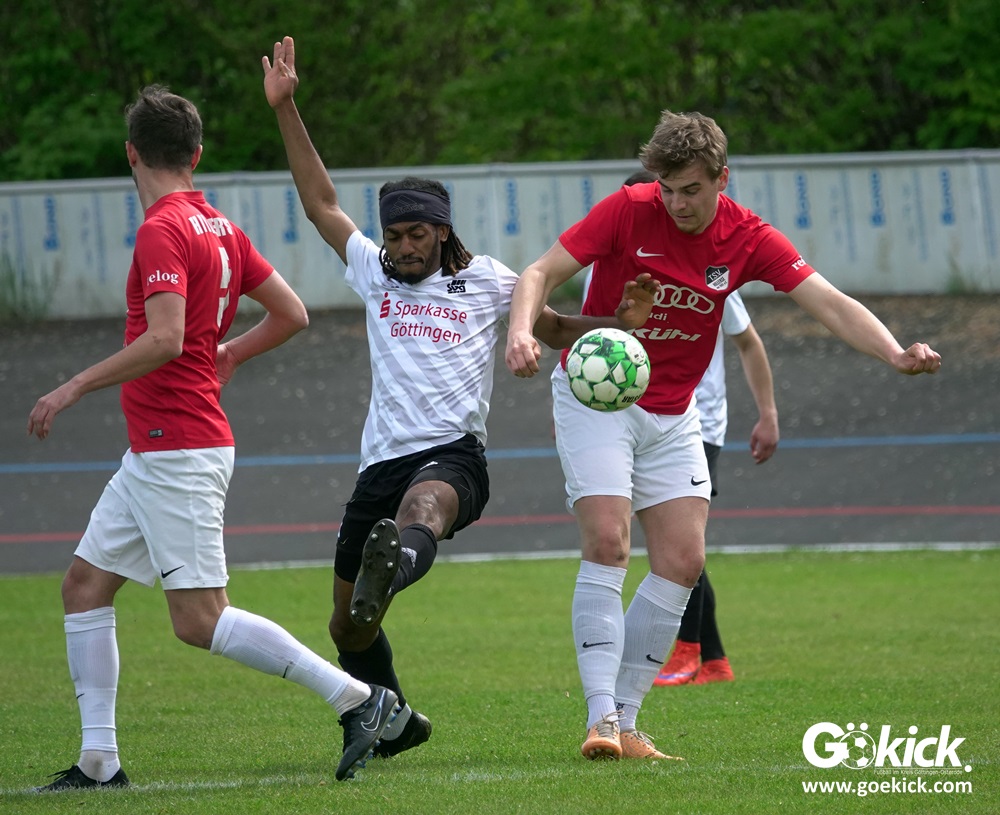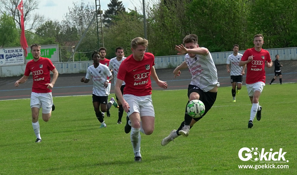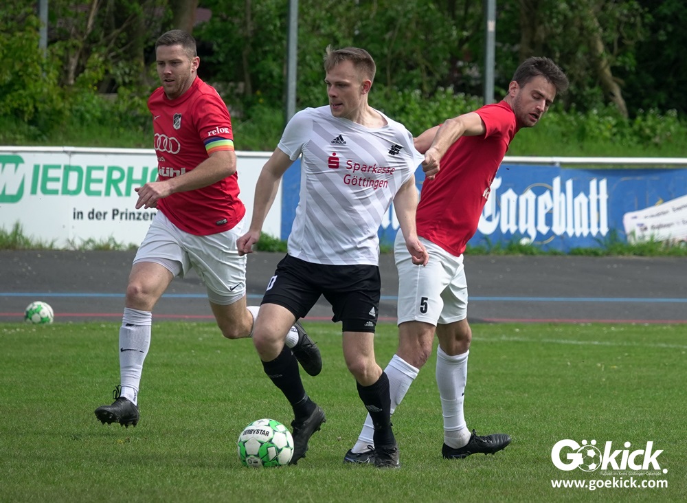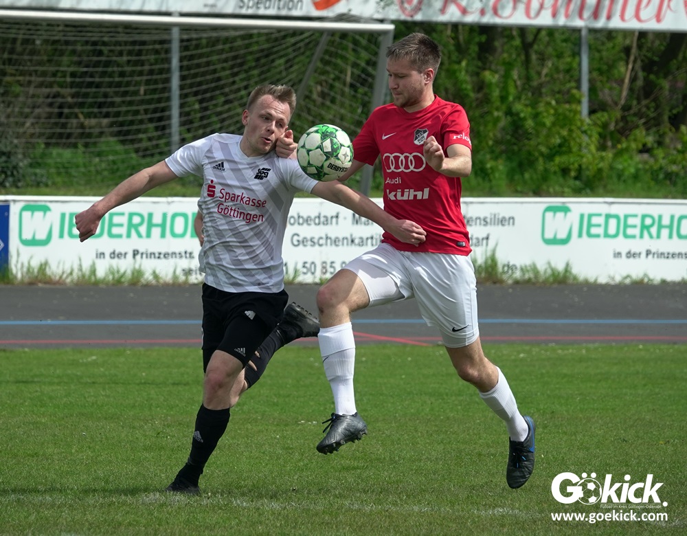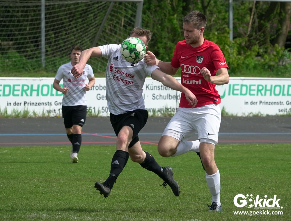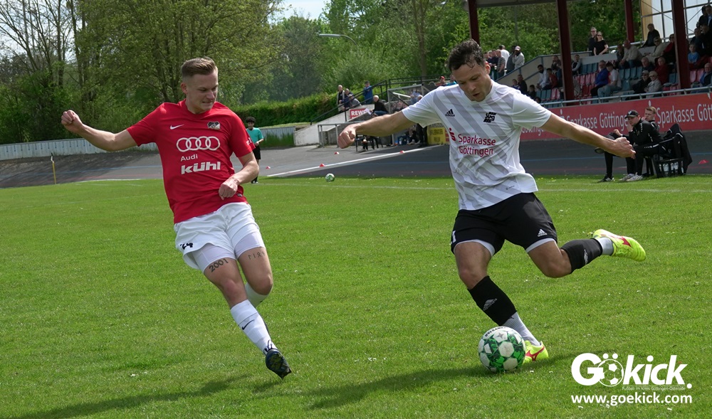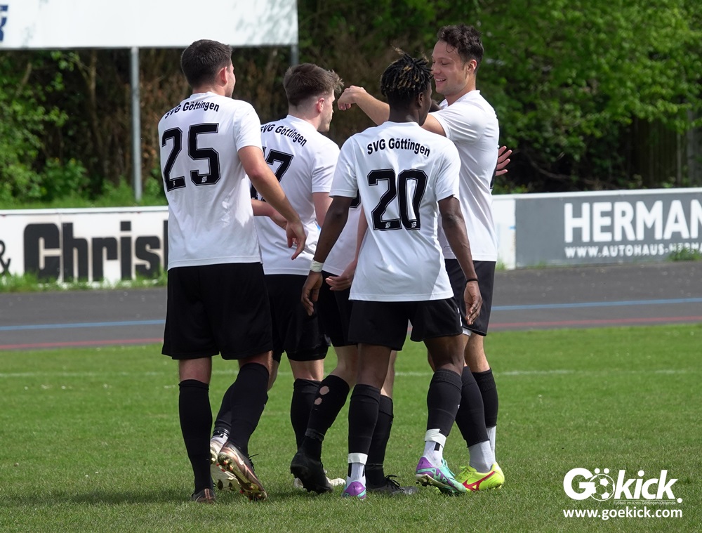 Die Göttinger setzten den Gegner mit geschickt hinter die hoch stehende Abwehr gespielten Pässen immer wieder unter Druck. Ein solcher Angriff führte nach 16 Minuten zum 1:0 durch Nicolas Krenzek, der sich durchsetzungsstark in Szene setzte und dem Gäste-Schlussmann keine Chance ließ. Auch das 2:0 durch Steen Zimmermann in der Nachspielzeit der ersten Halbzeit war nach diesem Muster gestrickt. Mit der verdienten Führung gegen tapfer kämpfende, doch limitierte Gäste ging es zum Pausentee.