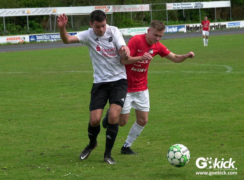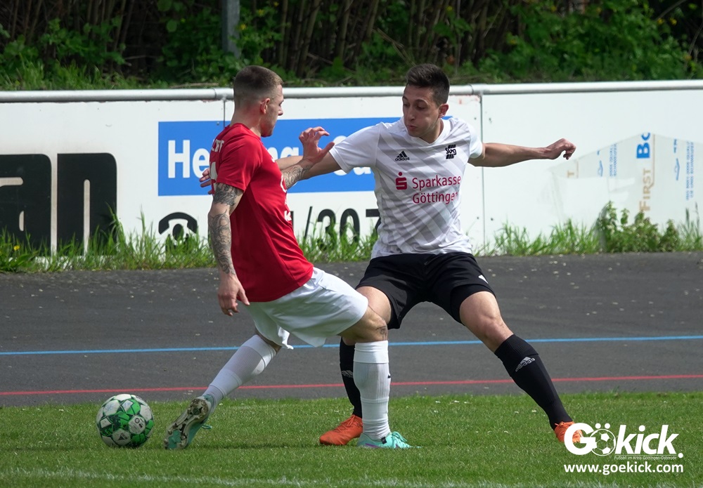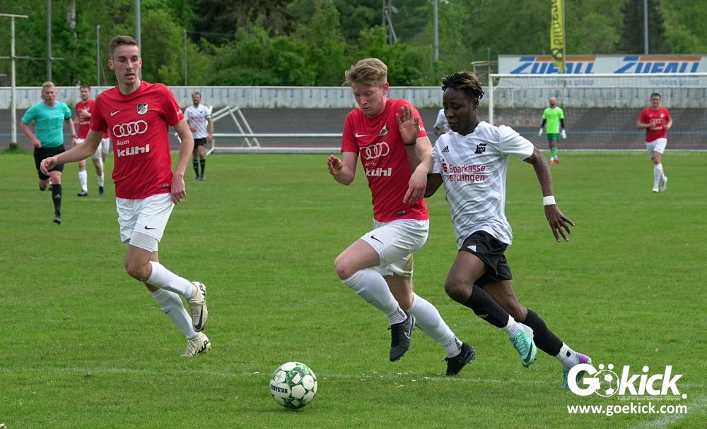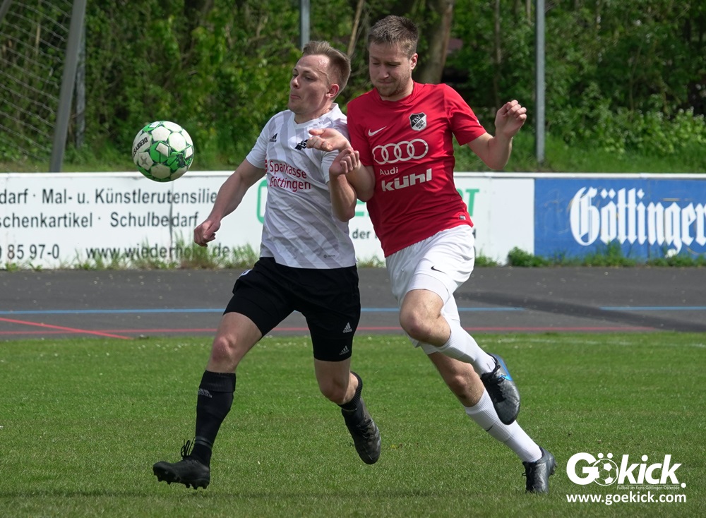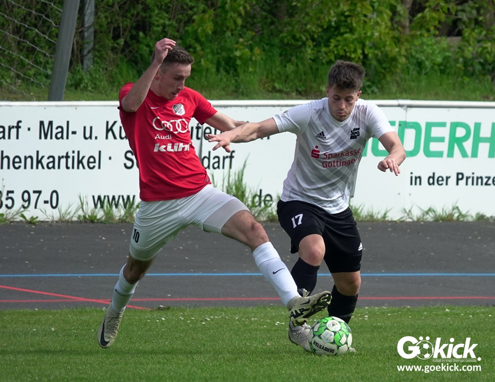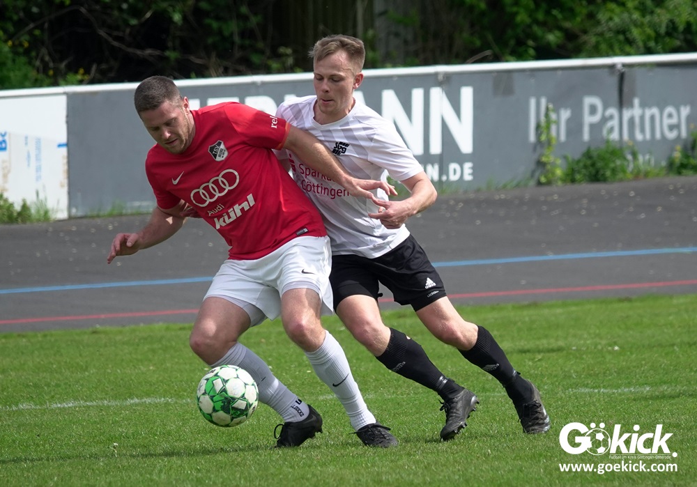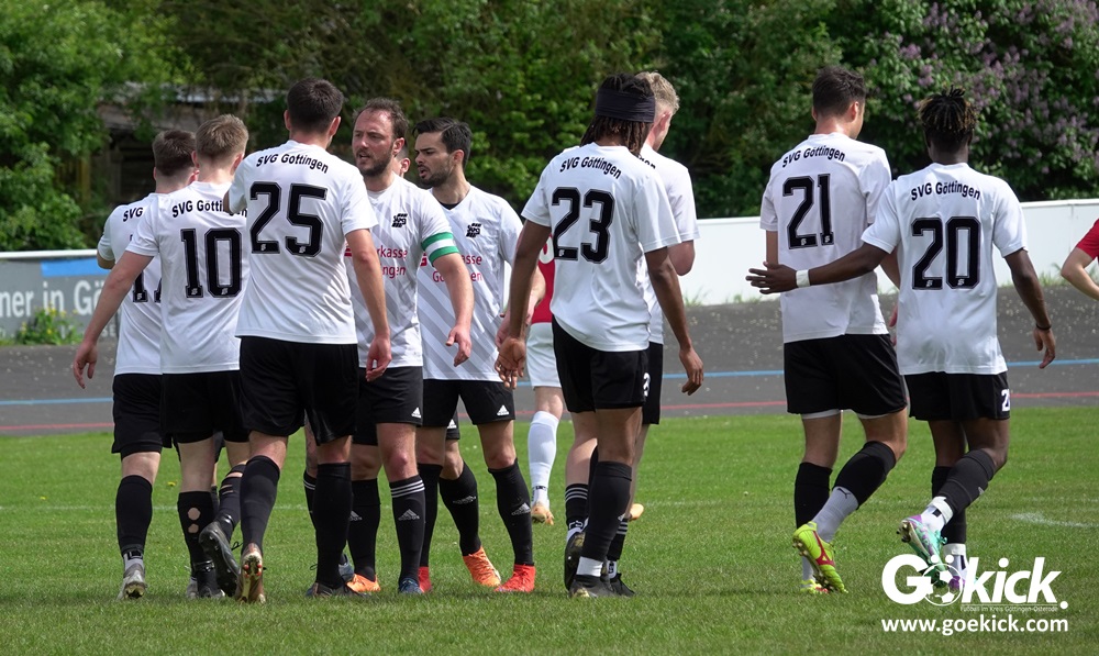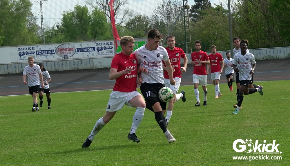 Die Göttinger setzten den Gegner mit geschickt hinter die hoch stehende Abwehr gespielten Pässen immer wieder unter Druck. Ein solcher Angriff führte nach 16 Minuten zum 1:0 durch Nicolas Krenzek, der sich durchsetzungsstark in Szene setzte und dem Gäste-Schlussmann keine Chance ließ. Auch das 2:0 durch Steen Zimmermann in der Nachspielzeit der ersten Halbzeit war nach diesem Muster gestrickt. Mit der verdienten Führung gegen tapfer kämpfende, doch limitierte Gäste ging es zum Pausentee.