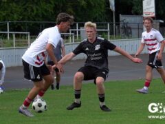 „Ich fand, dass wir es im ersten Abschnitt mit dem Anlaufverhalten schon ganz gut umgesetzt haben. In der zweiten Halbzeit dann weniger. Wir waren dann nicht mehr zielstrebig genug, unsere Laufwege zu beenden. Offensiv merkt man, dass wir da noch fast nichts gemacht haben. Zwischenzeitlich hatten wir weniger Mut, dann schaffst du keine Entlastung. Man hat natürlich gesehen, dass Christoph Bartels noch in keiner Übungseinheit Stürmer gespielt hat. Dafür ist eigentlich Steffen Doll da. Die Torgefahr hat völlig gefehlt. Jetzt gilt es, Lösungen zu schaffen, wenn Doll dann mal nicht da ist. Bis zum 9. August bekommen wir das aber hin. Die Neuen habe das schon ganz gut gemacht. Besonders hat mir Rebin Osnami vom JFV 37 gefallen, der mutig am Ball war.“, so der SVG-Trainer Nils Reutter nach diesem ersten Test in der neuen Saison.
